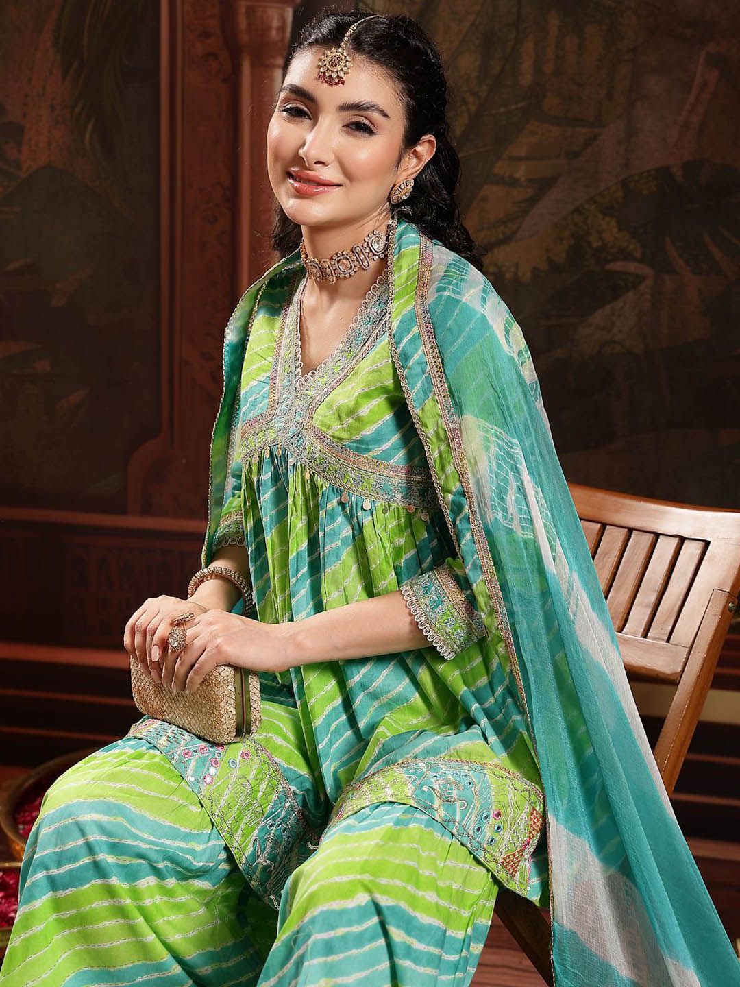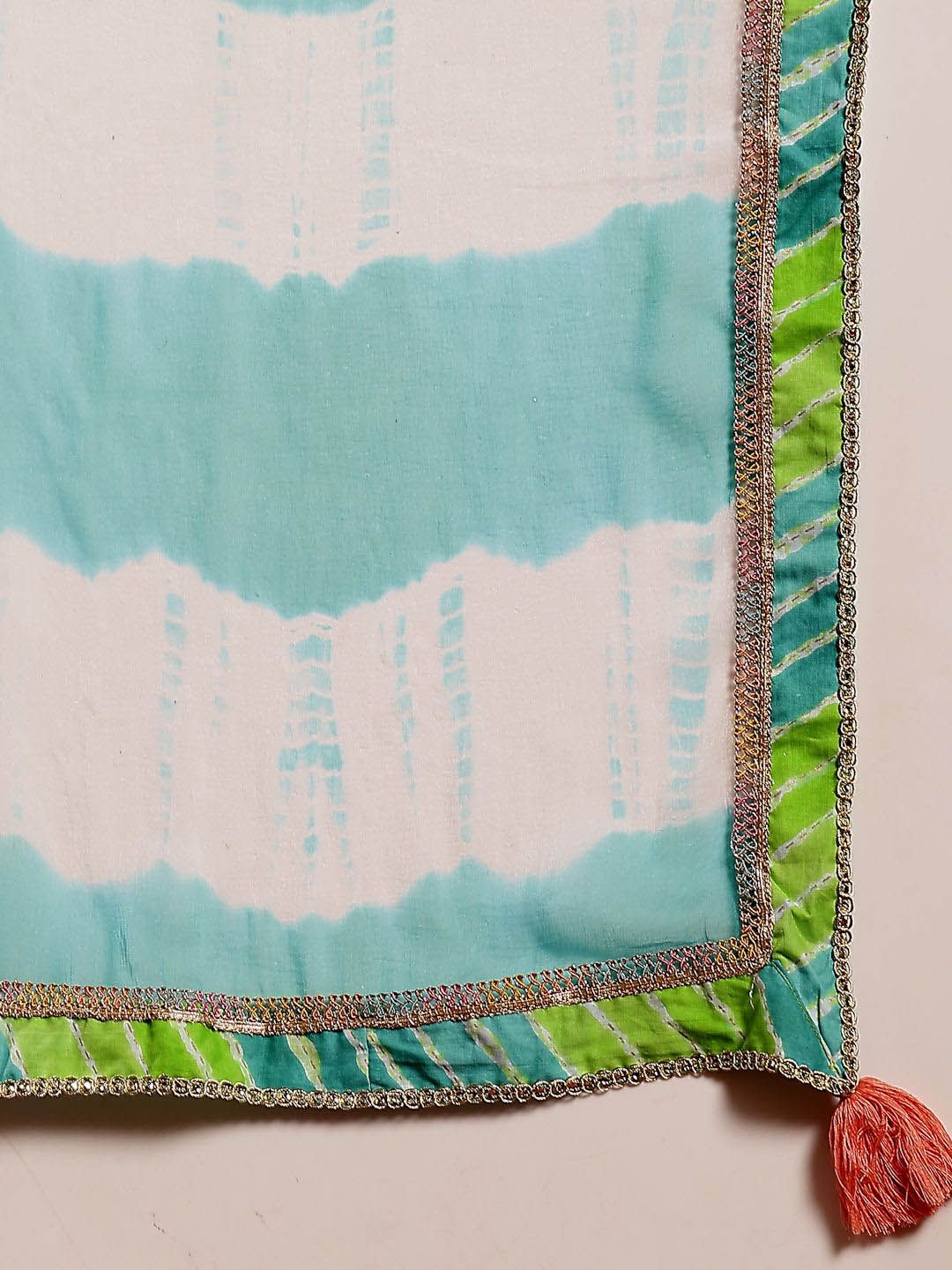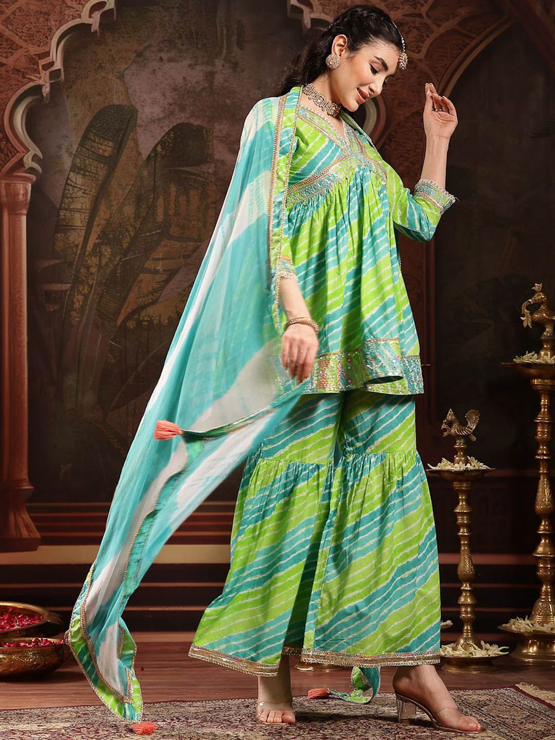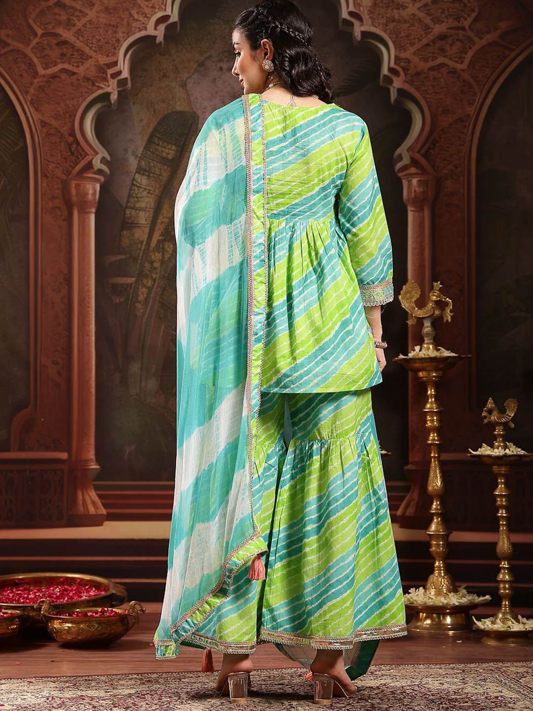 Stylum Women Leheriya Self Design Cotton Kurta with Sharara & Dupatta