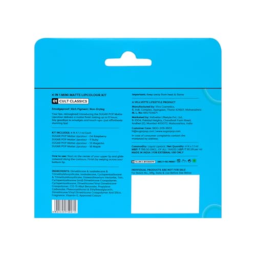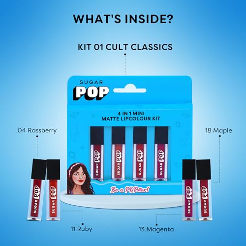 SUGAR POP 4 in 1 Mini Matte Lipcolour Kit | Vitamin E | Smudgeproof | Long-lasting Wear | 4 N x 1.1 ml - 01 Cult Classics