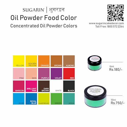 40 bright shades to choose from. Concentrated Oil Powder Colors for Chocolates, Compounds, Cocoa Butter, Ghee, Edible Oils, DIY Soaps, Lipsticks, Cosmetics and all kind of oil based products. Just add to molten chocolate/compound/cocoabutter or oil and mix thoroughly well. Ideal for Home-bakers and Professionals. Other uses: other oil based products like cosmetics, soaps, edible oils etc.
