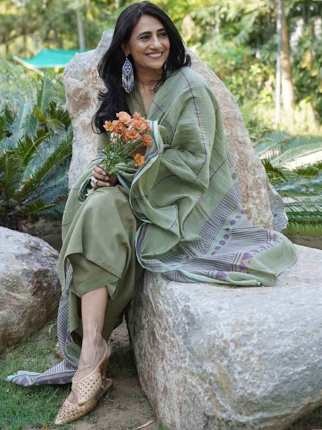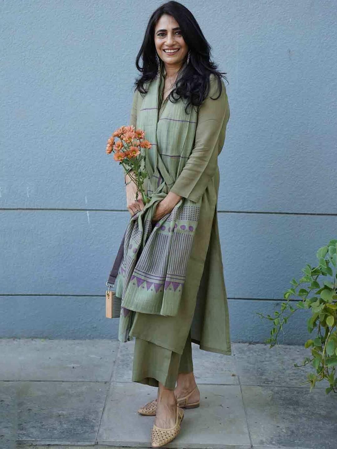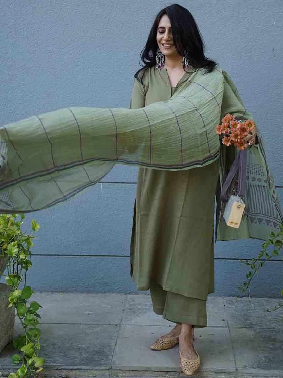 SUPPAR SLEAVE Green Viscose Rayon Kurta Sets