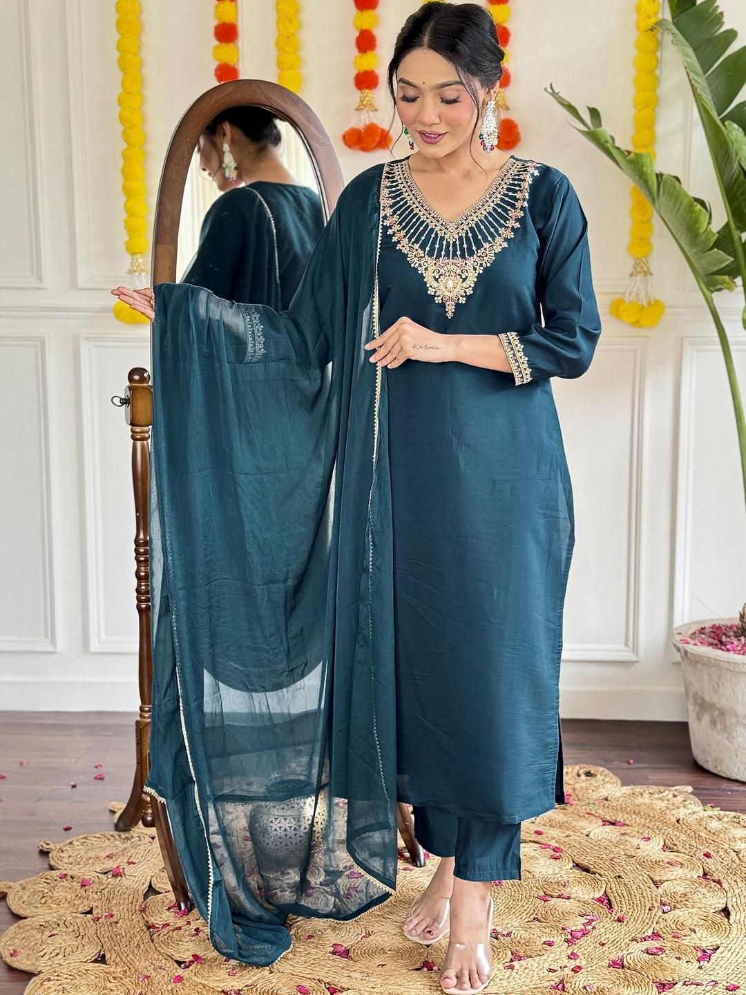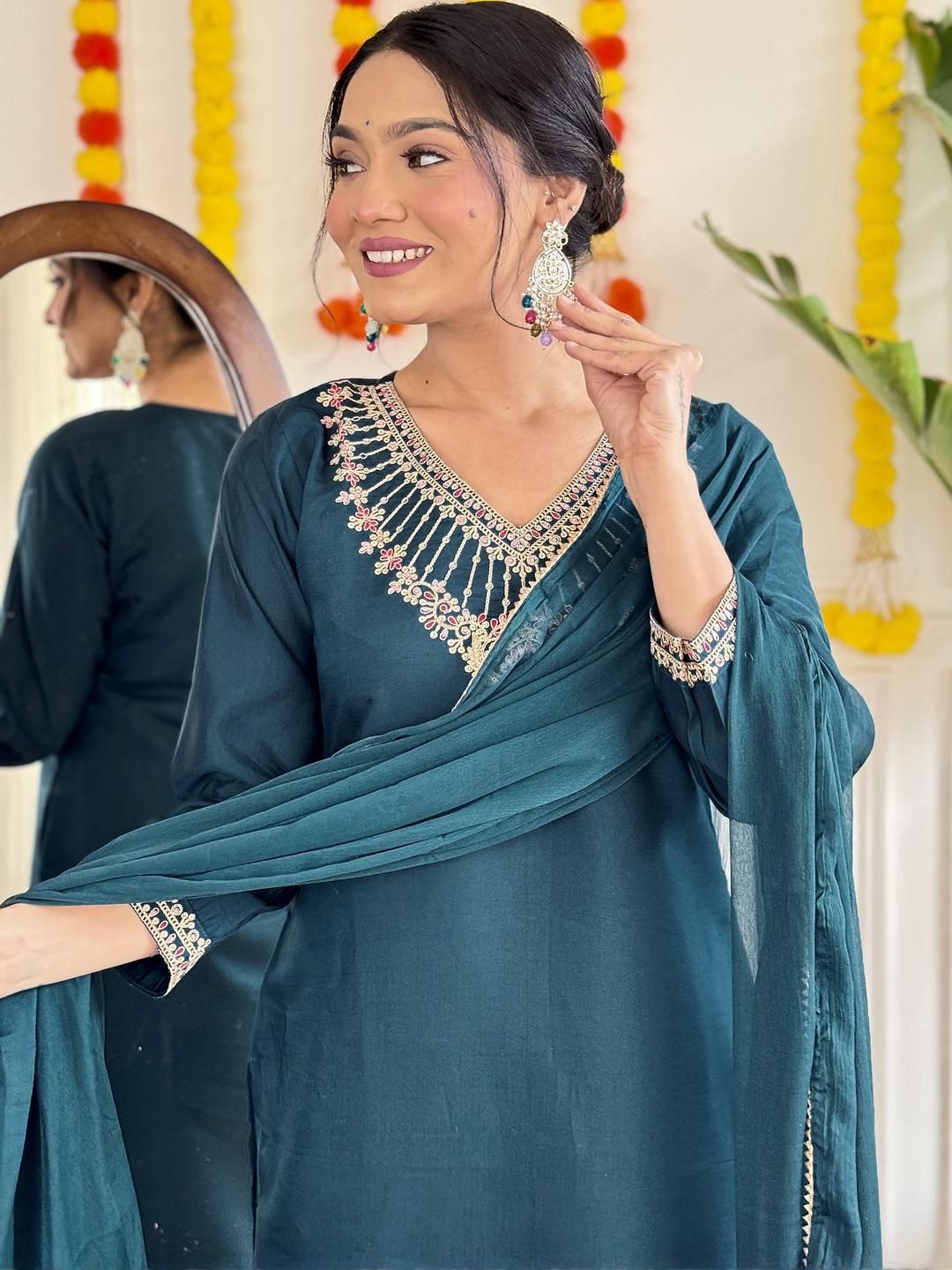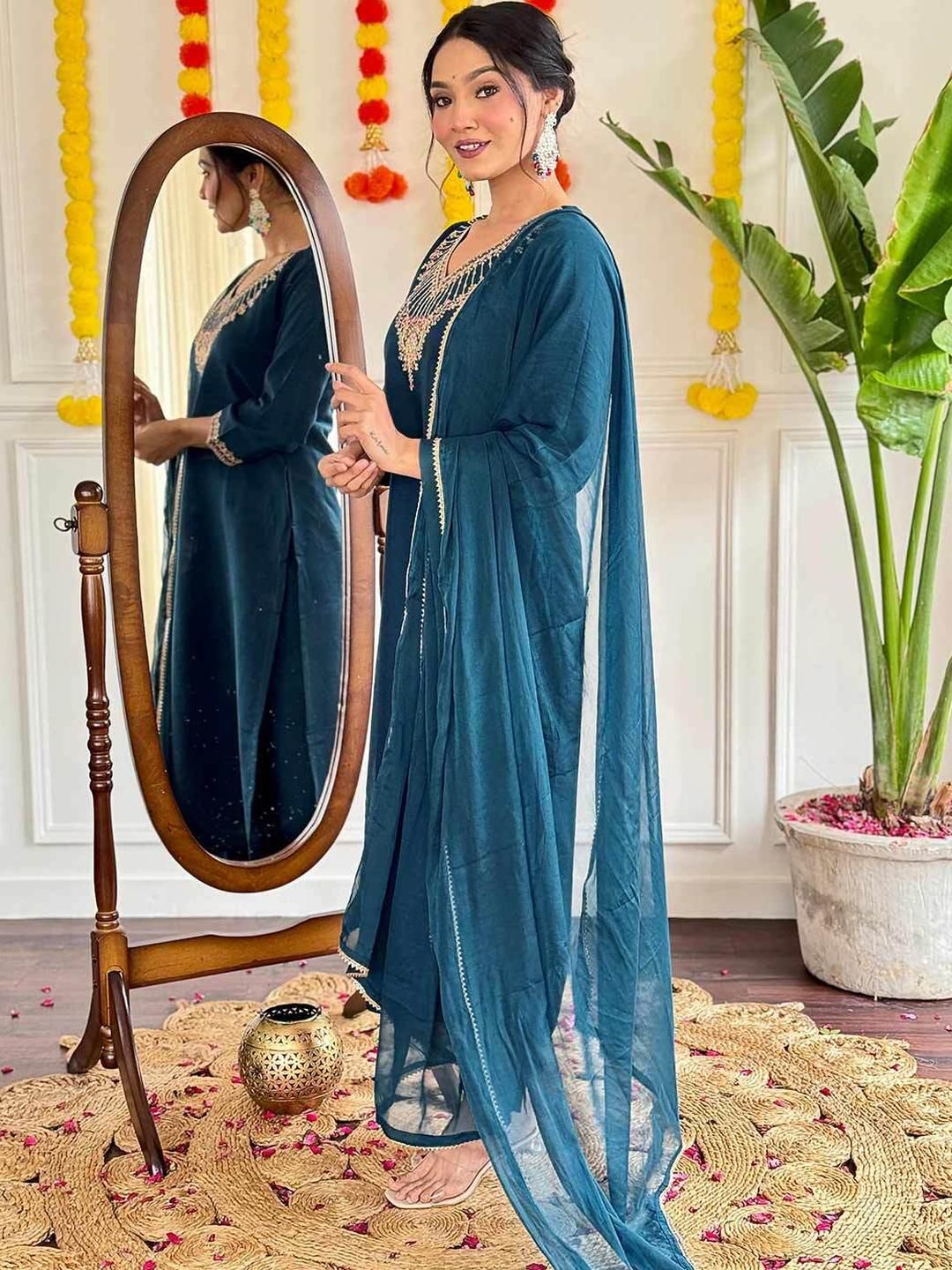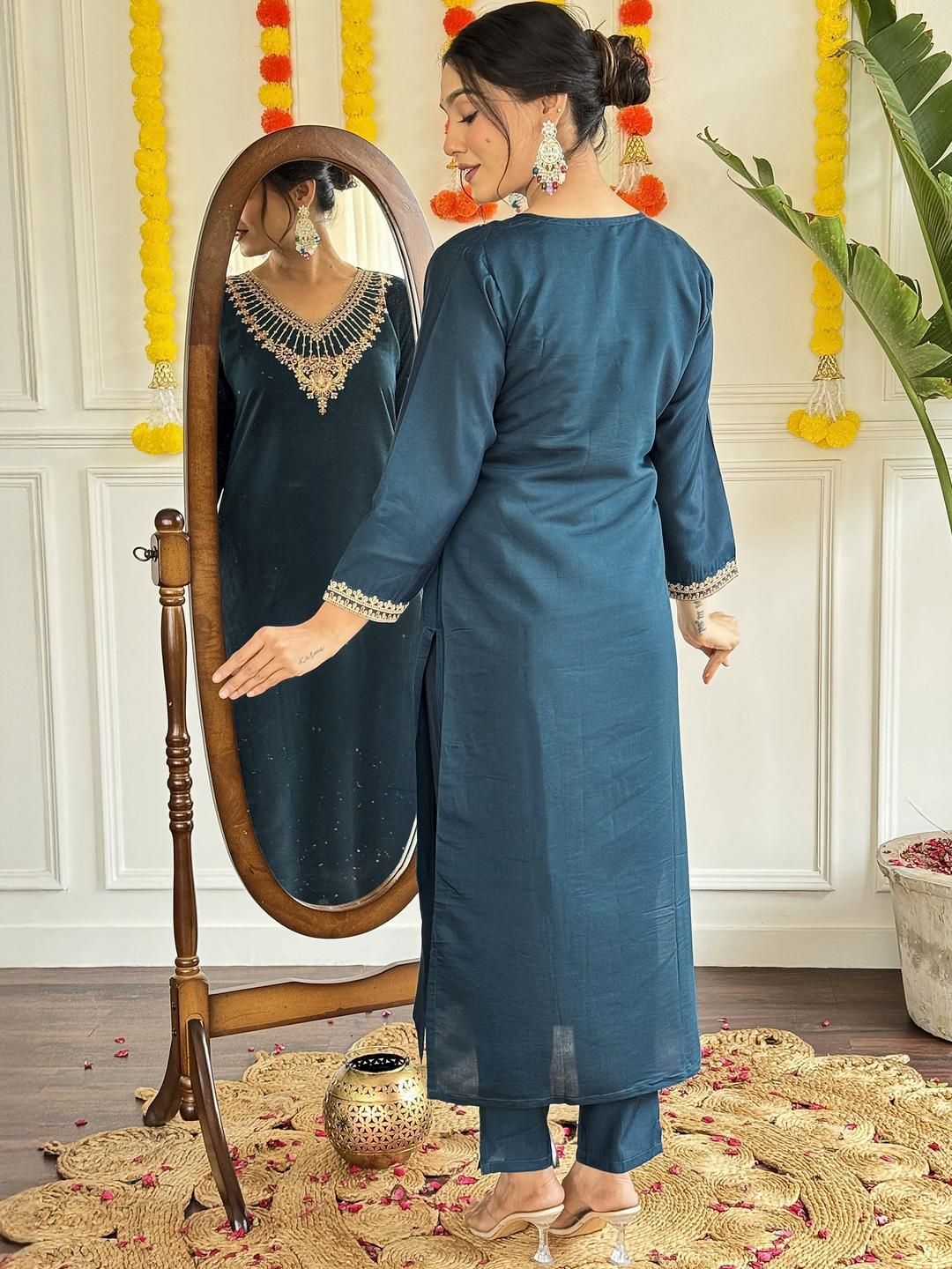SUPPAR SLEAVE Teal Cotton Blend Kurta Sets