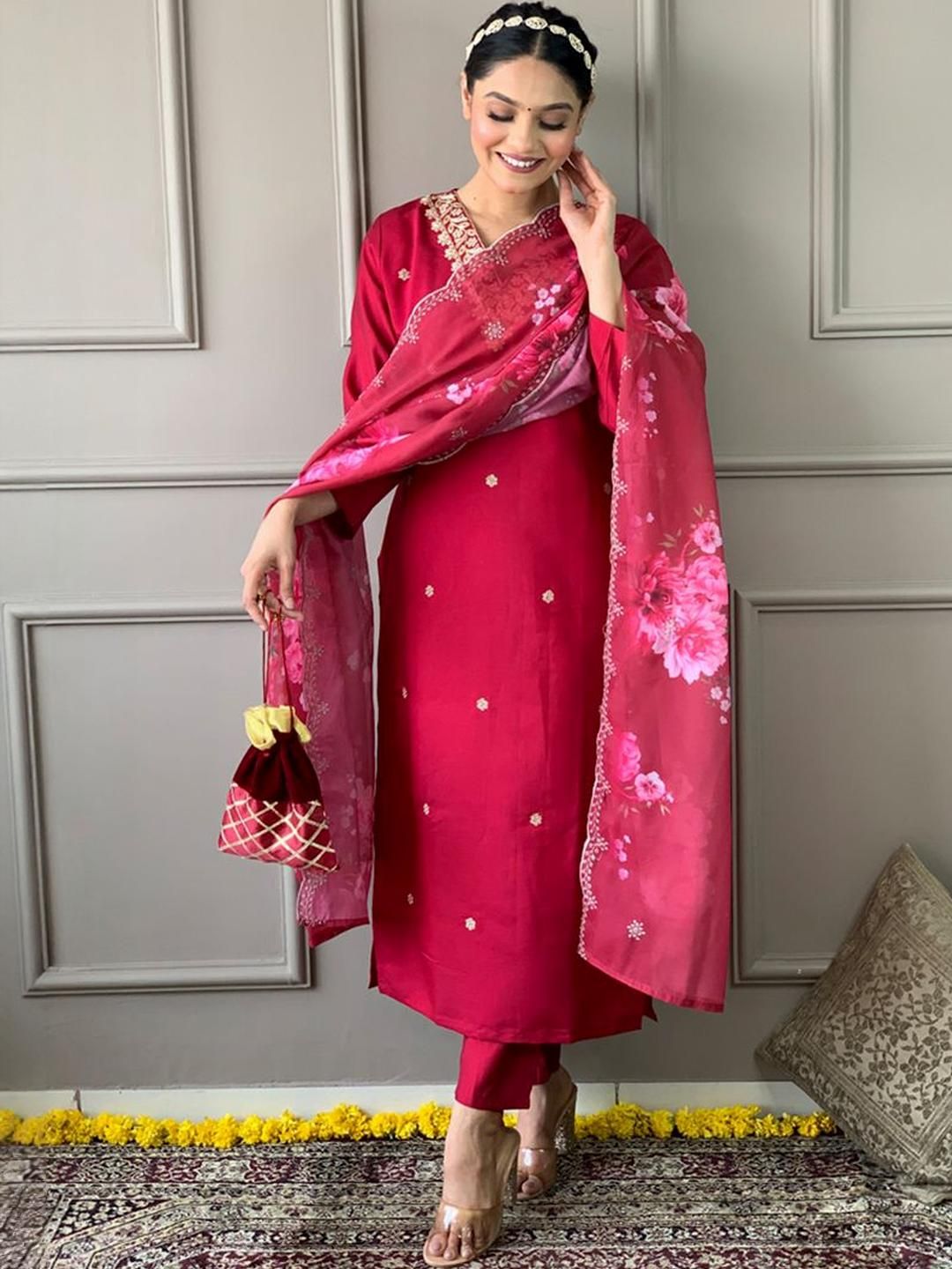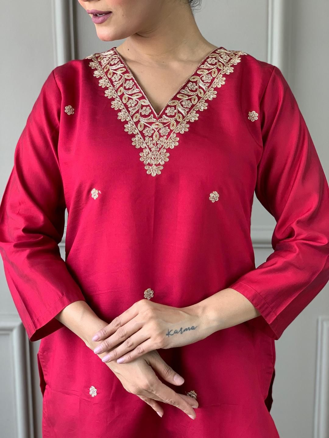 SUPPAR SLEAVE Women Chanderi Silk Kurta Sets
