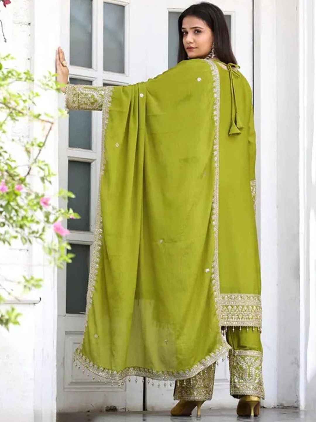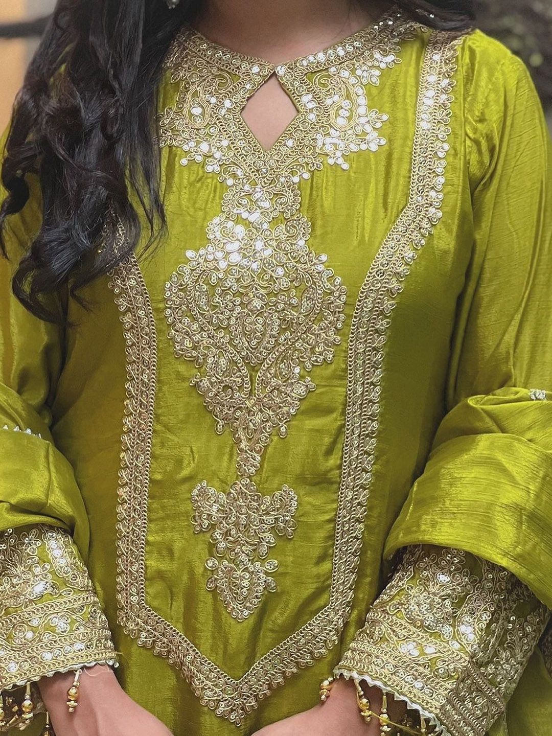 SUPPAR SLEAVE Women Ethnic Motifs Embroidered Chanderi Silk Kurta with Trousers & Dpatta