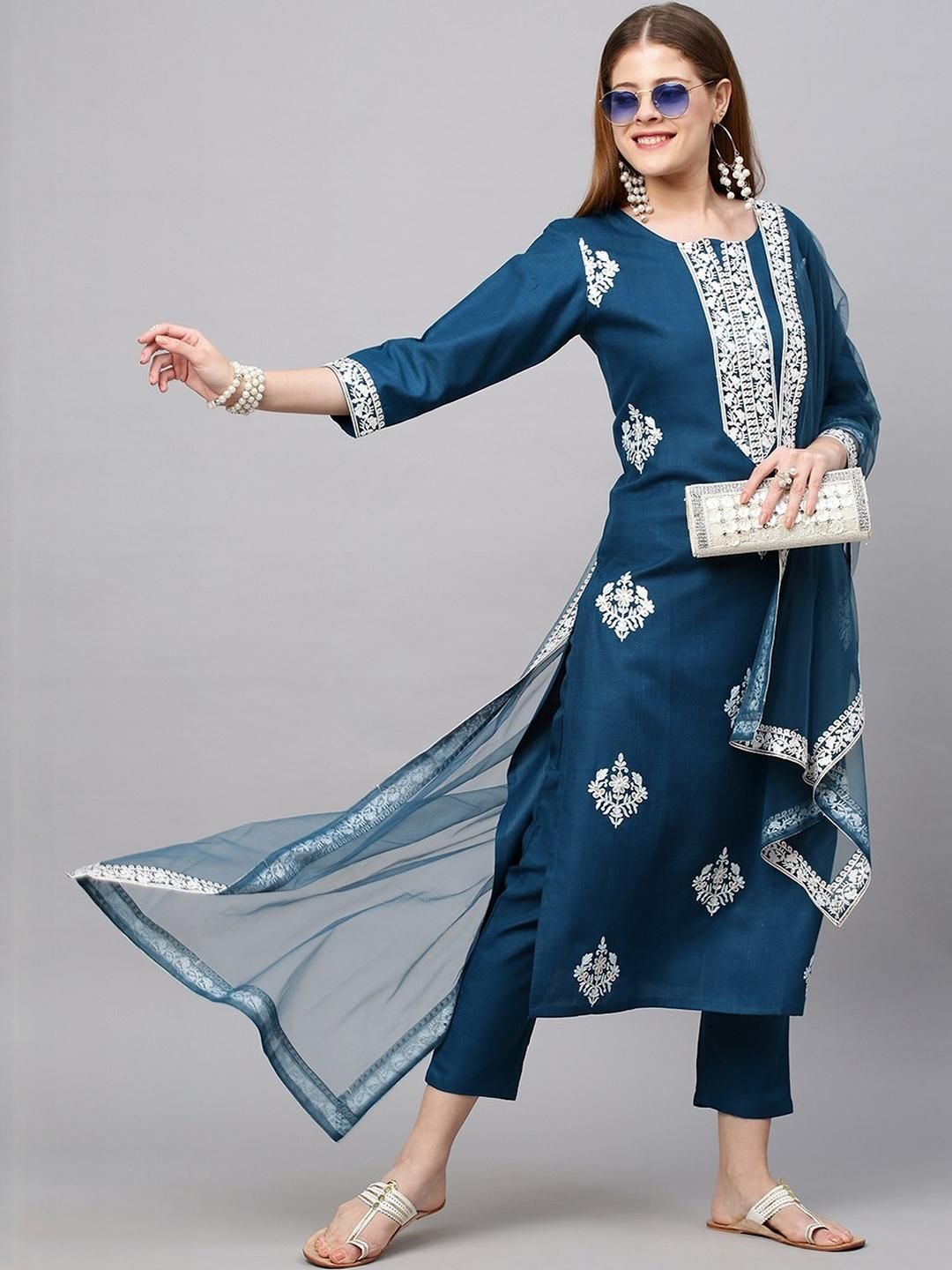 SUPPAR SLEAVE Women Silk Blend Kurta Sets