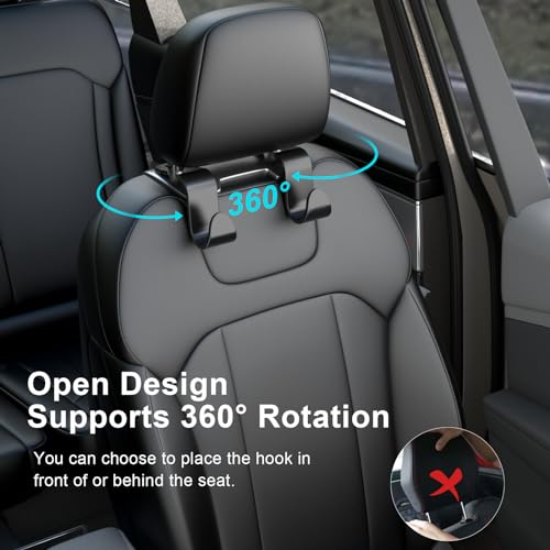 Robust and durable: Made of high-quality environmentally friendly PP material, it is strong and durable, flexible and not brittle, ensuring long-term use without deformation or damage. It can carry heavier items, and each hook can hold up to 20 kg. Easy storage and convenient travel: each bag contains 4 hooks. These hooks can help you organize clutter and easily store common items such as handbags, shopping bags, clothes, etc. You can also hang special items such as portable tool boxes to effectively use the space in the car, make the interior of the car tidy, improve driving comfort and make travel more convenient. Hidden design, multi-angle rotation: these hooks can rotate horizontally 360° for high flexibility. You can choose to turn the hook to the front of the seat or behind the seat to meet different needs. When you don't need it, you can hide the hook behind the seat so that it does not take up extra space. Widely Used:Size 6.5cm x 6.0cm x 3.2cm. Suitable for various cars, including cars, SUVs, trucks, etc. Before purchasing, please make sure the diameter of the seat headrest bar is between 1 cm and 1.3 cm. Easy installation: the hook adopts a semi-open design and can be installed in one second without tools. You just need to hang the hook on the seat headrest rod. There is no need to disassemble the headrest, which is easy to use.