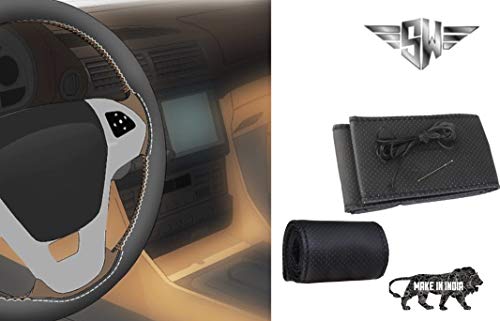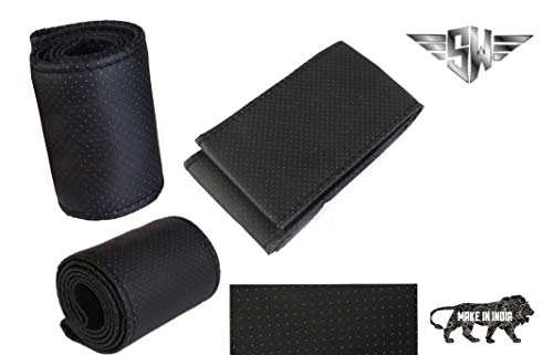 SW® Dotted Foam Soft Grip Car Steering Cover with Needle - Leather, Breathable, Anti Slip (Black) Compatible with Porsche Cayman