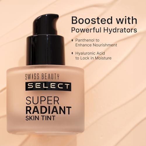 SWISS BEAUTY Select Super Radiant Hydrating Liquid Skin Tint | With Hyaluronic Acid | Provides Natural, Dewy Glow | Shade- Sand Glow, 30Gm
