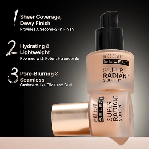 Sheer Coverage - The Swiss Beauty Select Super Radiant Skin Tint has a sheer coverage that you can layer and build to create a medium coverage. Natural, Dewy Glow - True to its name, the Super Radiant Skin Tint adds a healthy and natural luminosity to the skin without any greasy, cakey or heavy feeling. Silky, Satiny Texture - The smooth and air-light texture of the skin melts into your skin and makes blending an absolute breeze. Hydration Maximised - Enriched with powerful hydration, such as Panthenol and Hyaluronic Acid, the Super Radiant Skin Tint keeps your skin nourished and moisturised from within.