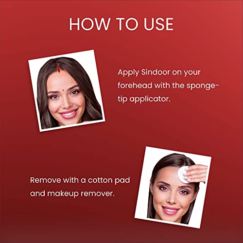 Apply Sindoor on your forehead with the sponge-tip applicator. Remove with a cotton pad and makeup remover. High-pigmentation and long-lasting effect. Available in two rich shades - red and maroon. Smudge-proof and crease-proof. Swiss Beauty brings you the time-honored Sindoor with a modern look by fusing a love of traditions with the force of innovation. Consider your hairstyle for deciding the amount of sindoor you want to apply.