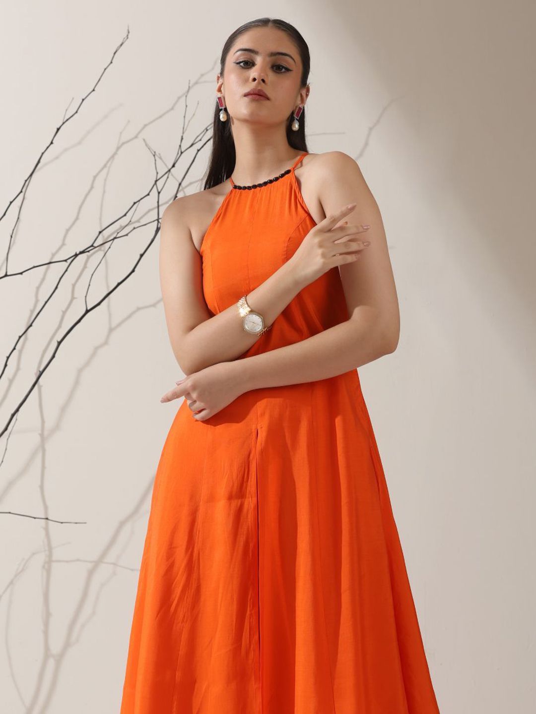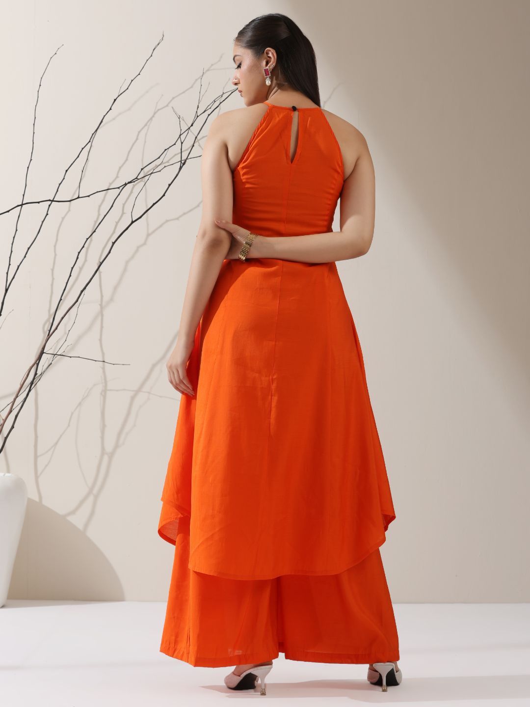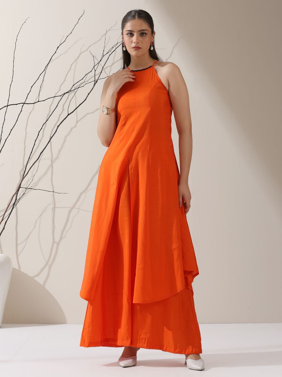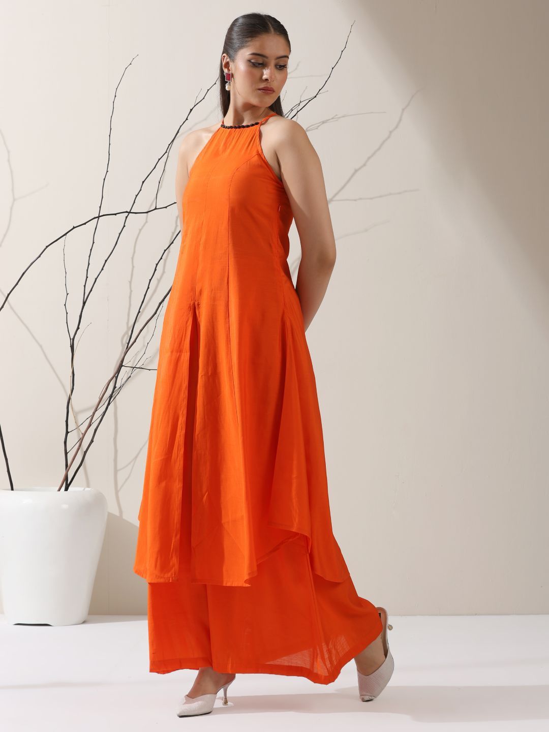Swtantra Halter Neck Beads And Stones A-Line Kurta With Palazzo
