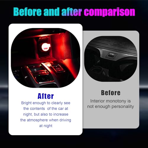 ?Decorate Car Interior?: USB car ambient light is able to present brilliant light effects and create a fashionable and romantic atmosphere inside your car. There are many different colors like blue, red, and white for you to choose, so as to decorate your car. ?Plug & Play?: Car LED ambient light adopts a plug-in USB interface, which is convenient and quick for you to install and use without battery needed. You just need to plug this LED light into the USB socket in your car, which is plug and play within several seconds. It will stay on as long as it is plugged in. ?Premium & Durable?: Automotive interior atmosphere lamp is made of high-quality LED light and durable PC shell materials. The LED light is low in power consumption and good in energy conservation. PC material has excellent heat resistance, which won't be hot and damaged after a long time of use. ?Universal for Vehicle?: Portable mini LED night light is universal in vehicles' applications. It can be broadly compatible with most vehicles' USB sockets, which contain cars, SUVs, trucks, vans and so on, in order to decorate or illuminate vehicle interior. ?Multiple Use?: Except applying in vehicle interior, this USB ambient light can also be applied in many other places. For instance, it can be plugged on your computer, as an ambient lamp to protect your eyes. Or you can plug it on the USB socket on your home's wall to illuminate the room at night, as a night lamp.