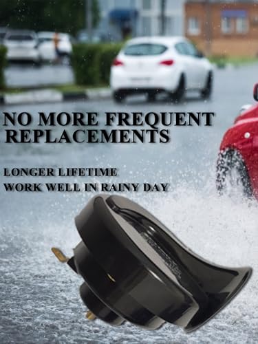 SYOAUTO Car Horn Truck Horn 12V Horn Waterproof High Low Tone Universal Fit Super Loud Electric Snail Horn 12V Horn Kit Replacement Car Horns