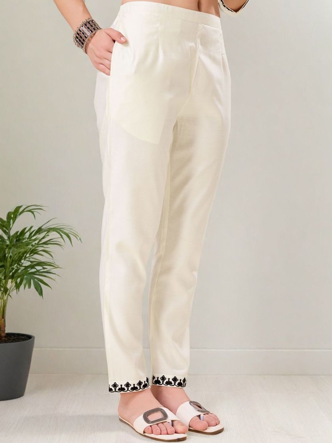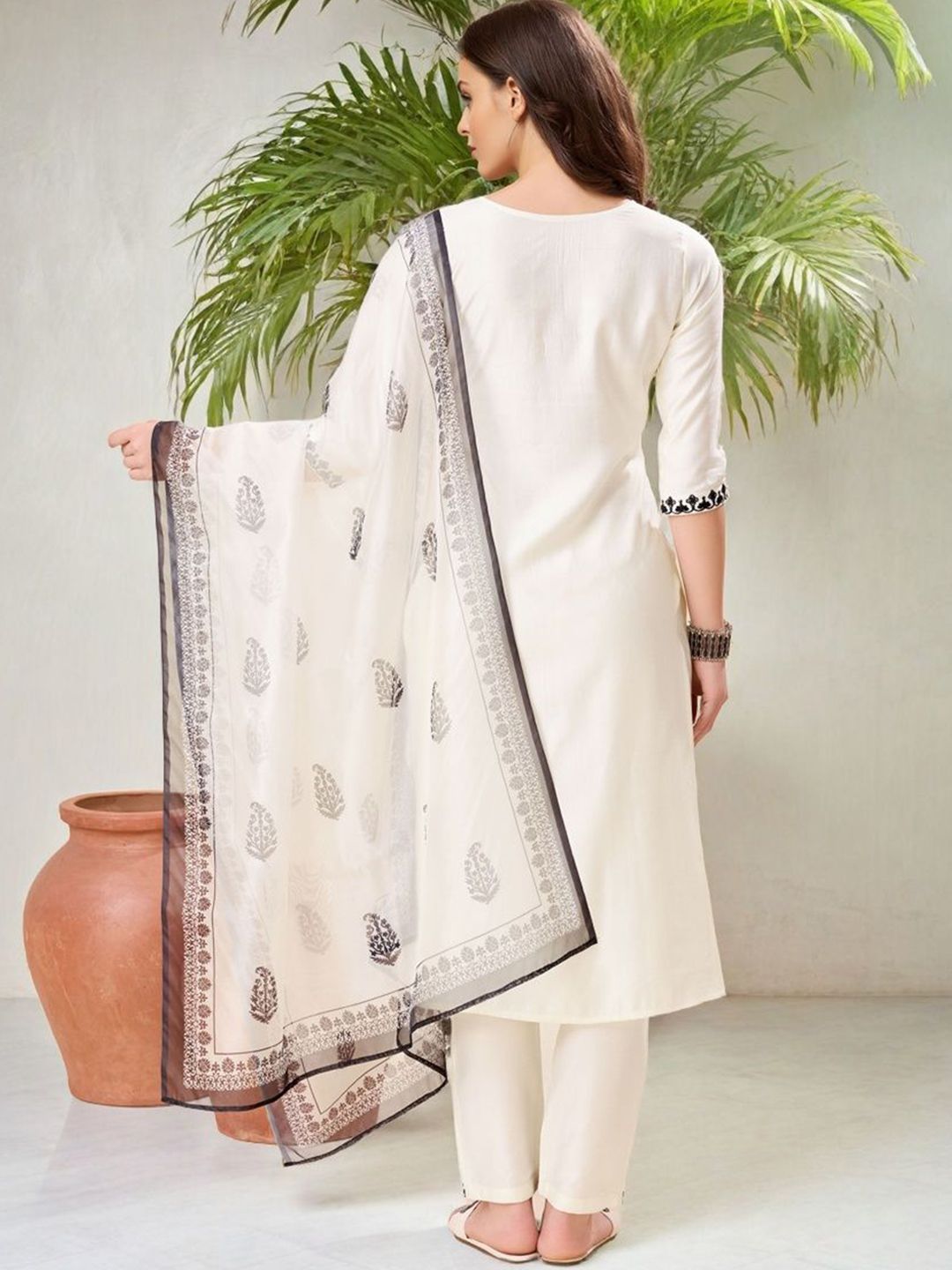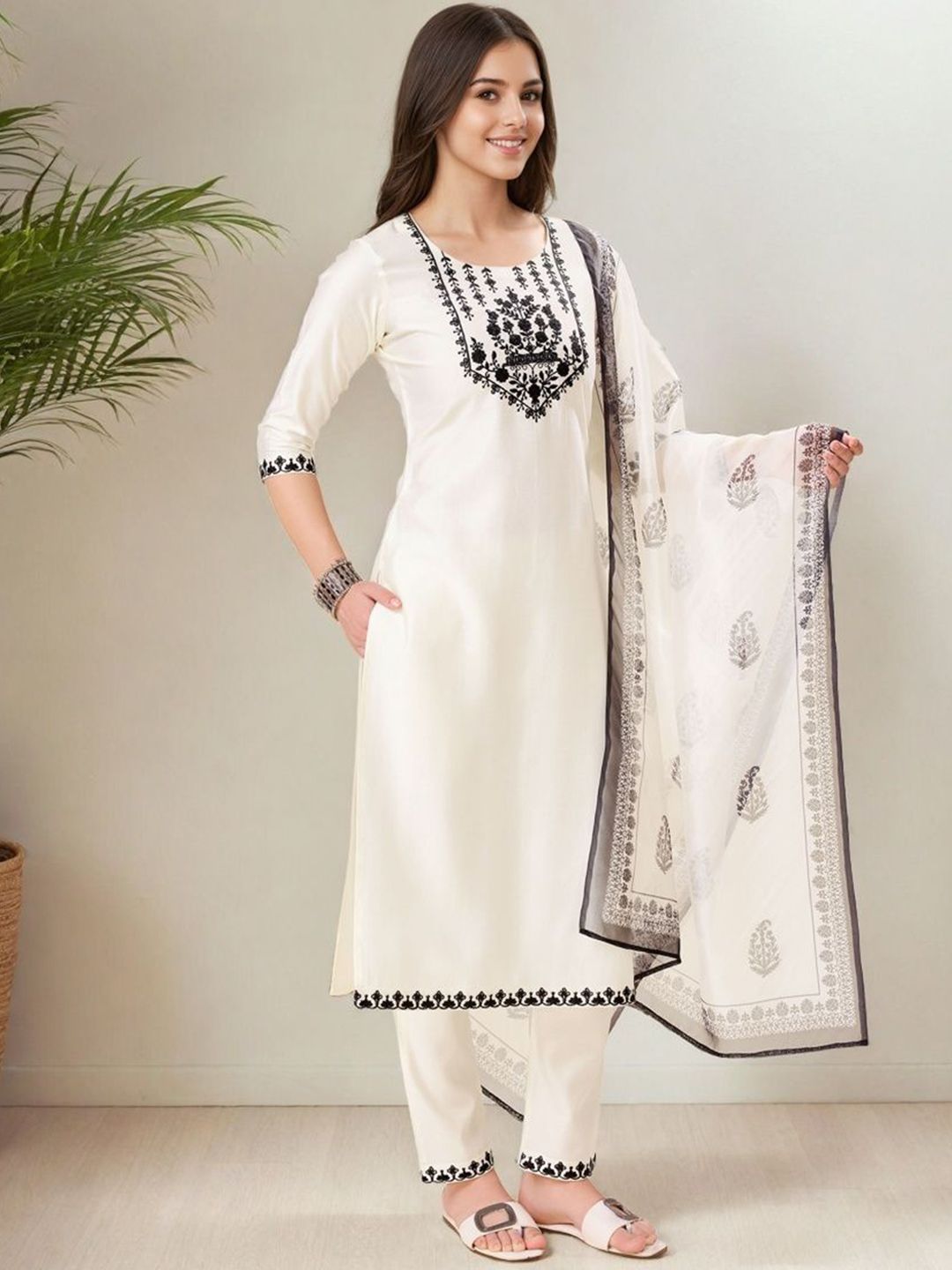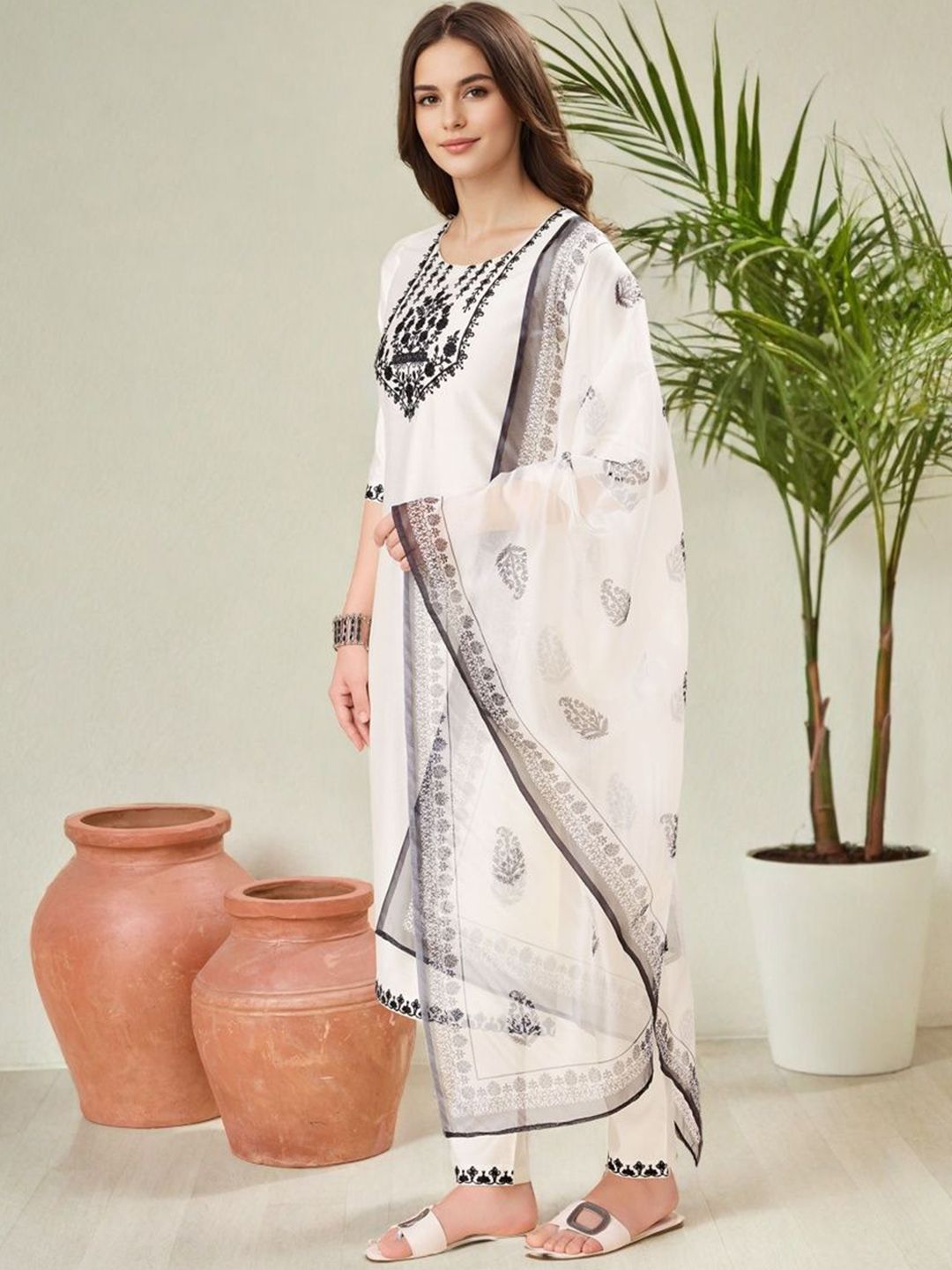 SZN Floral Embroidered Round Neck Thread Work Straight Kurta With Trousers & Dupatta