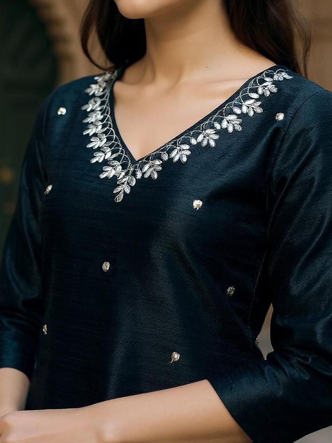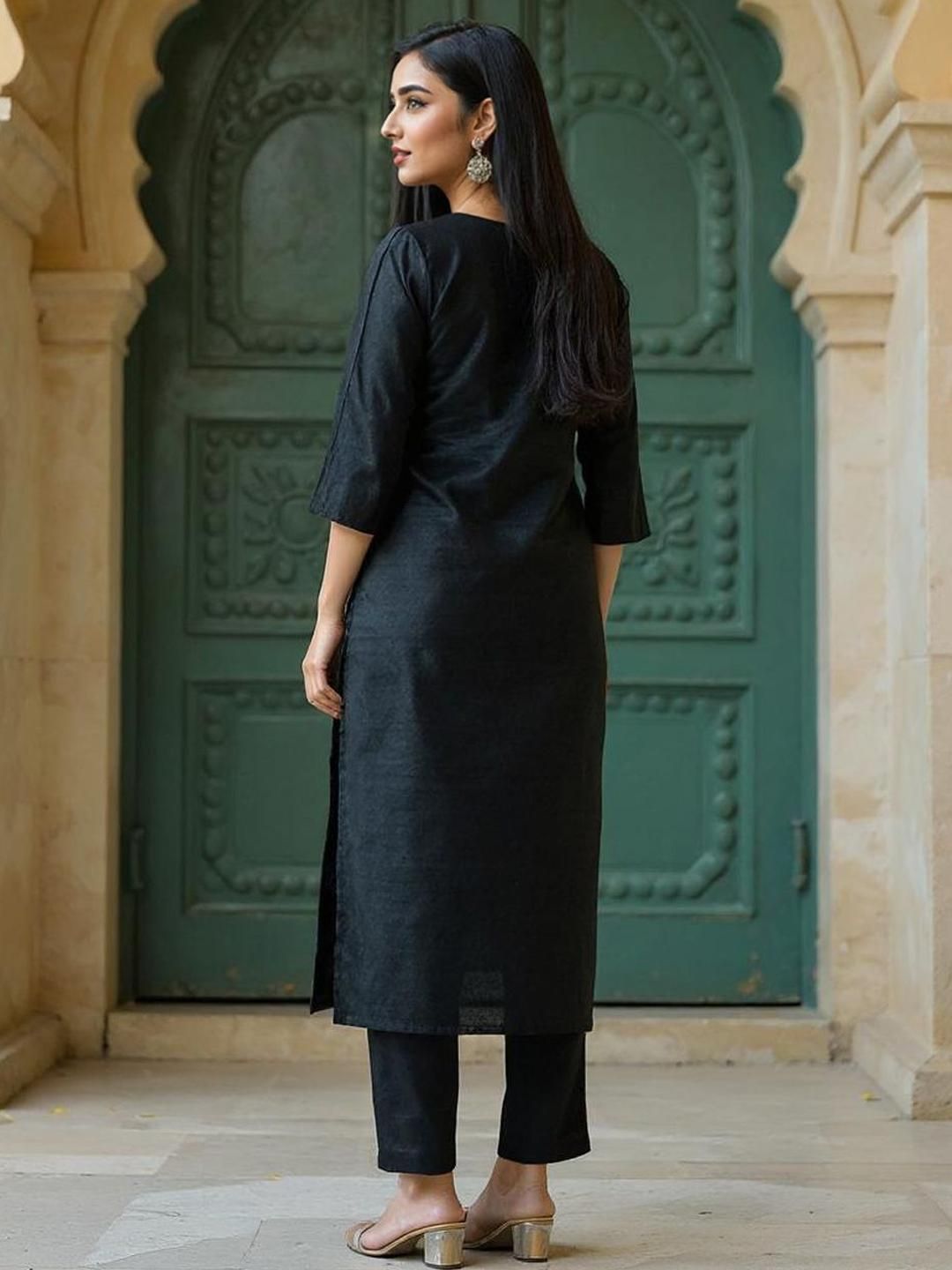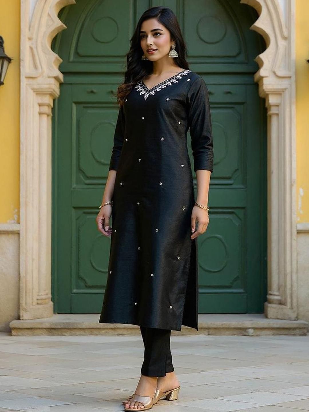 SZN Floral Embroidered Thread Work V-Neck Straight Kurta With Trouser