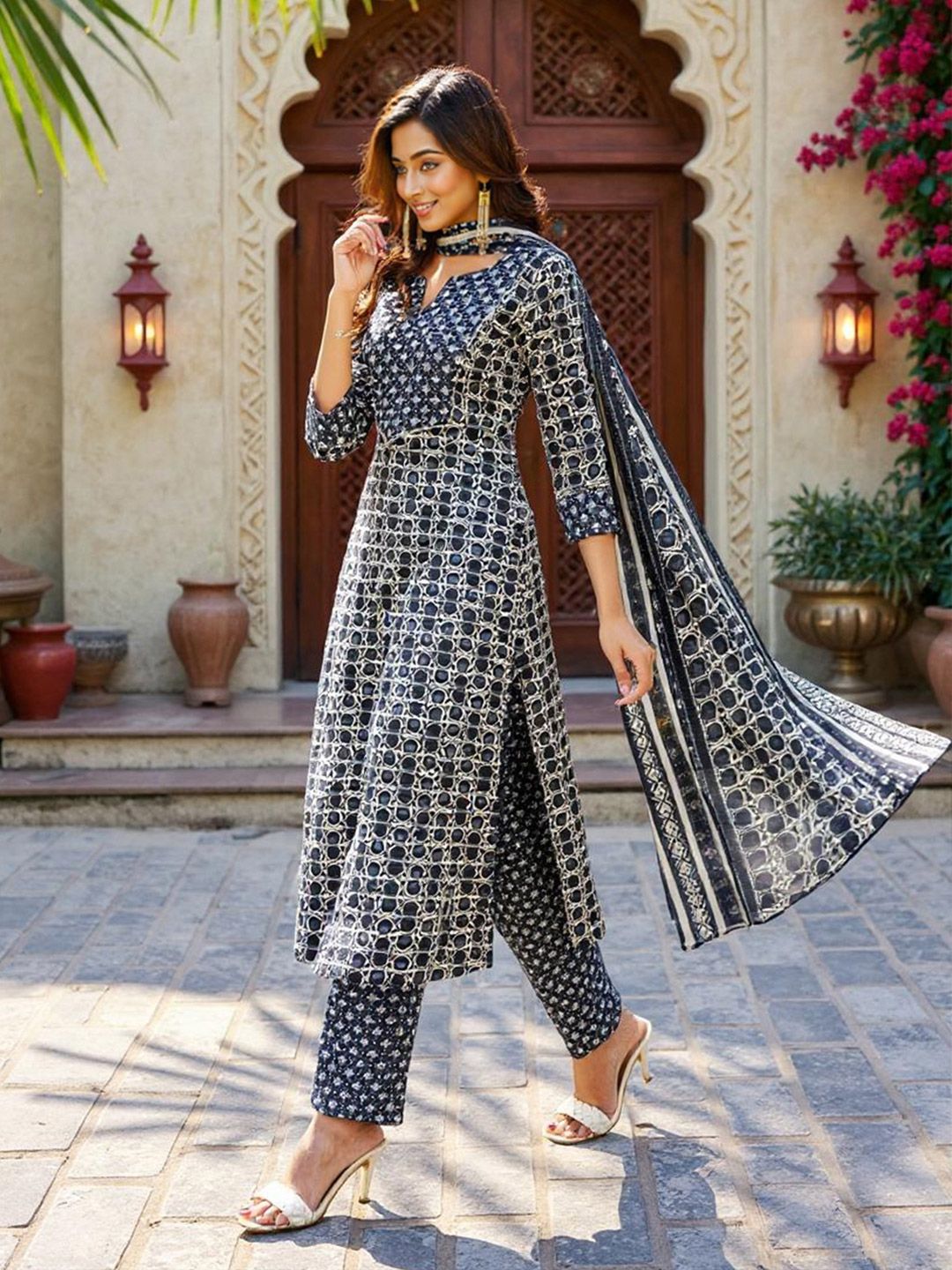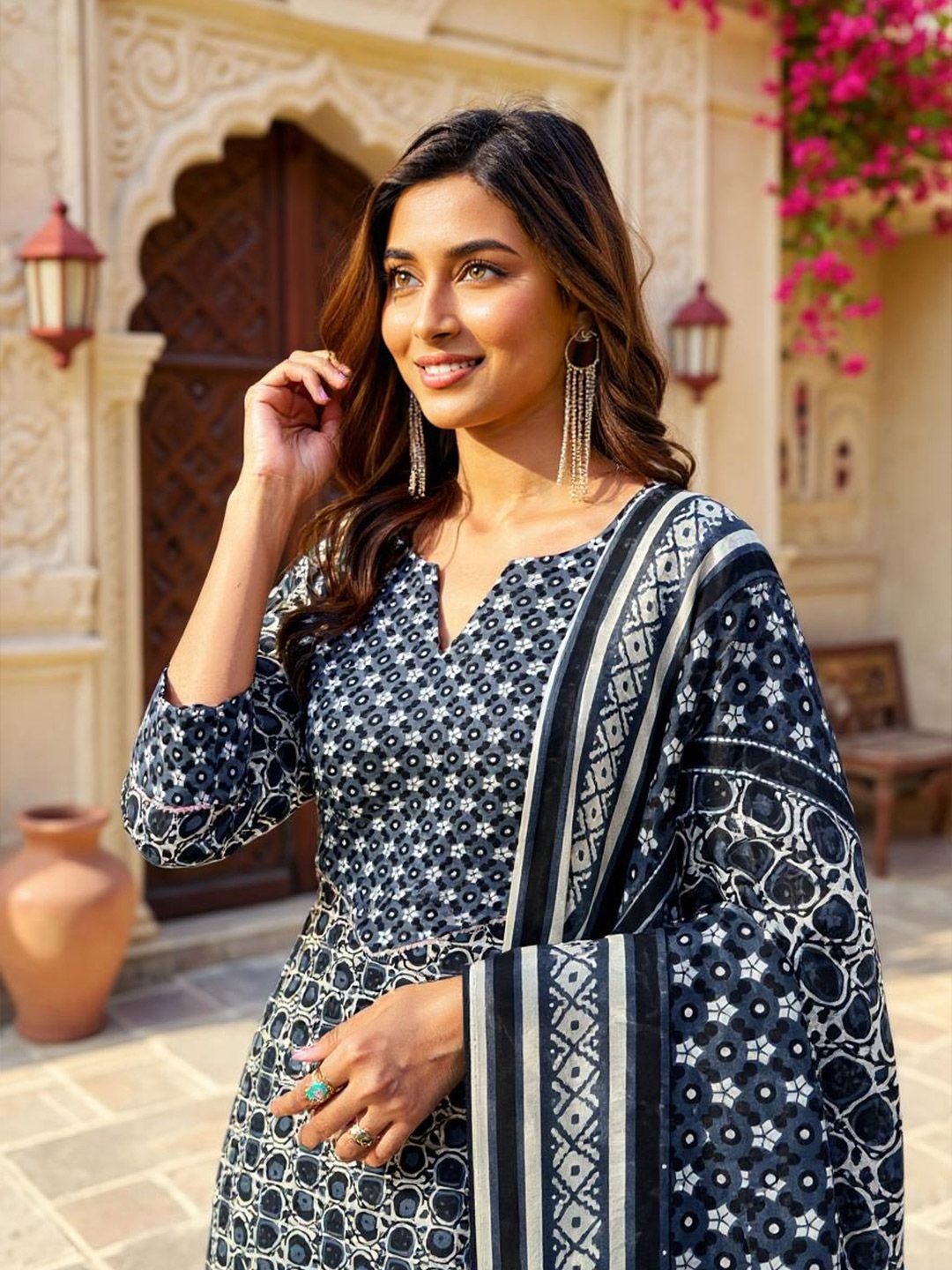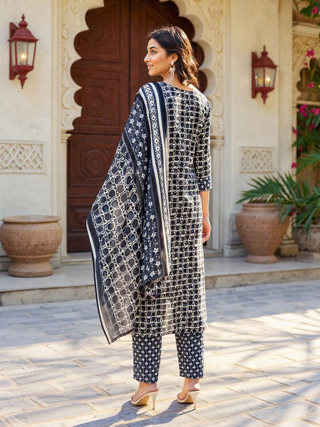 SZN Floral Printed Gotta Patti Straight Kurta With Trousers And Dupatta