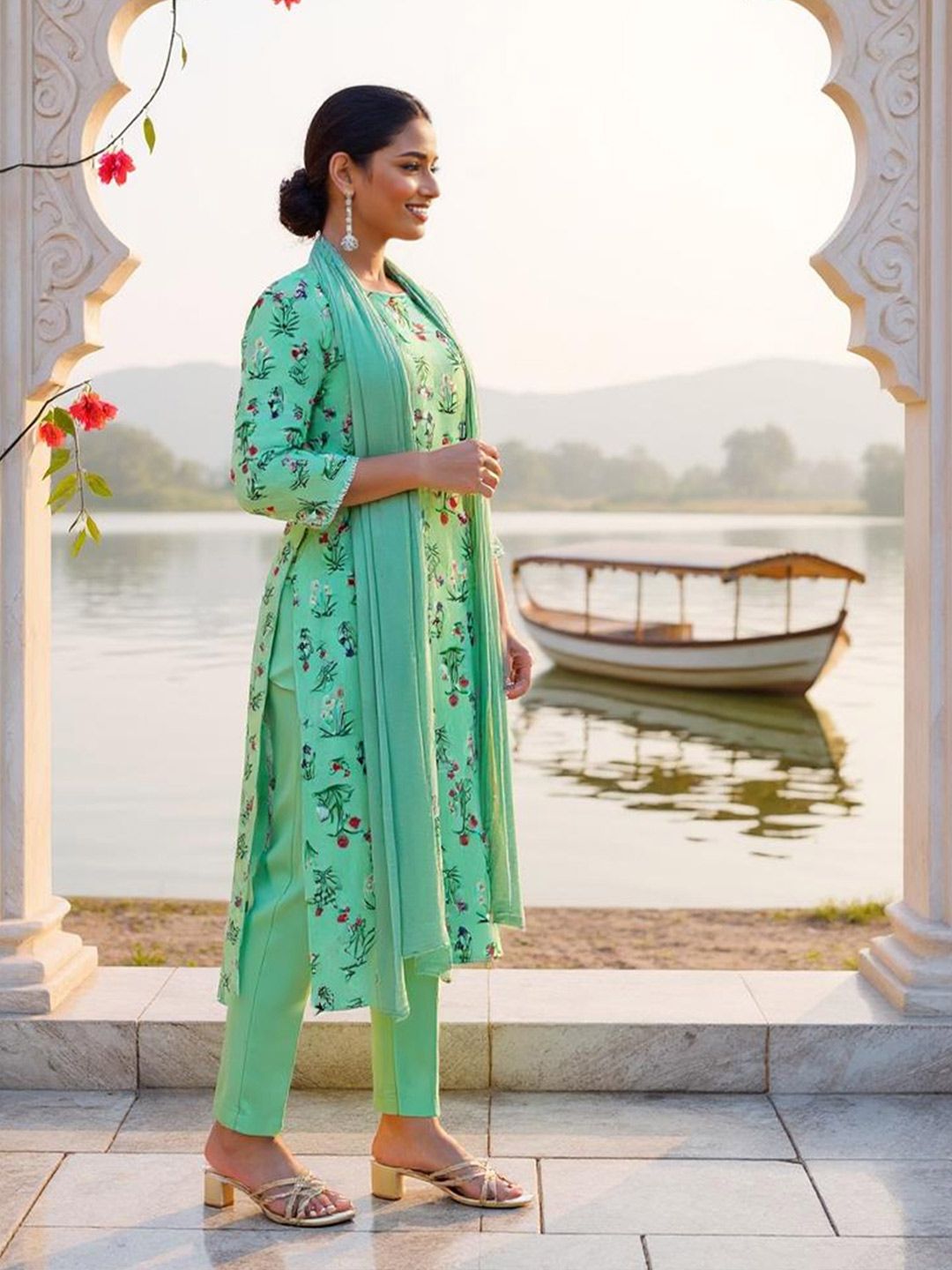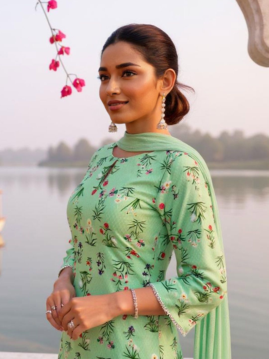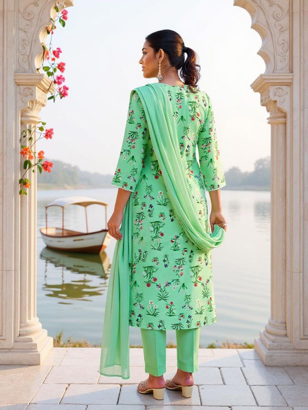 SZN Floral Printed Keyhole Neck Straight Kurta With Trouser And Dupatta