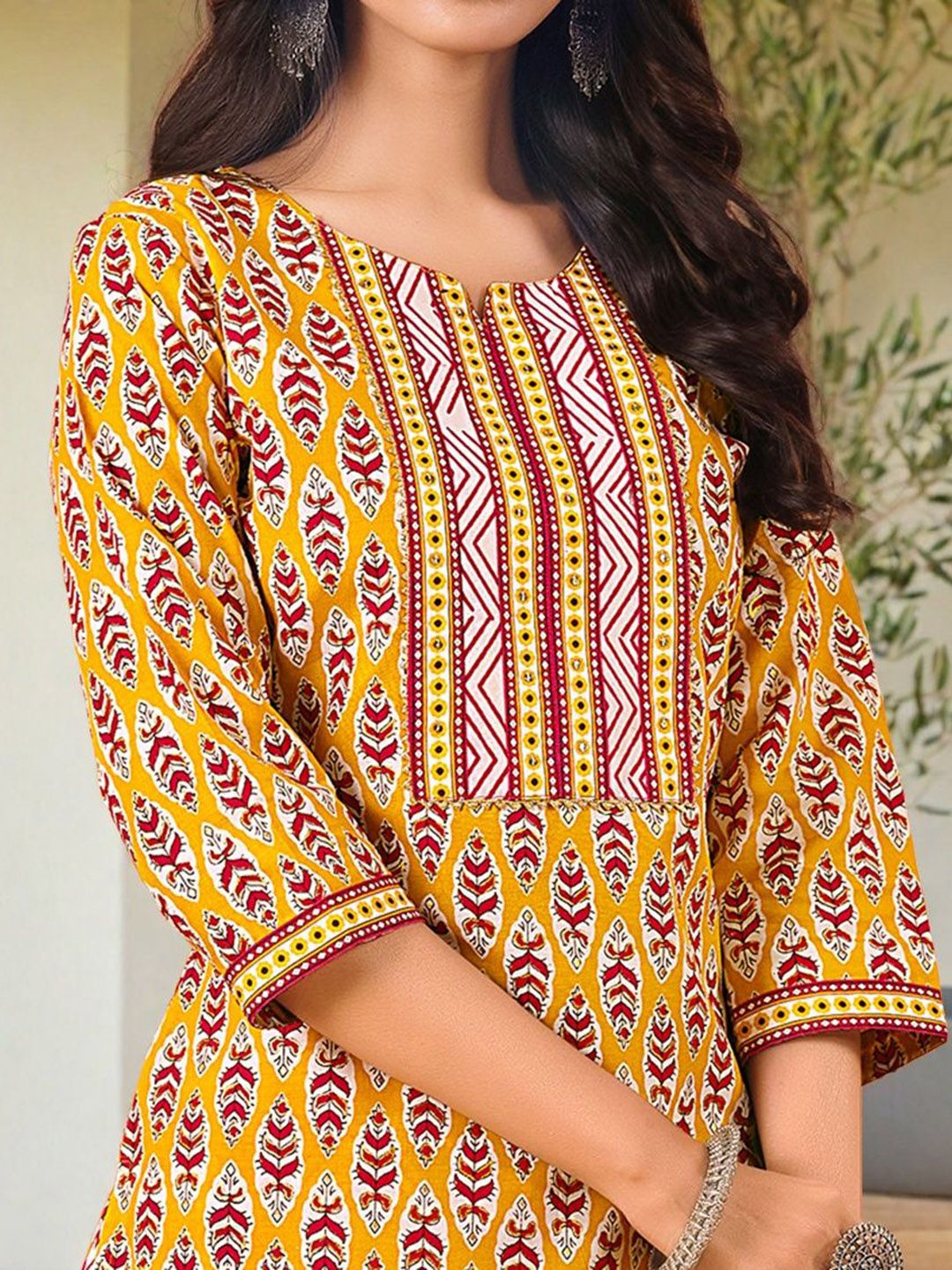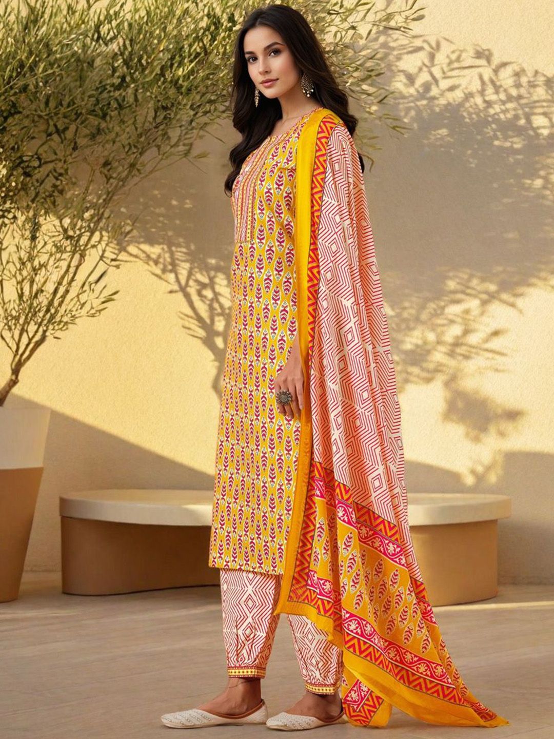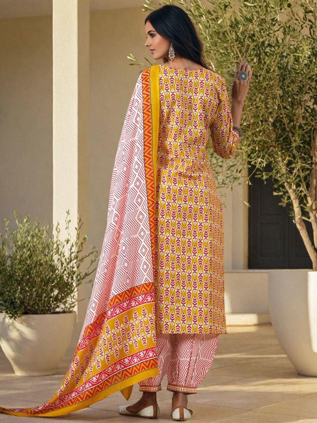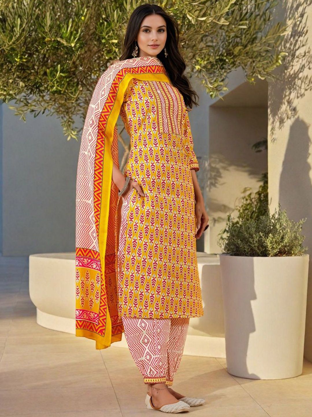 SZN Floral Printed Notch-Neck Straight Kurta With Salwar And Dupatta