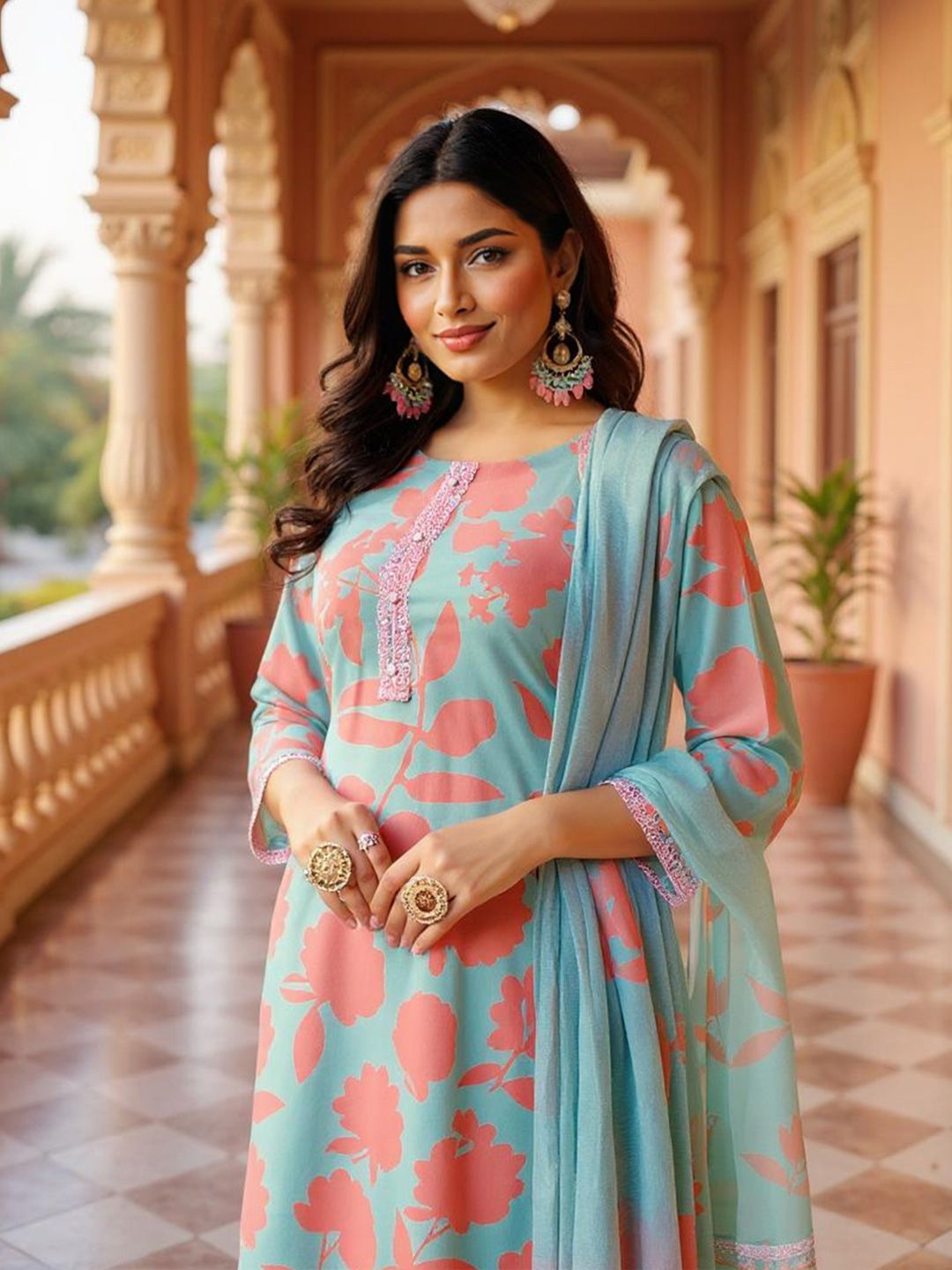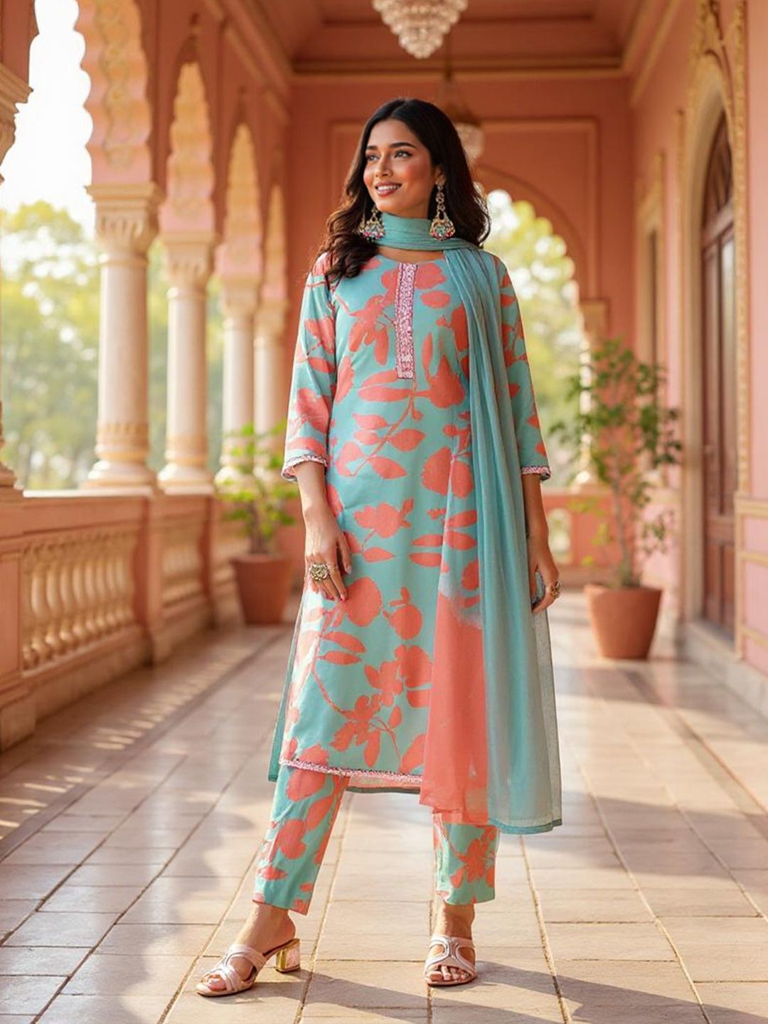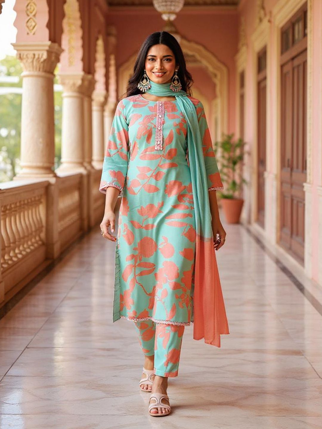 SZN Floral Printed Straight Kurta With Trouser And Dupatta