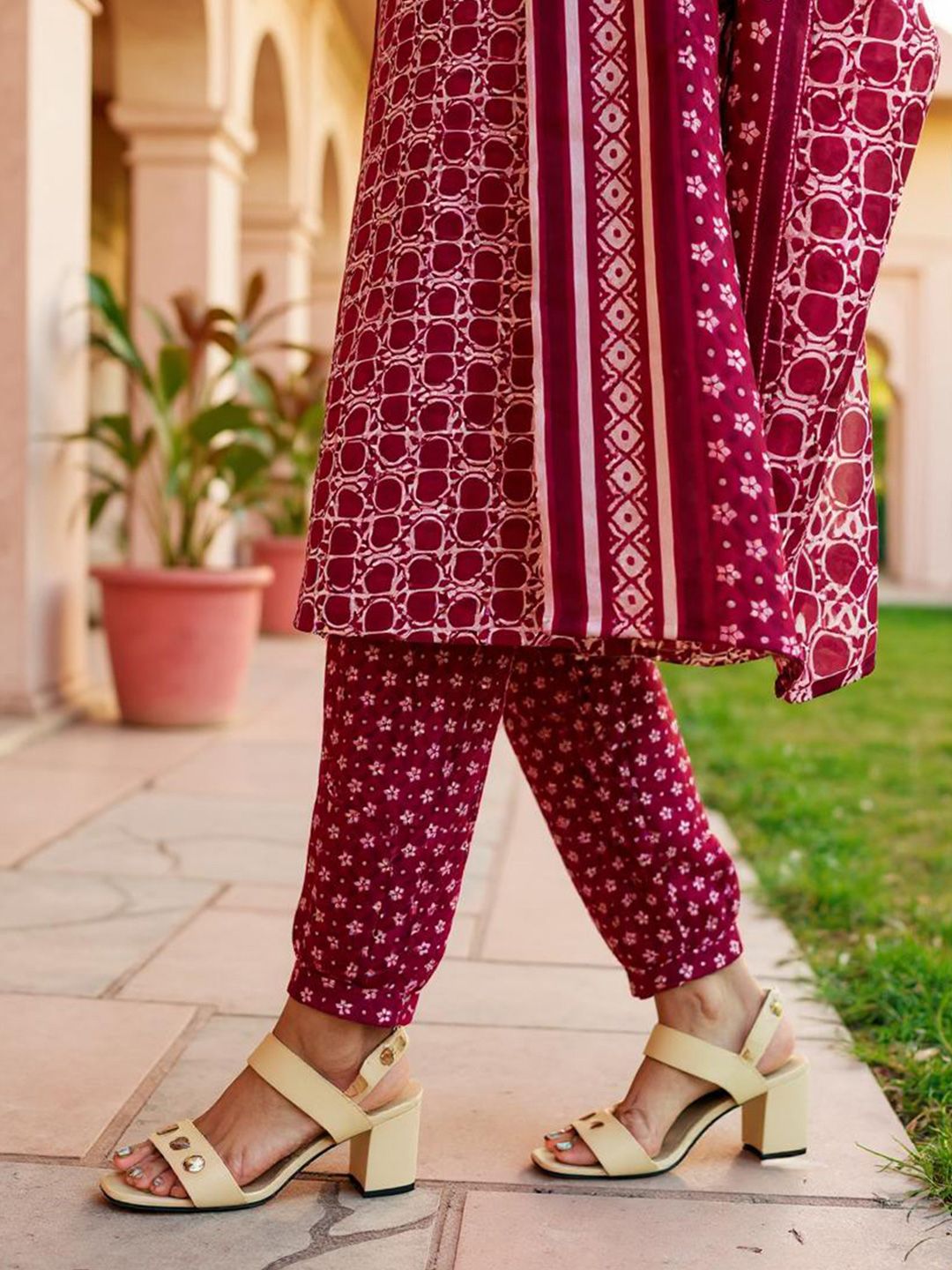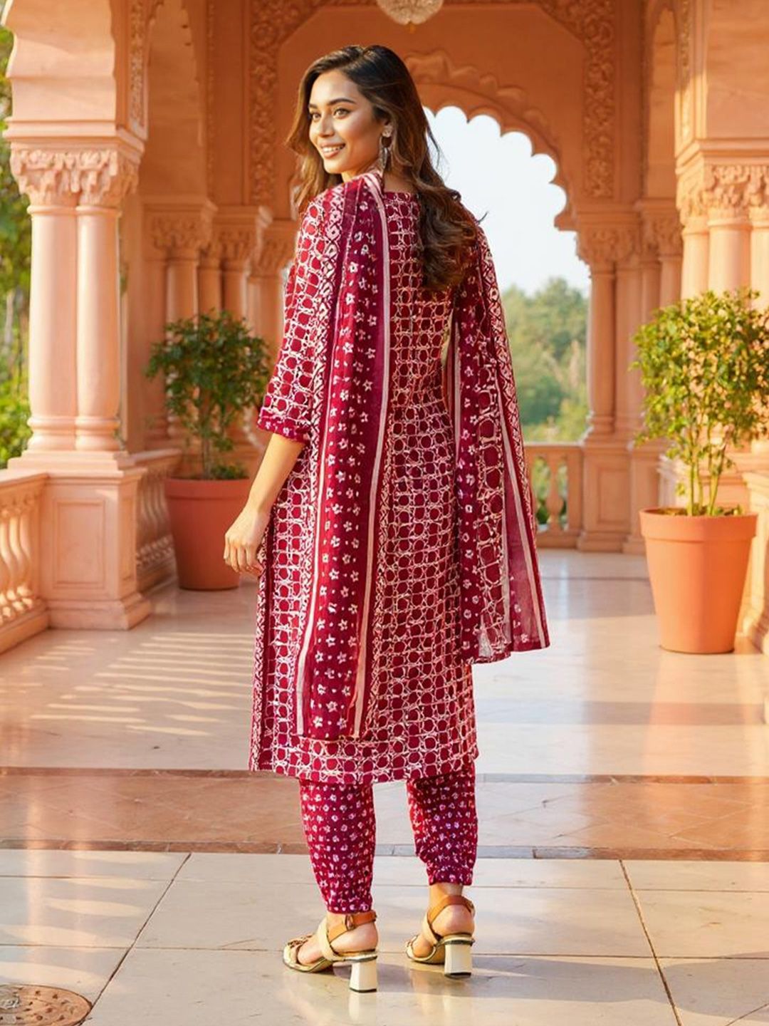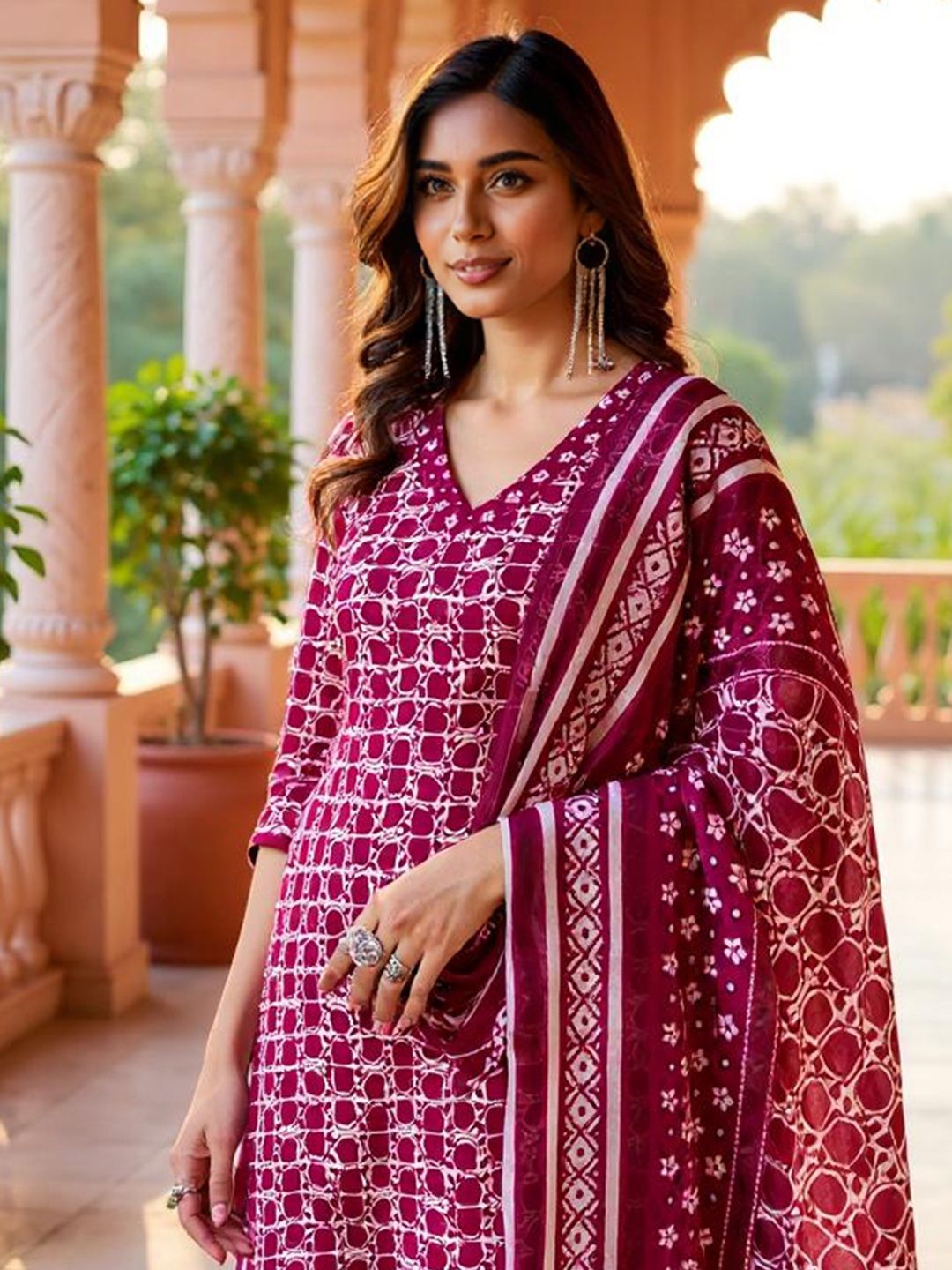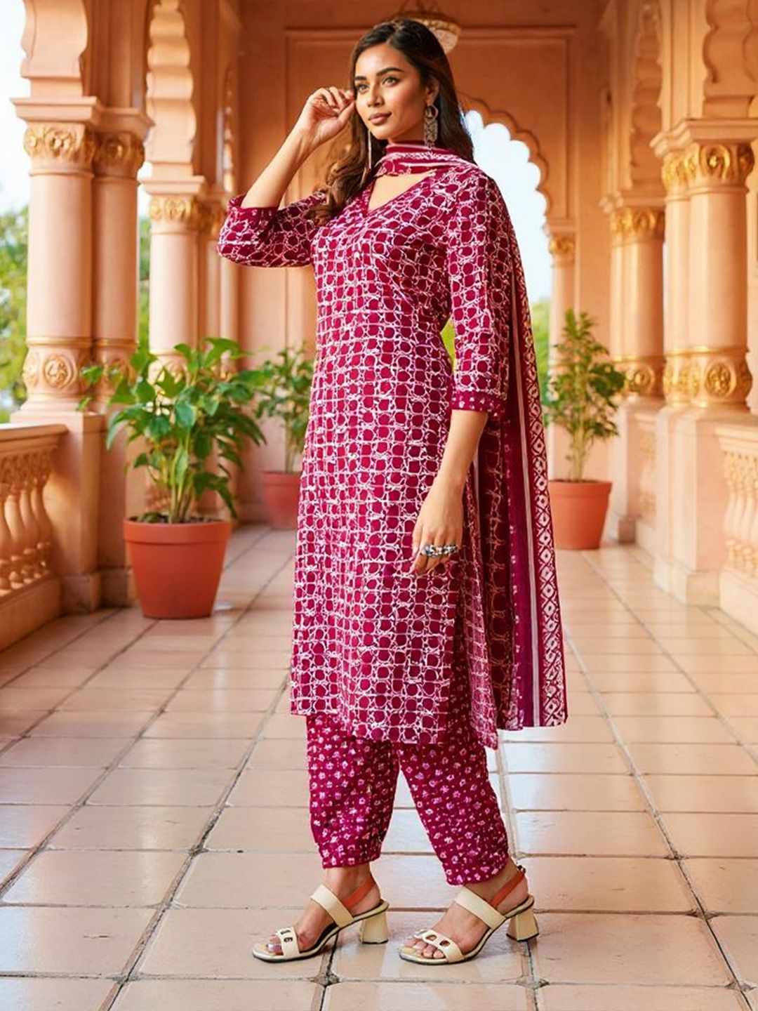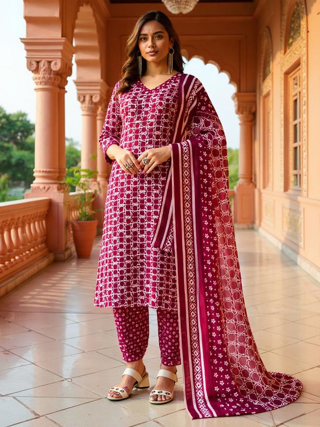 SZN Floral Printed V-Neck Straight Kurta With Trouser And Dupatta