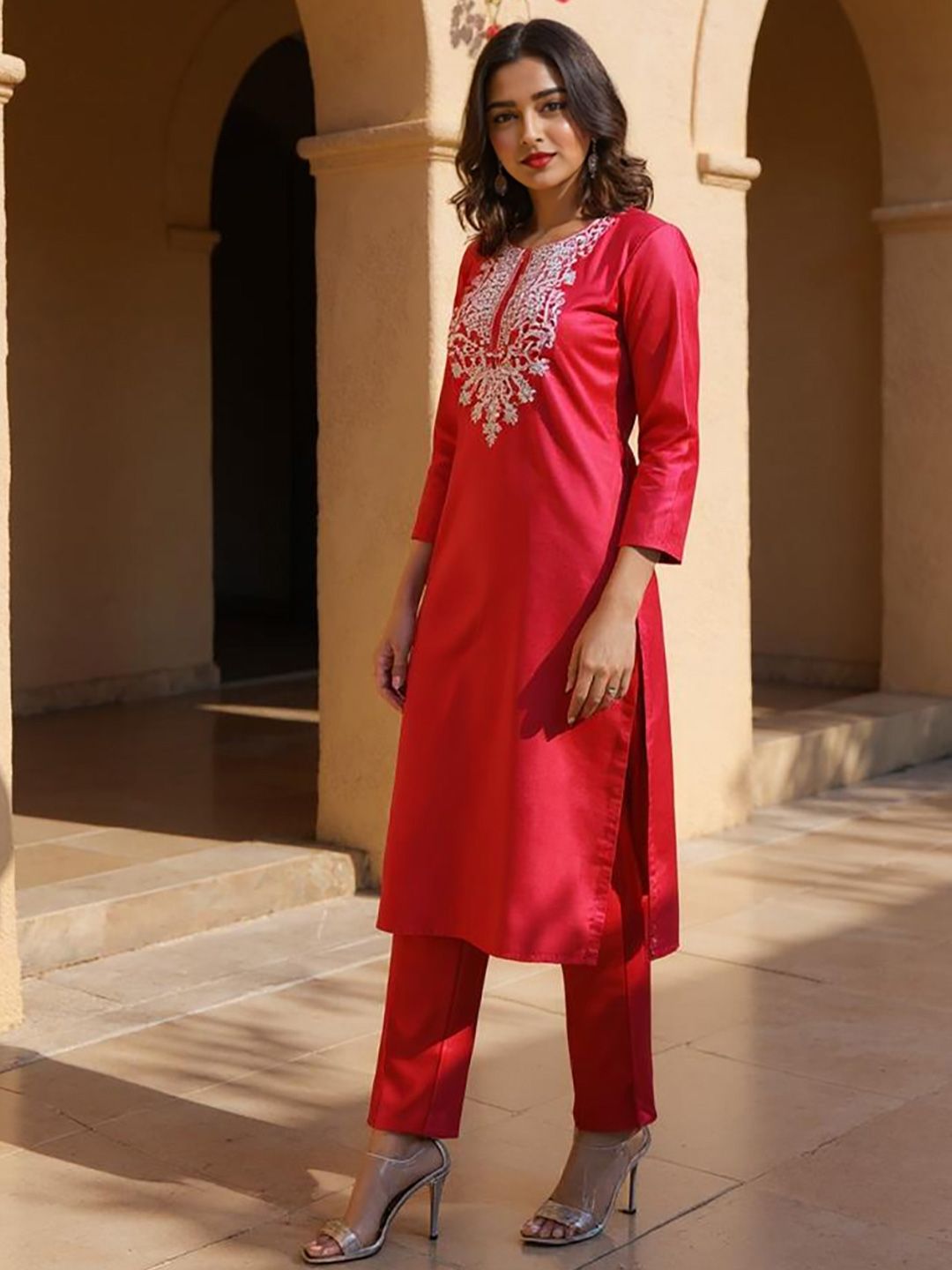 Buy this stylish SZN Floral Yoke Design Notch Neck Thread Work Cotton Silk Straight Kurta With Trouser at Marincart Nepal. This product offers great quality and value. Perfect for those looking for the latest trends in fashion. Get yours now at unbeatable prices.