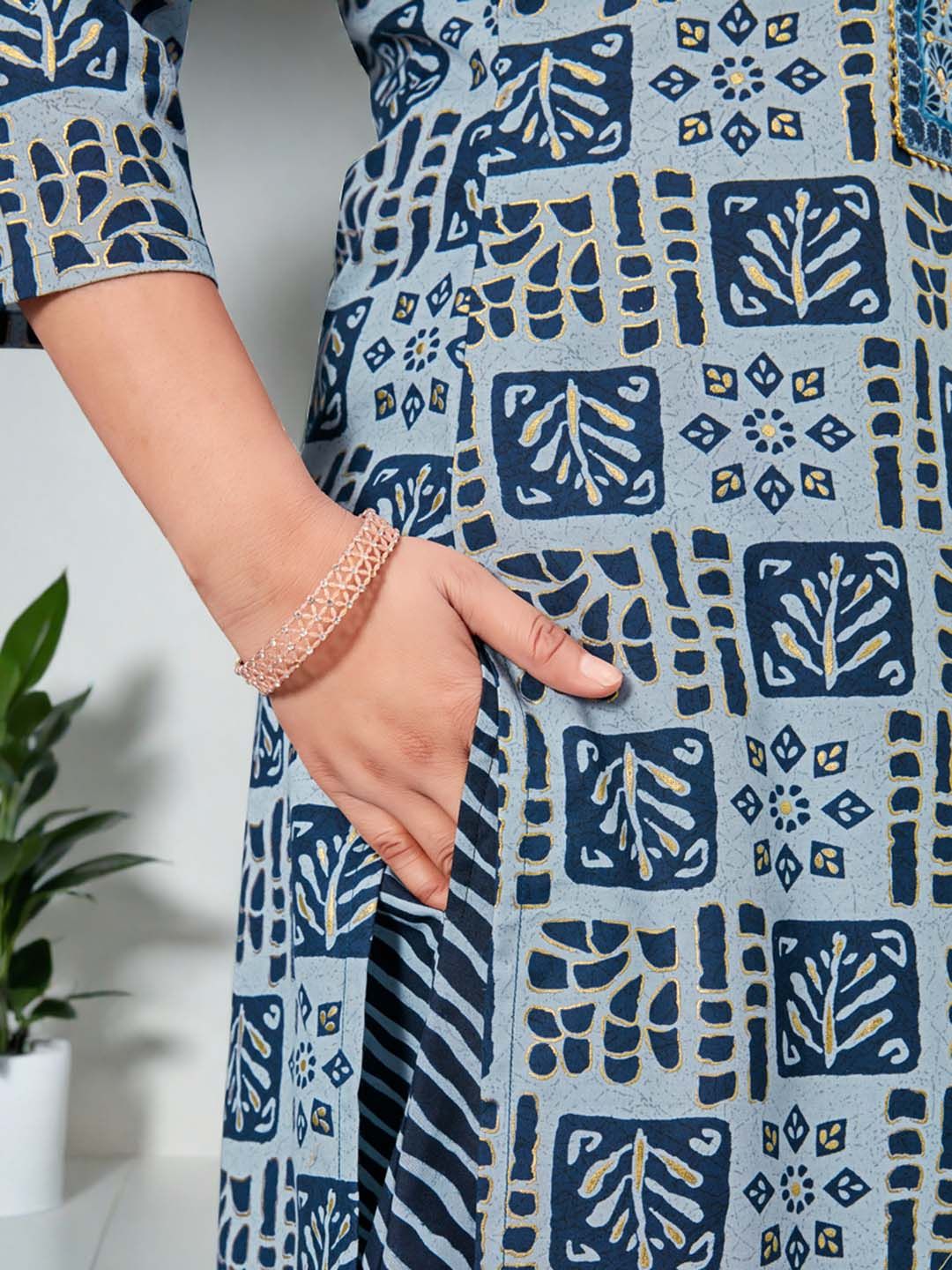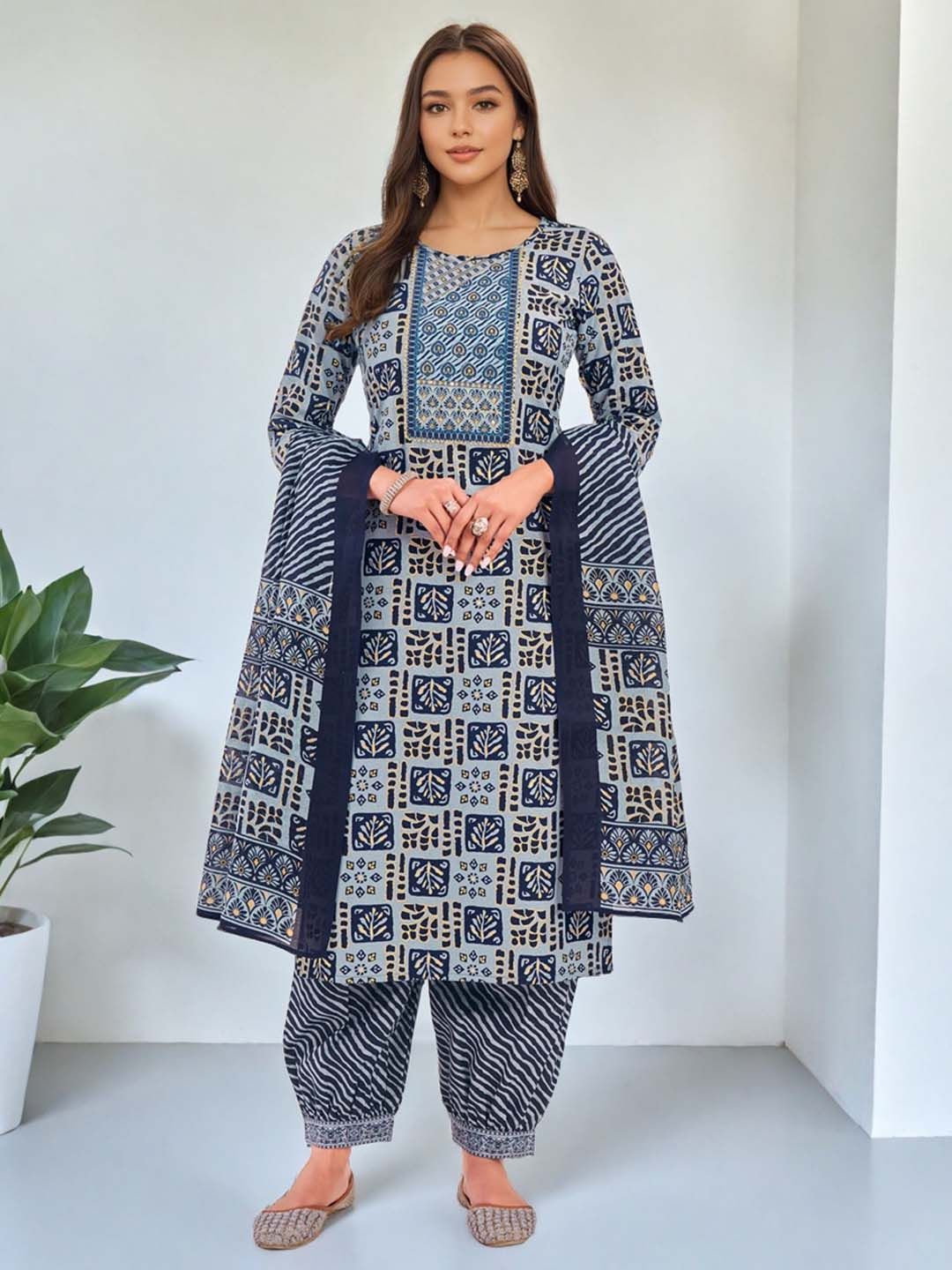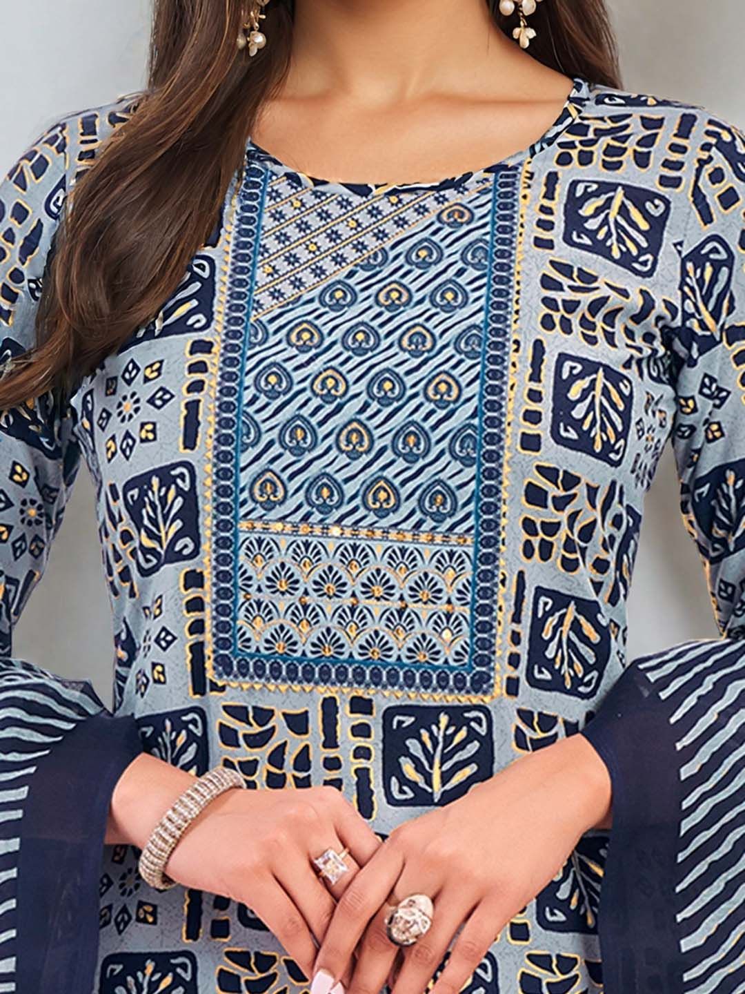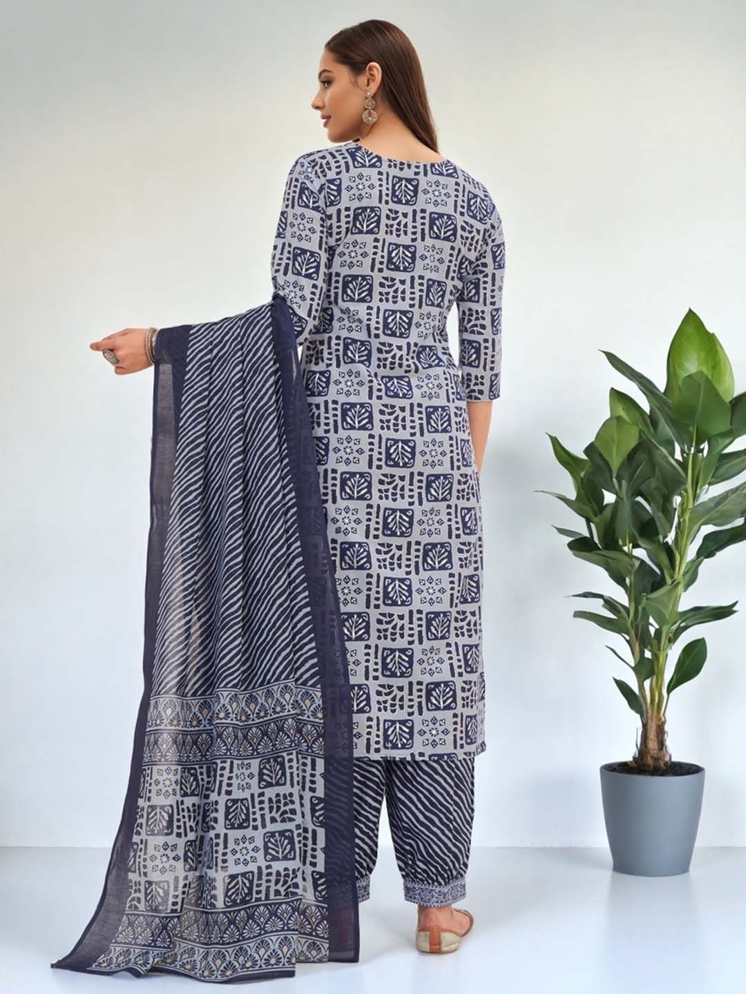 SZN Geometric Printed Gotta Patti Straight Kurta With Salwar & Dupatta