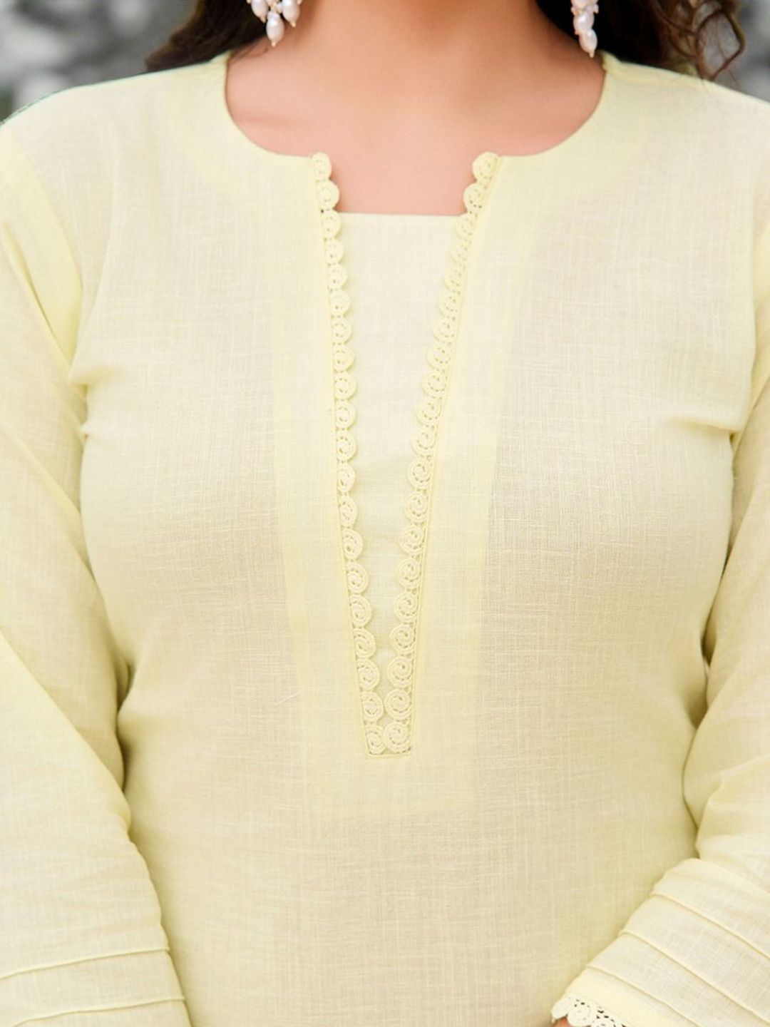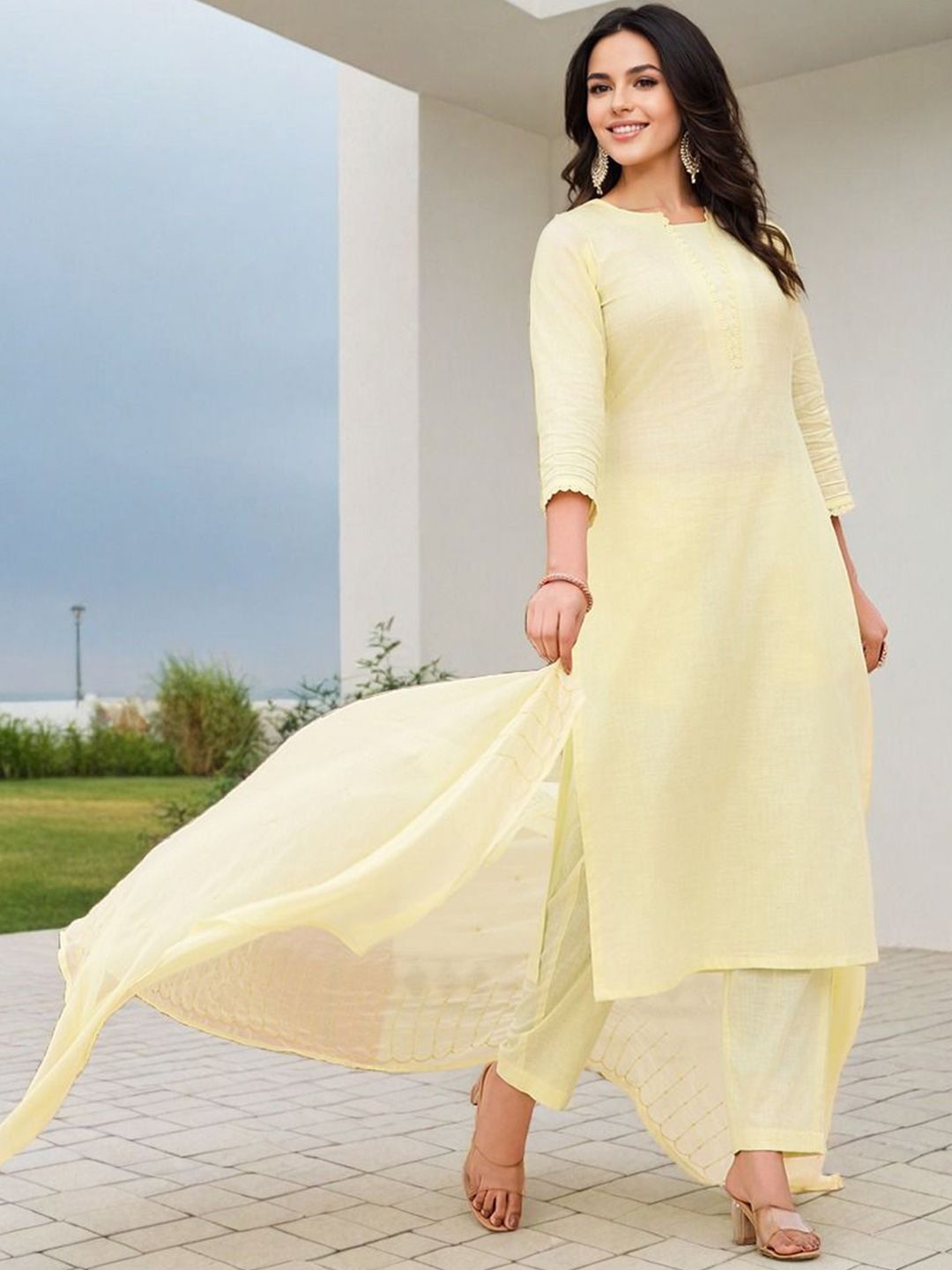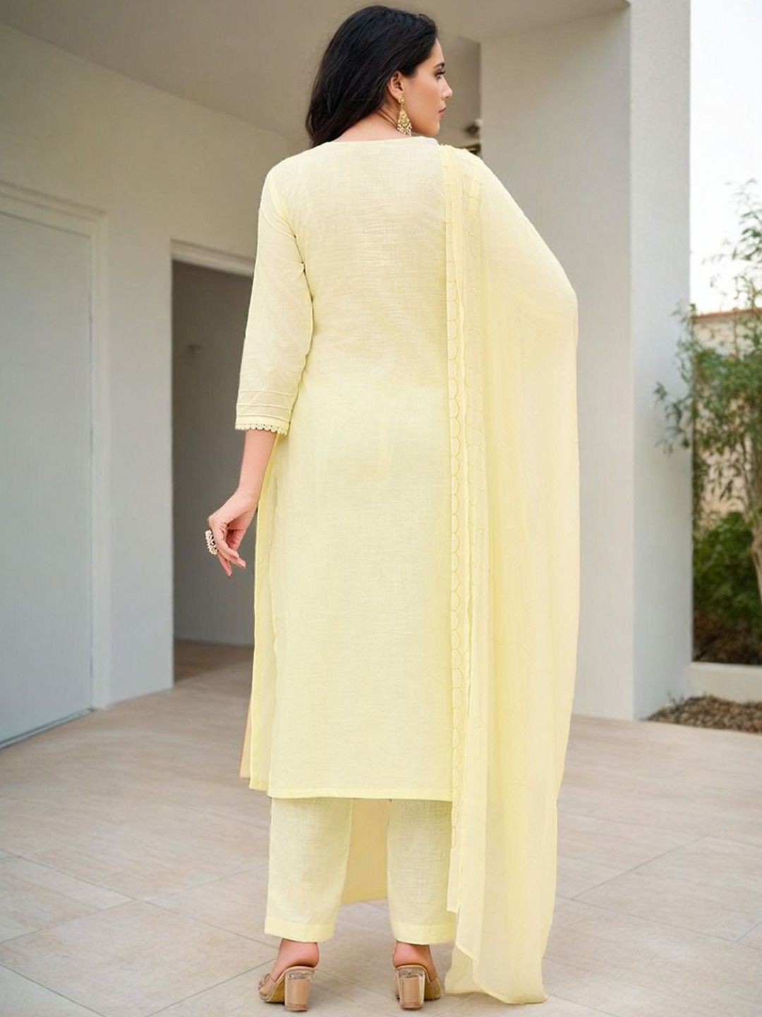SZN Linen Notch Neck Straight Kurta With Trousers And Dupatta