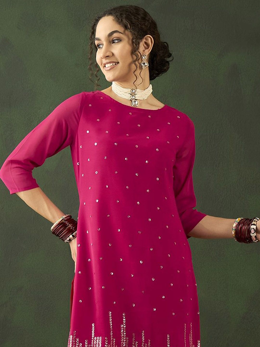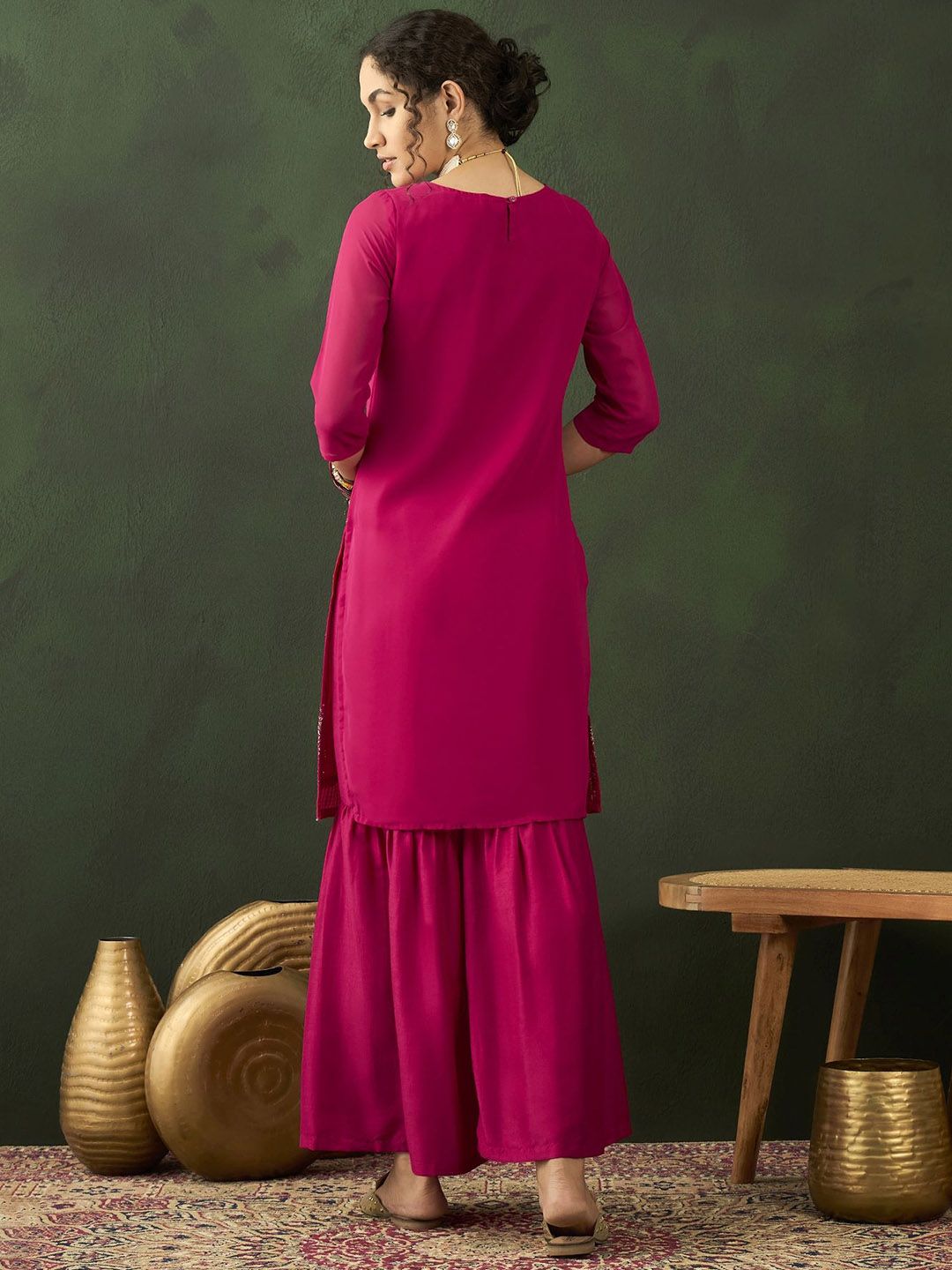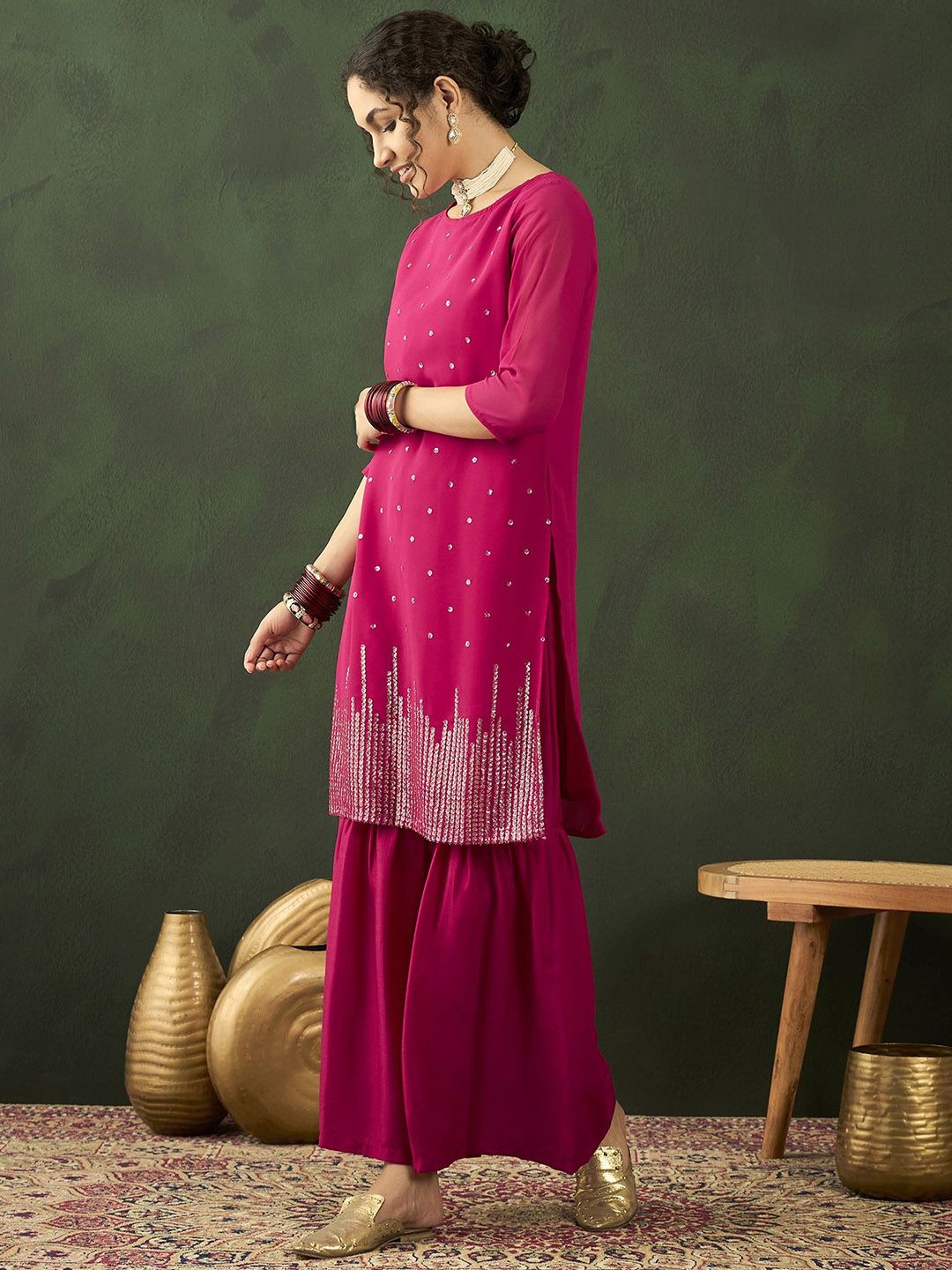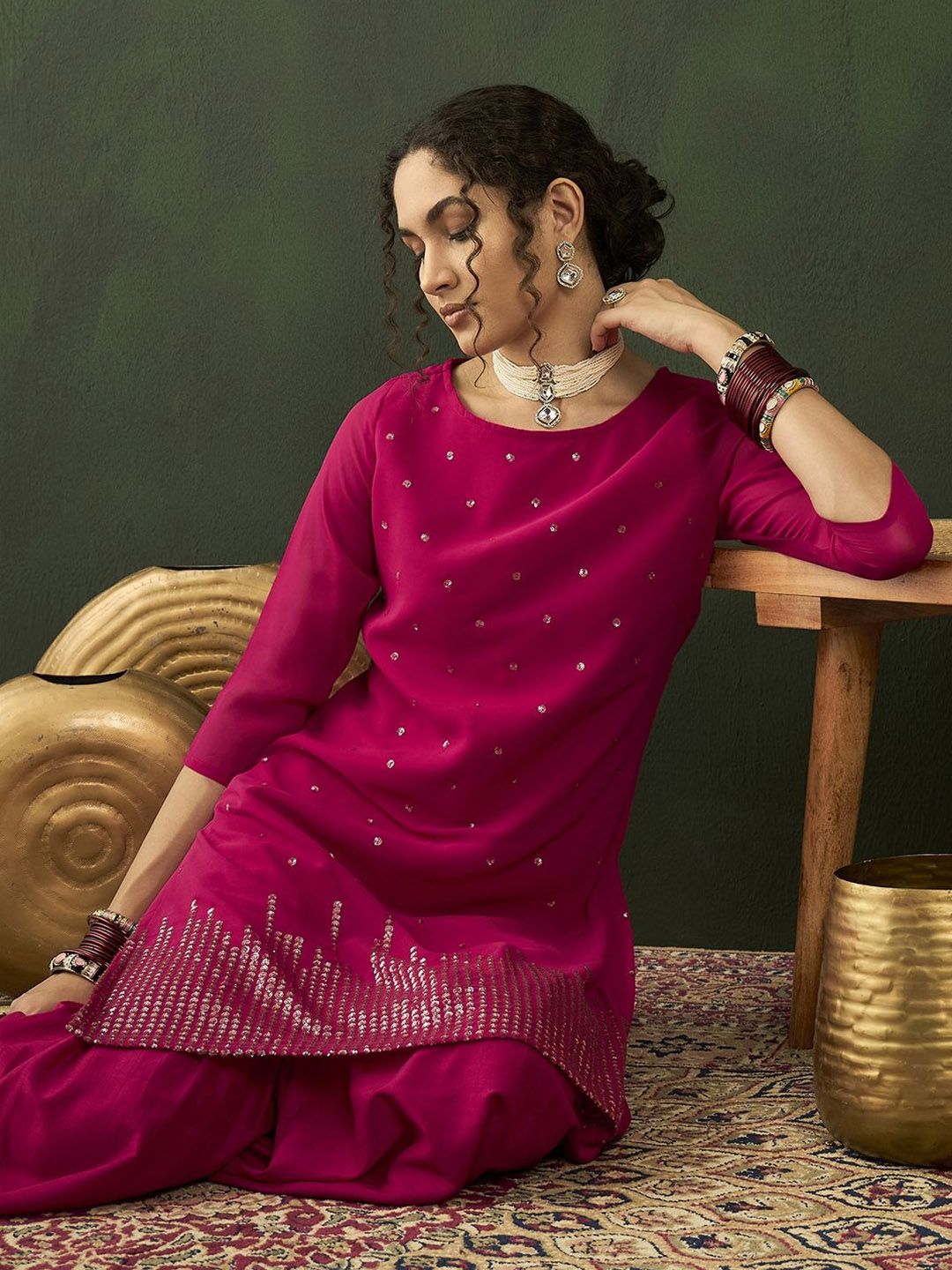 SZN Women Embroidered Sequinned Georgette Kurta with Sharara
