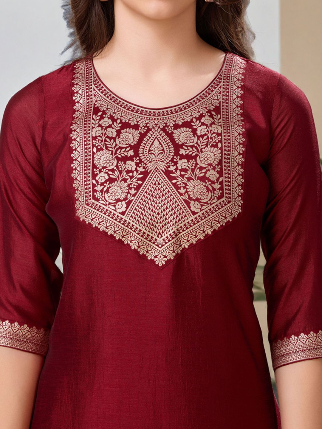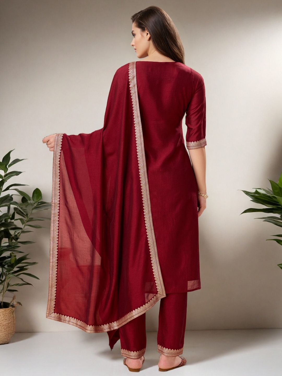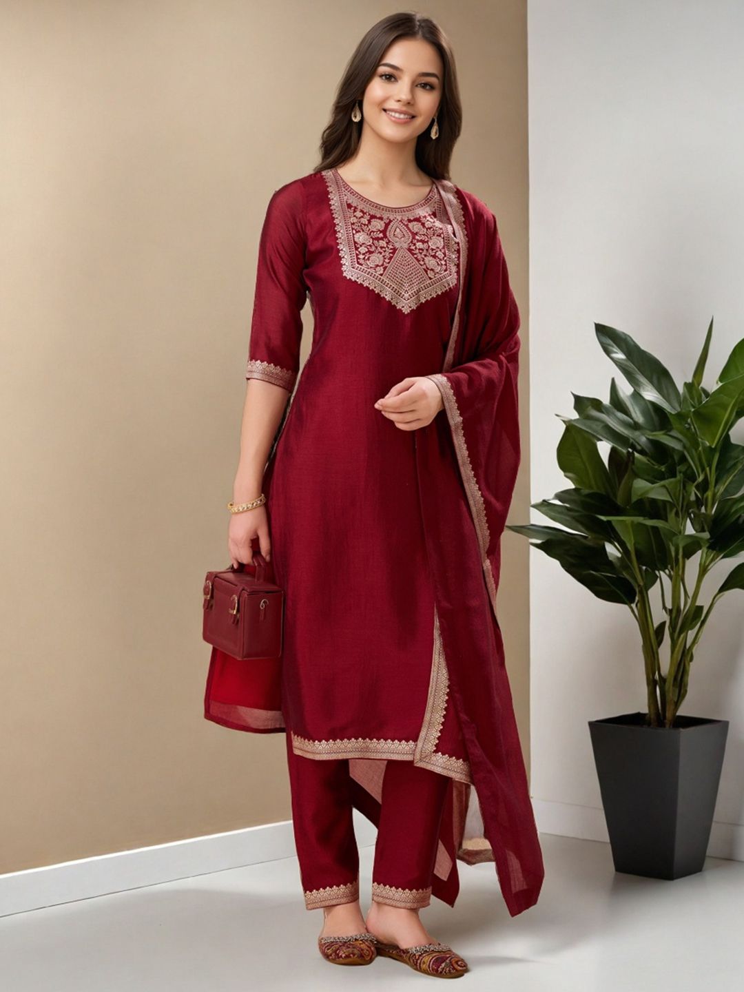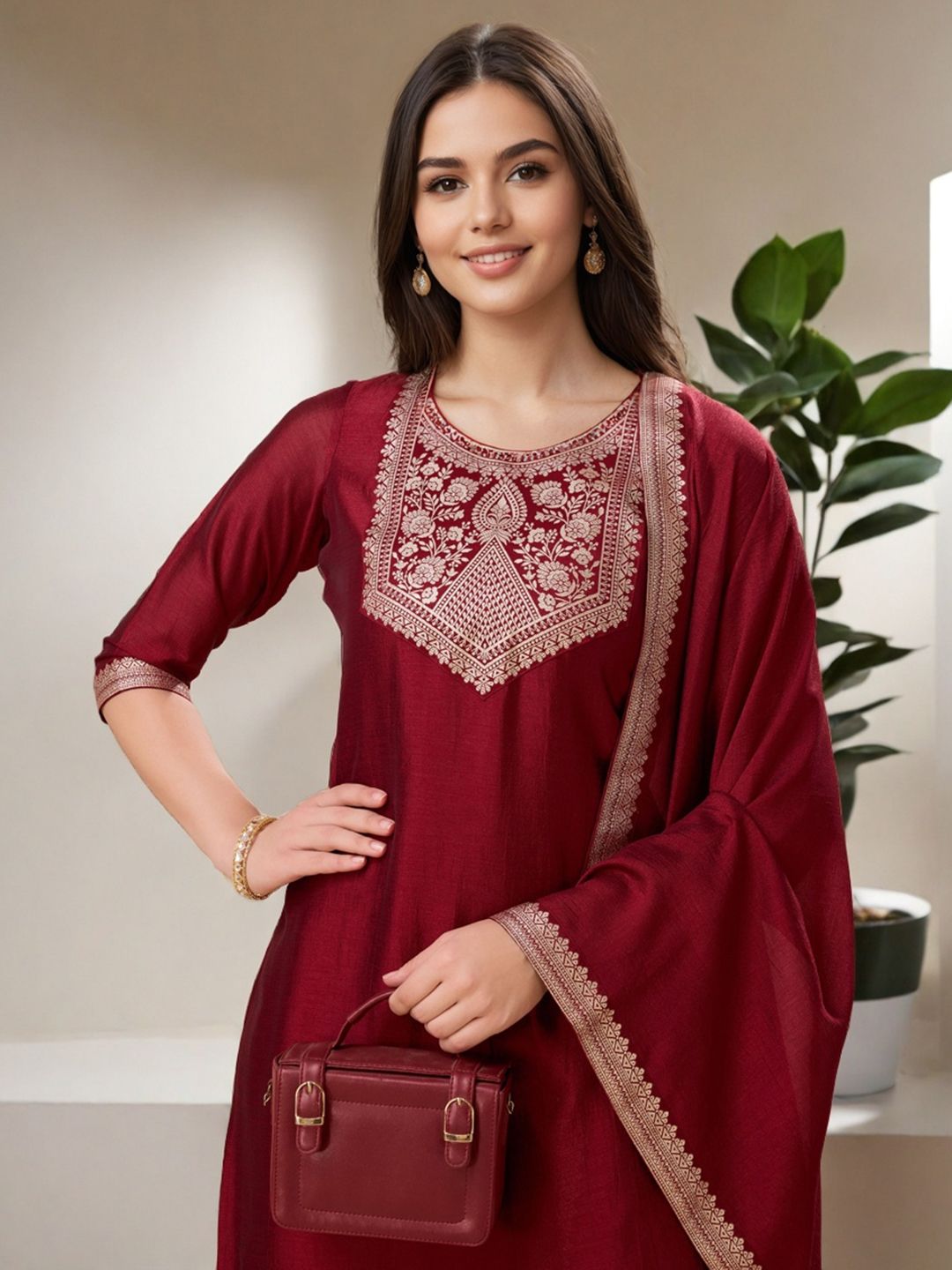 SZN Women Ethnic Motifs Embroidered Round Neck Kurta with Trousers & Dupatta