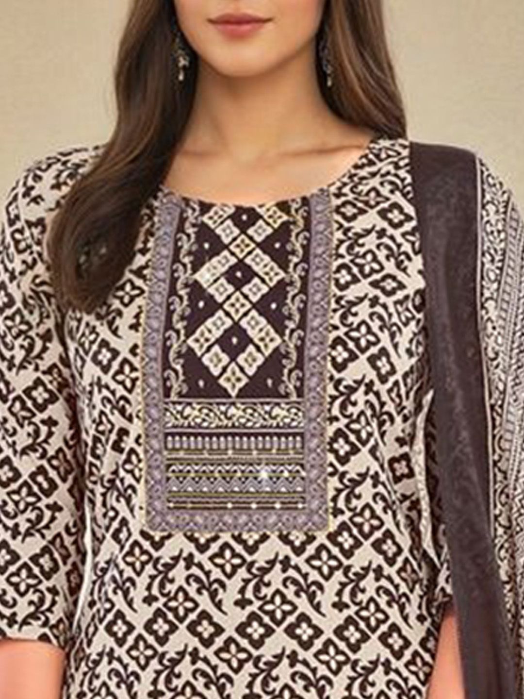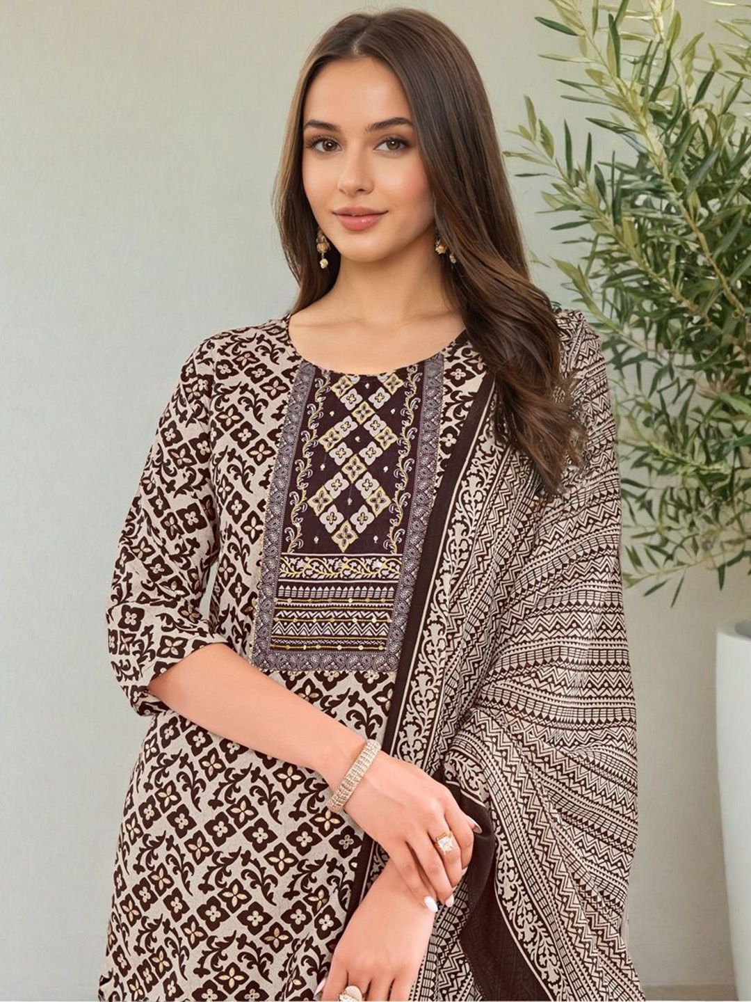 SZN Women Ethnic Motifs Printed Pure Cotton Kurta with Patiala & Dupatta