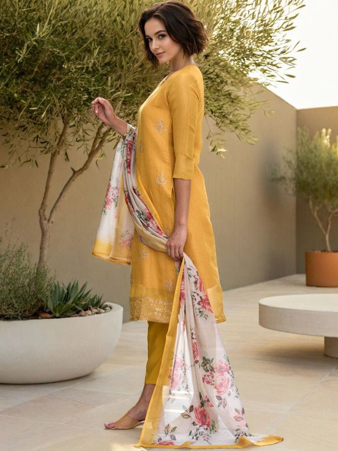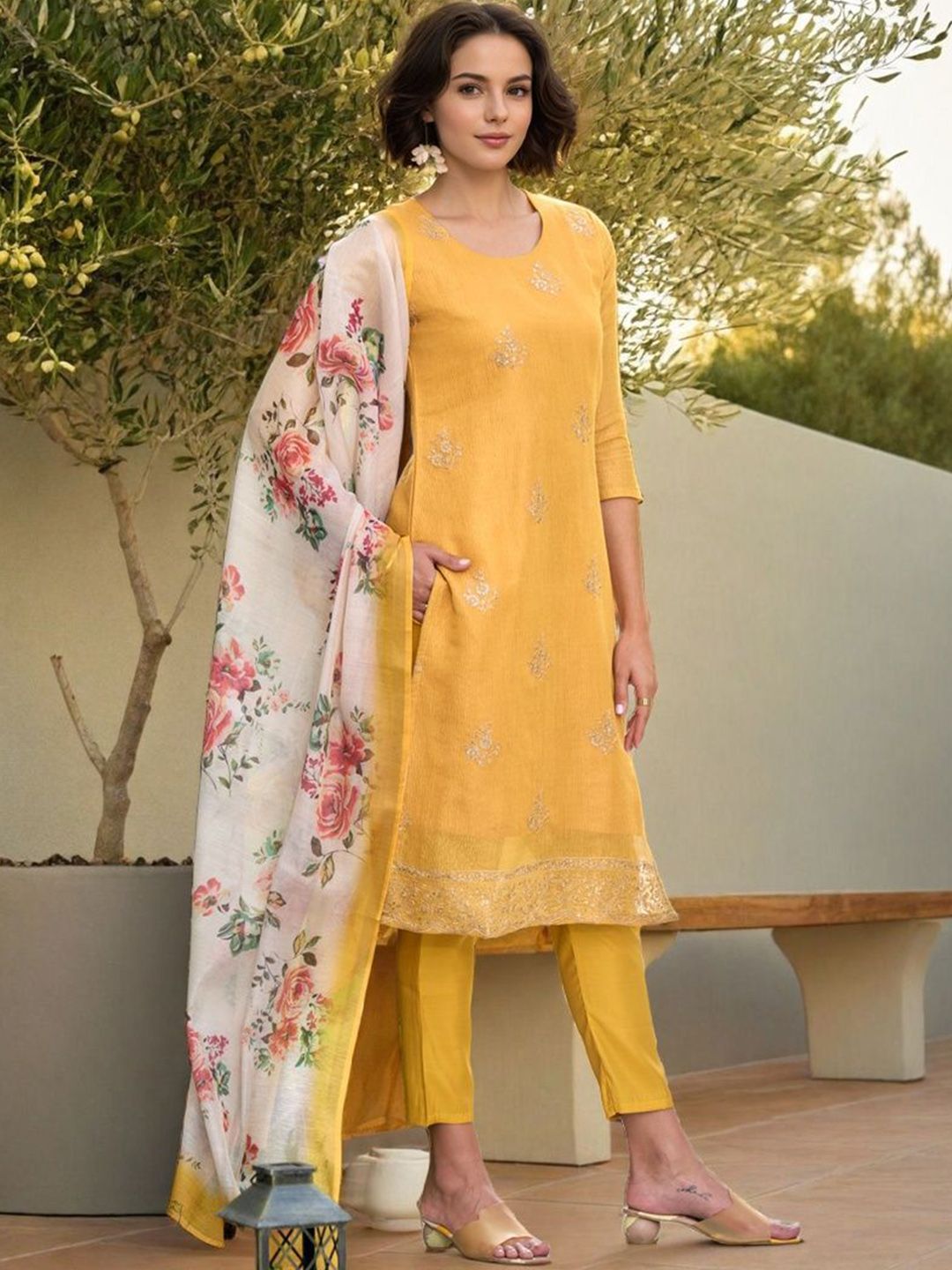 SZN Women Floral Embroidered Kurta with Trouser & Dupatta