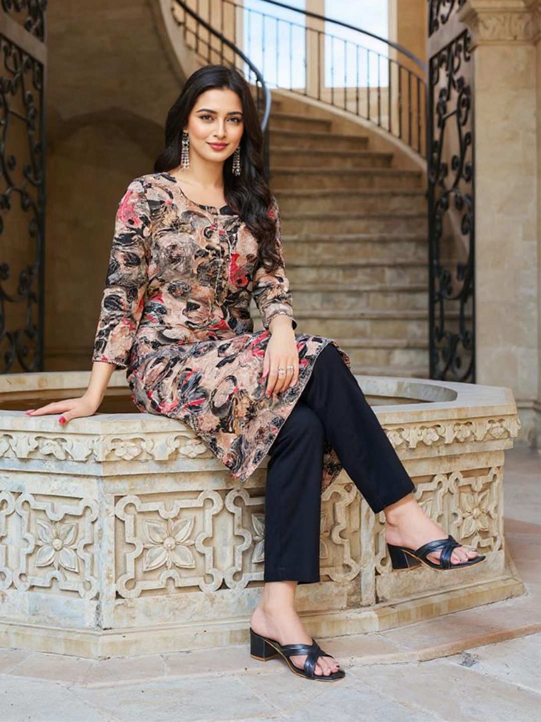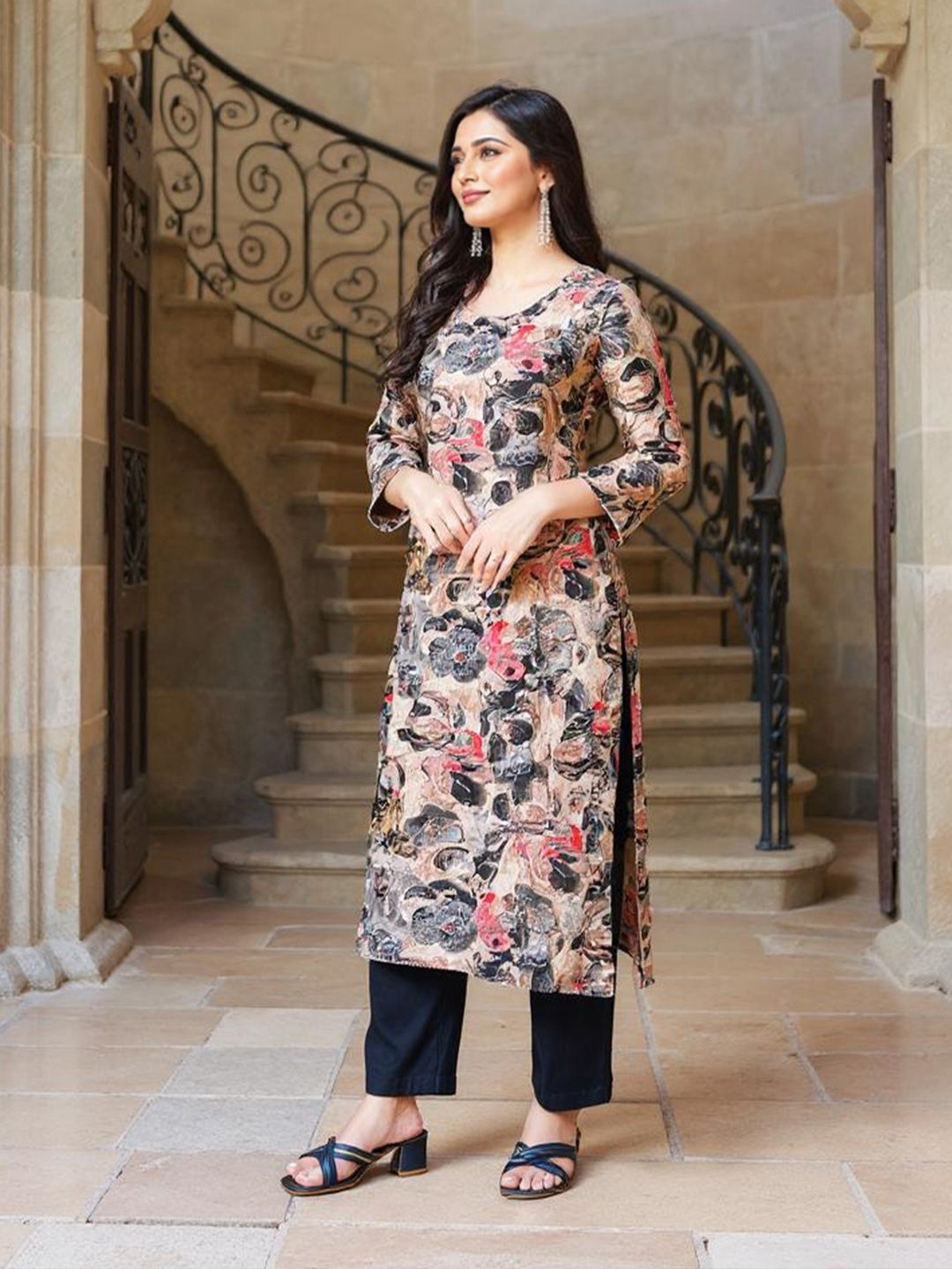 SZN Women Floral Print Straight Kurta With Touser