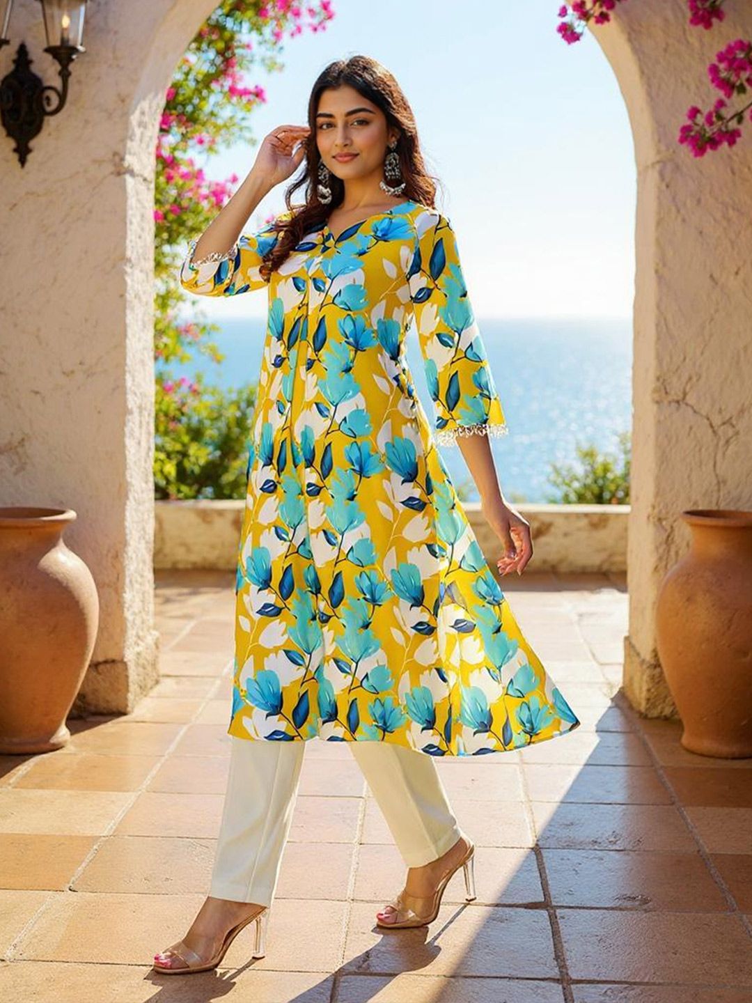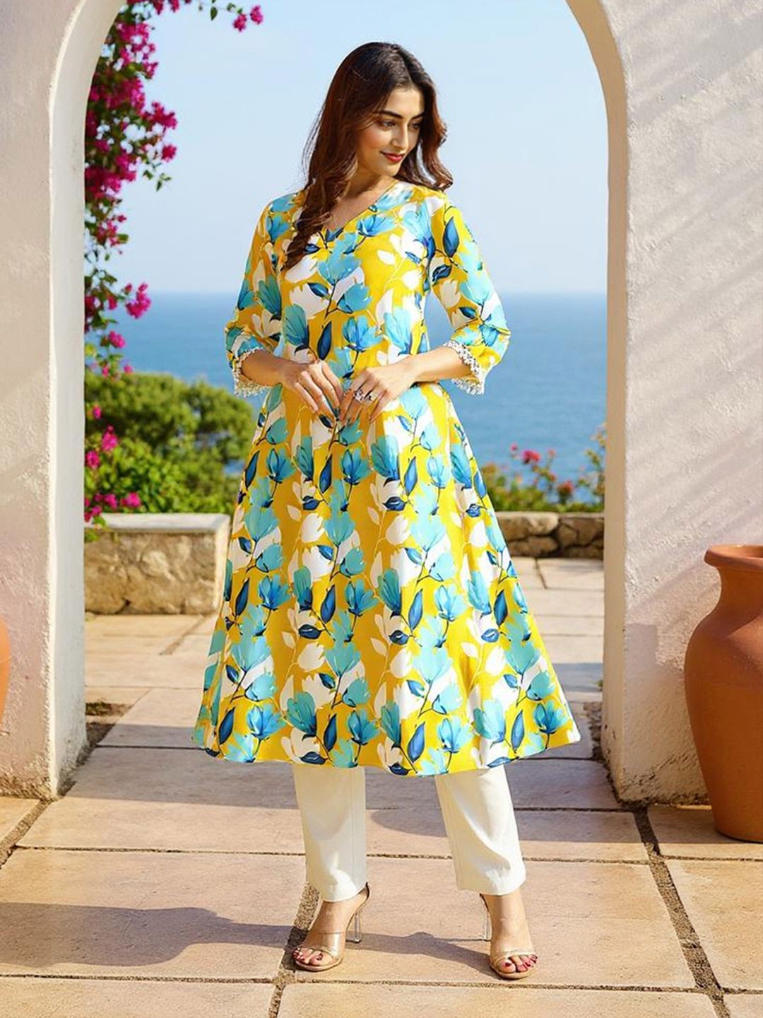 SZN Women Floral Printed A-Line Kurta with Trousers