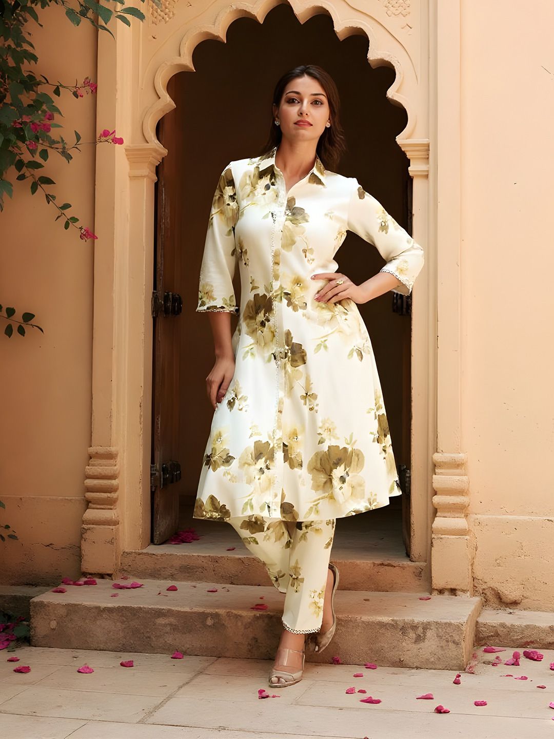 SZN Women Floral Printed A-Line Straight Regular Kurta Sets