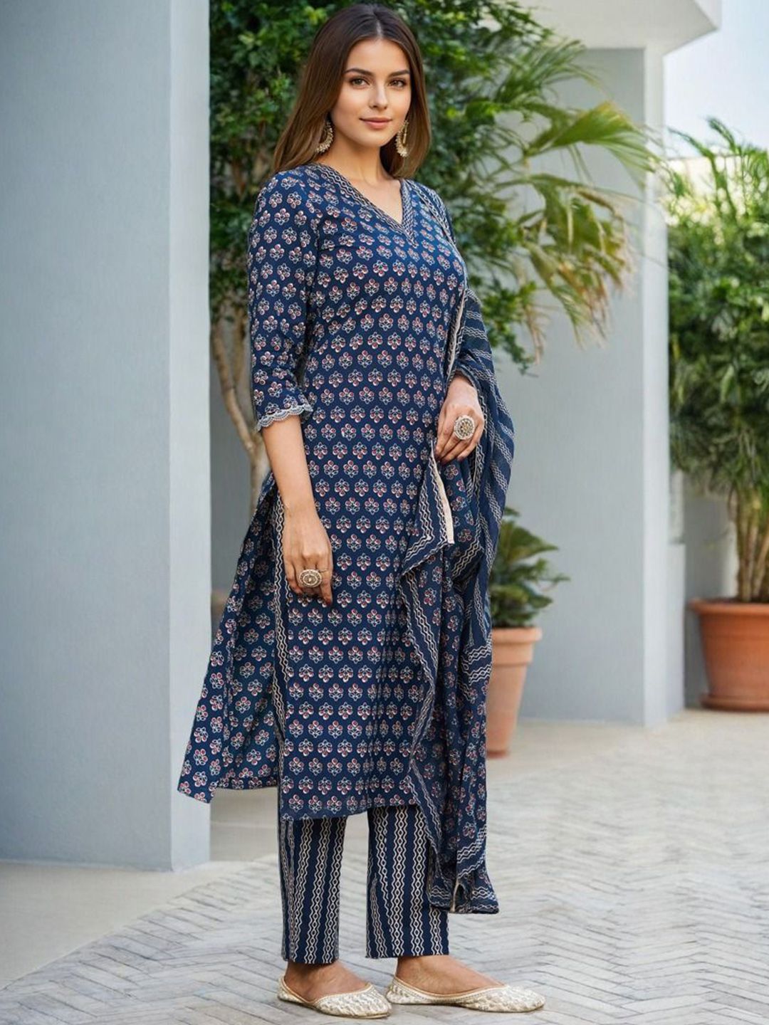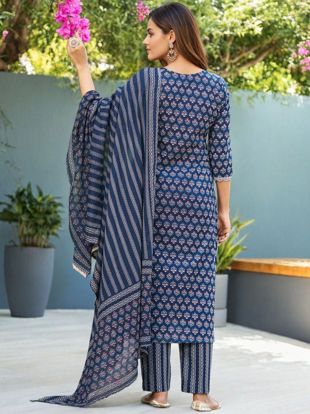 SZN Women Floral Printed Cotton Kurta with Trousers & Dupatta