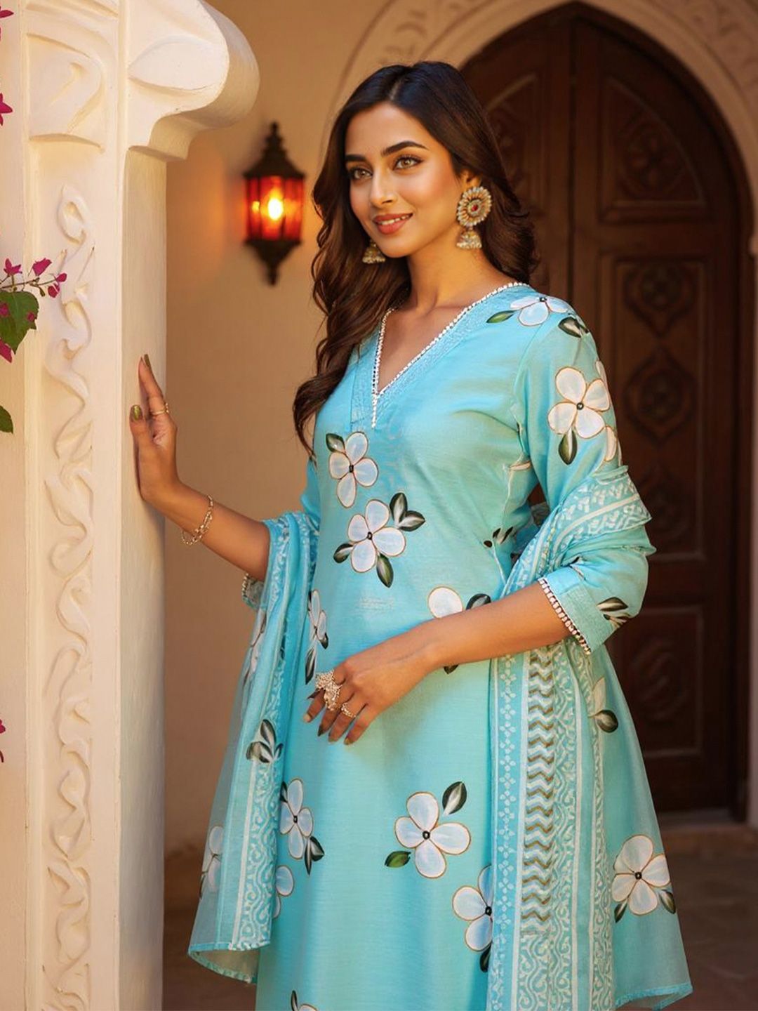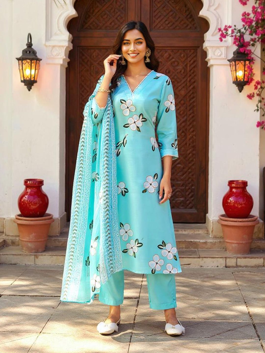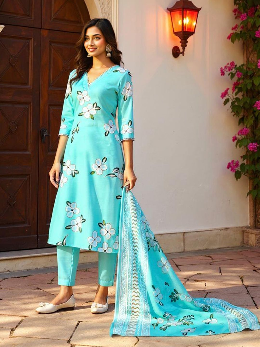 SZN Women Floral Printed Regular Kurta With Trousers And Dupatta