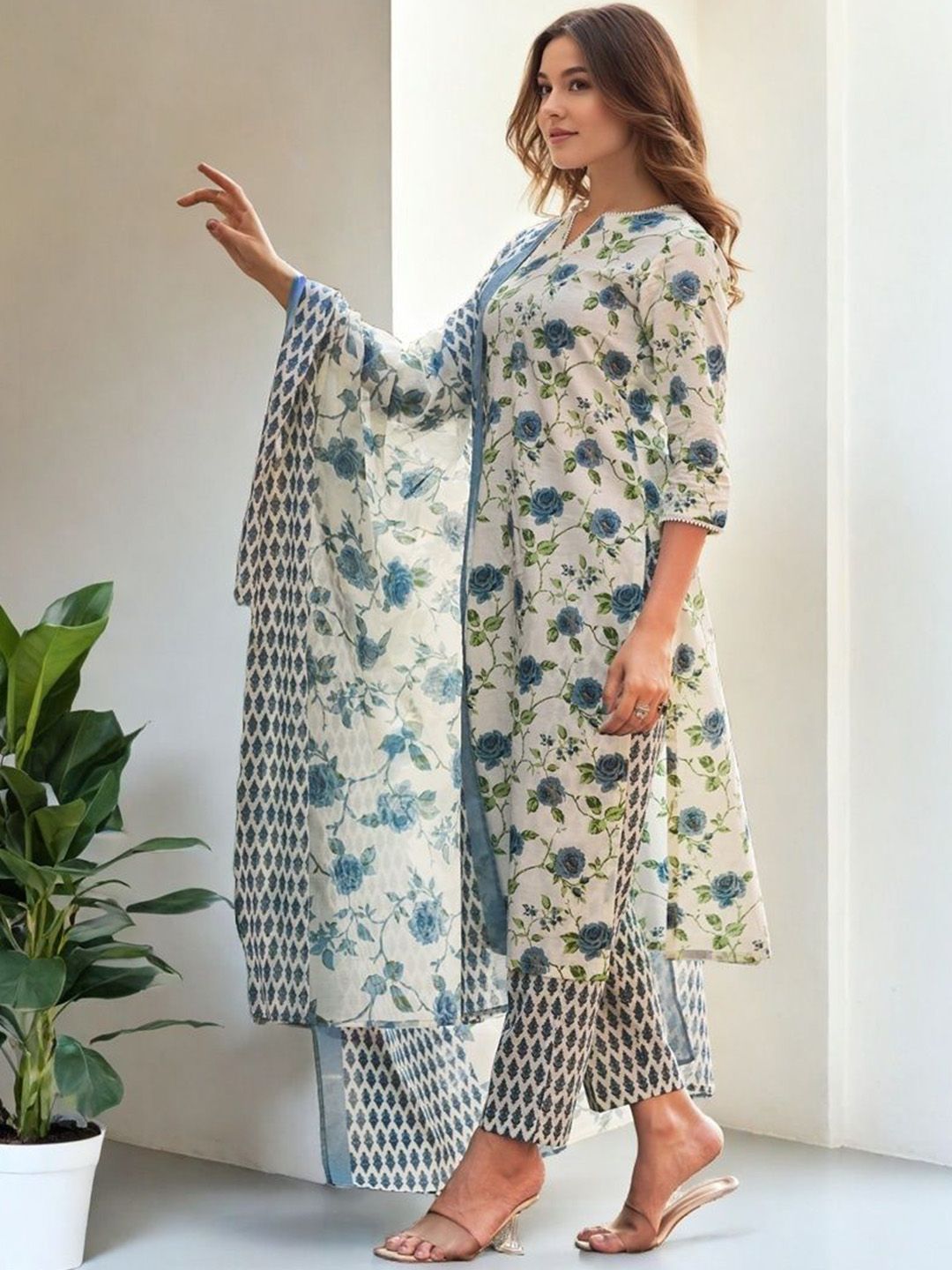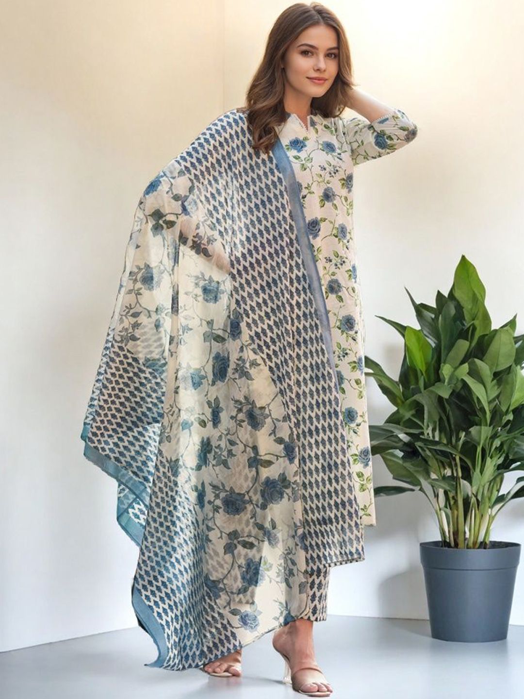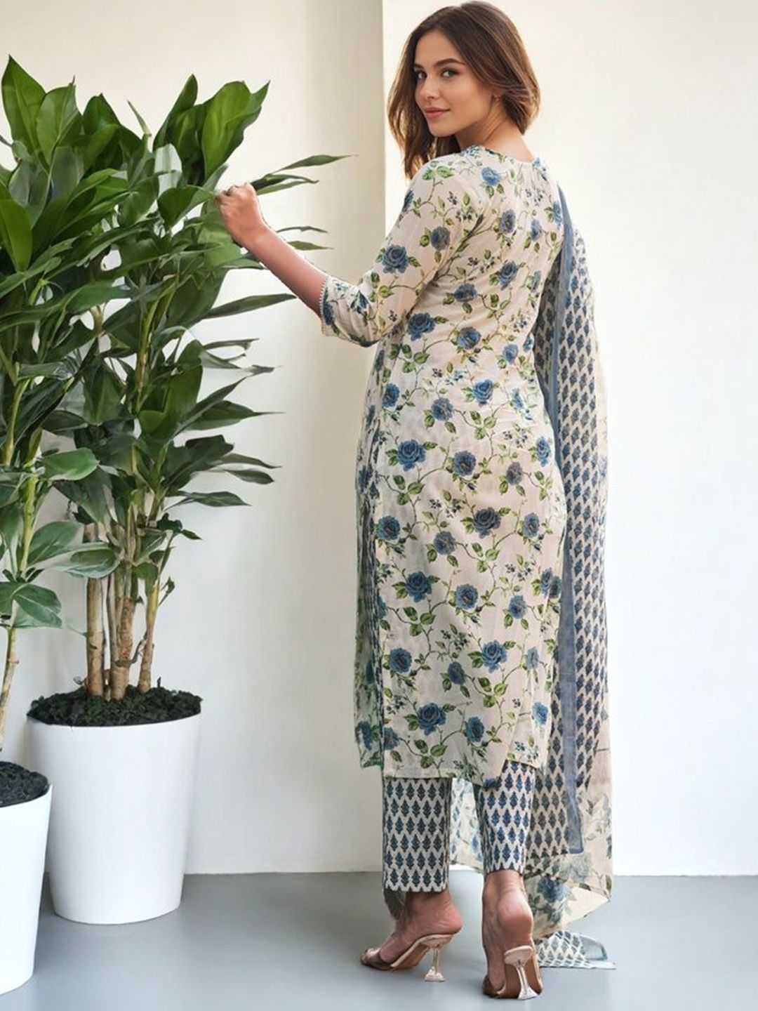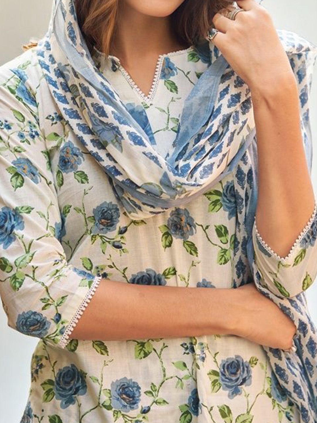 SZN Women Floral Printed Regular Pure Cotton Kurta Set With Dupatta