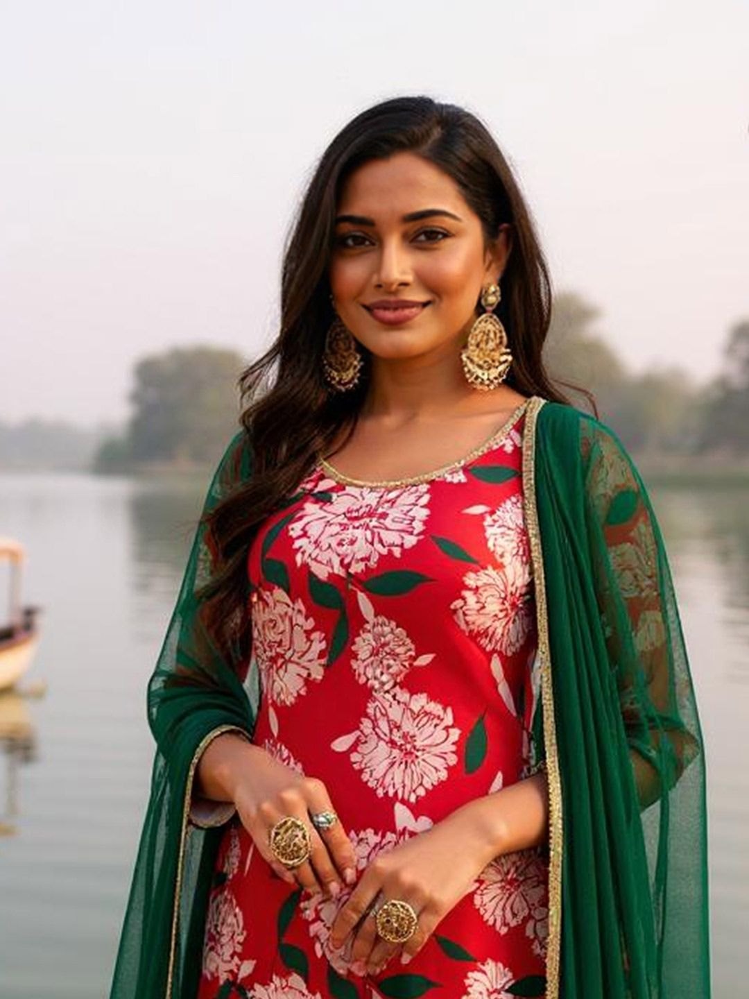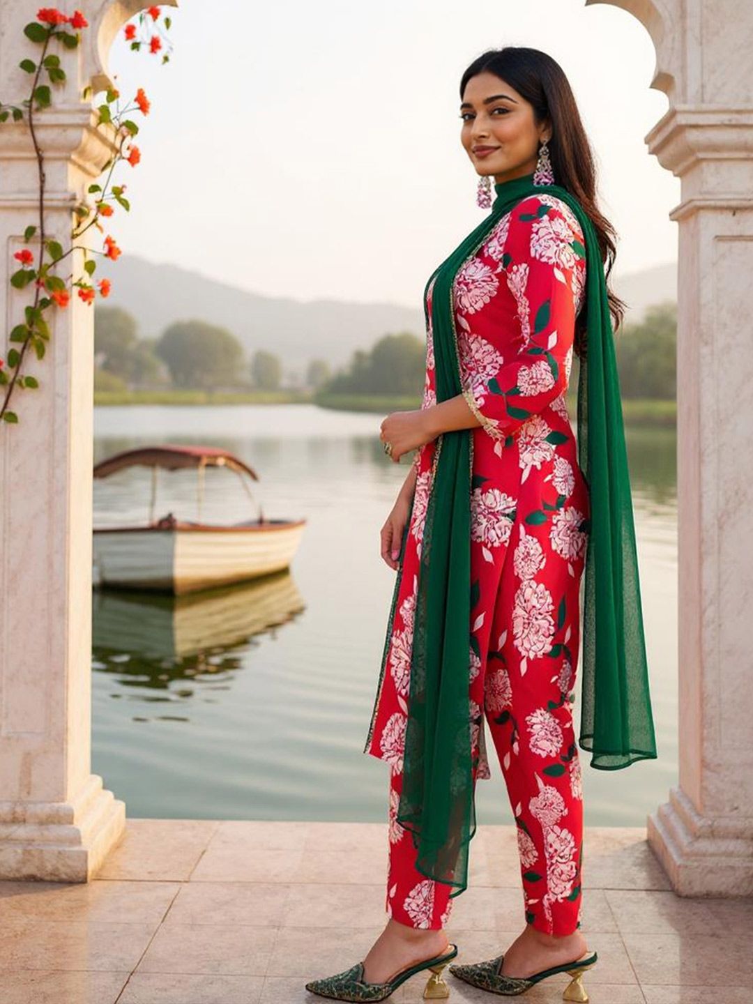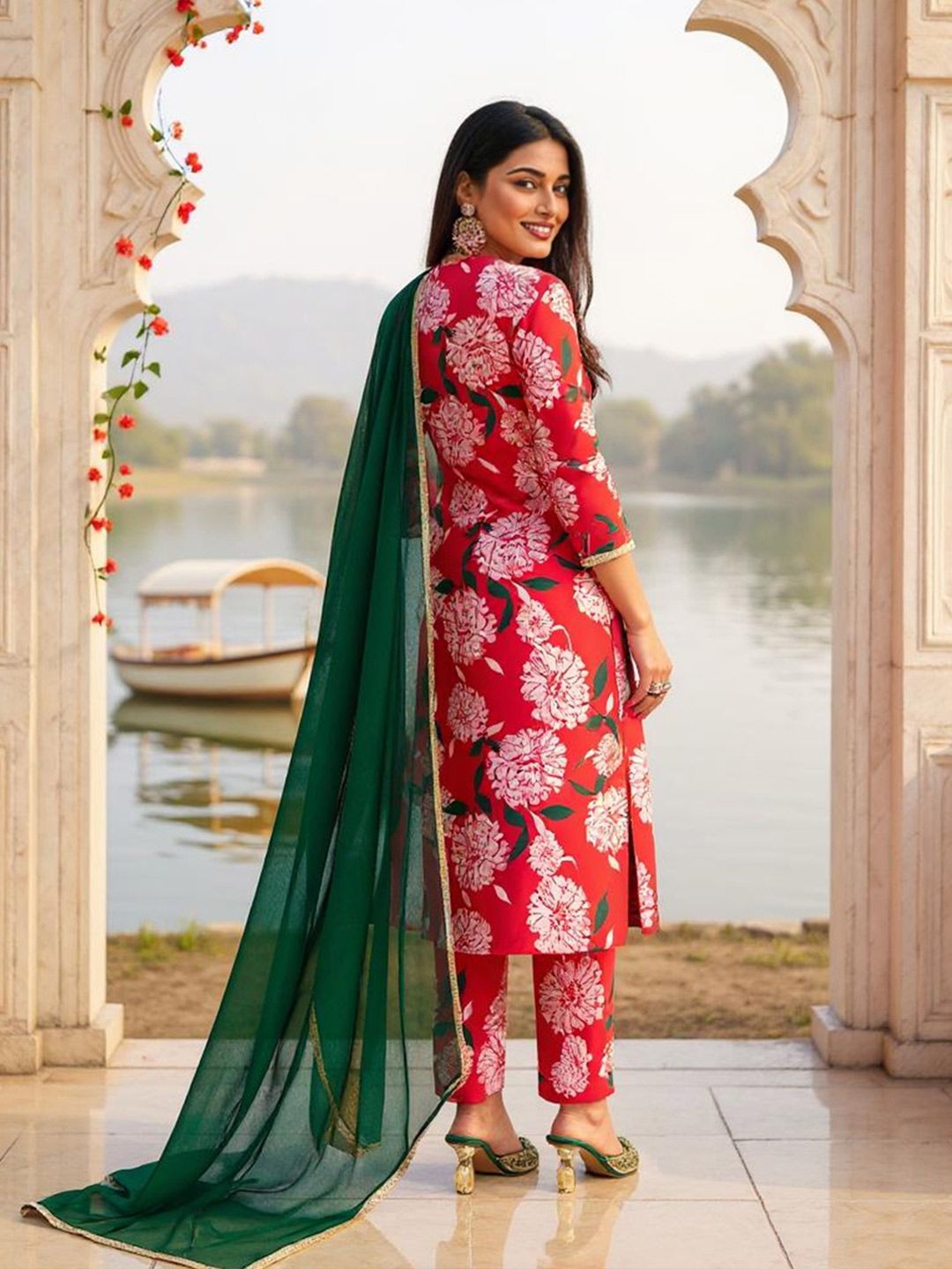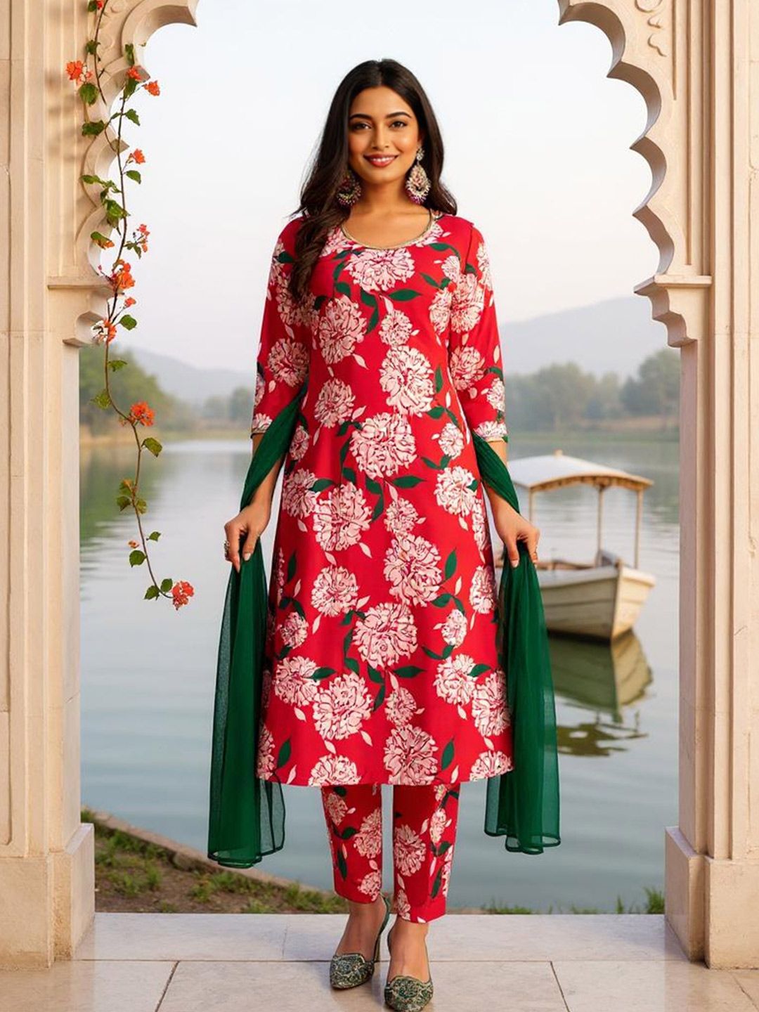 SZN Women Floral Printed Straight Kurta with Trousers & Dupatta