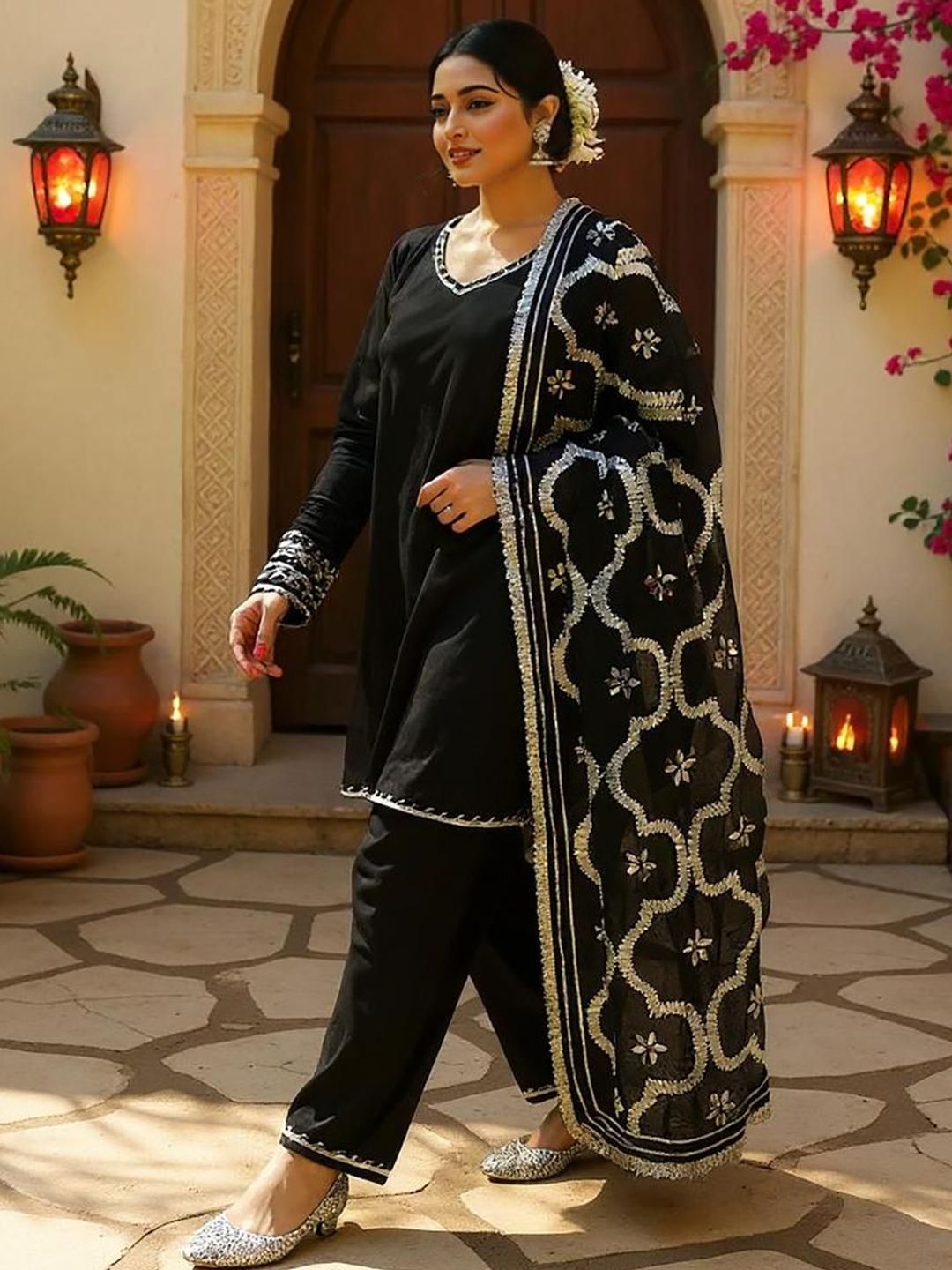 SZN Women Regular Gotta Patti Pure Cotton Kurta & Salwar With Dupatta