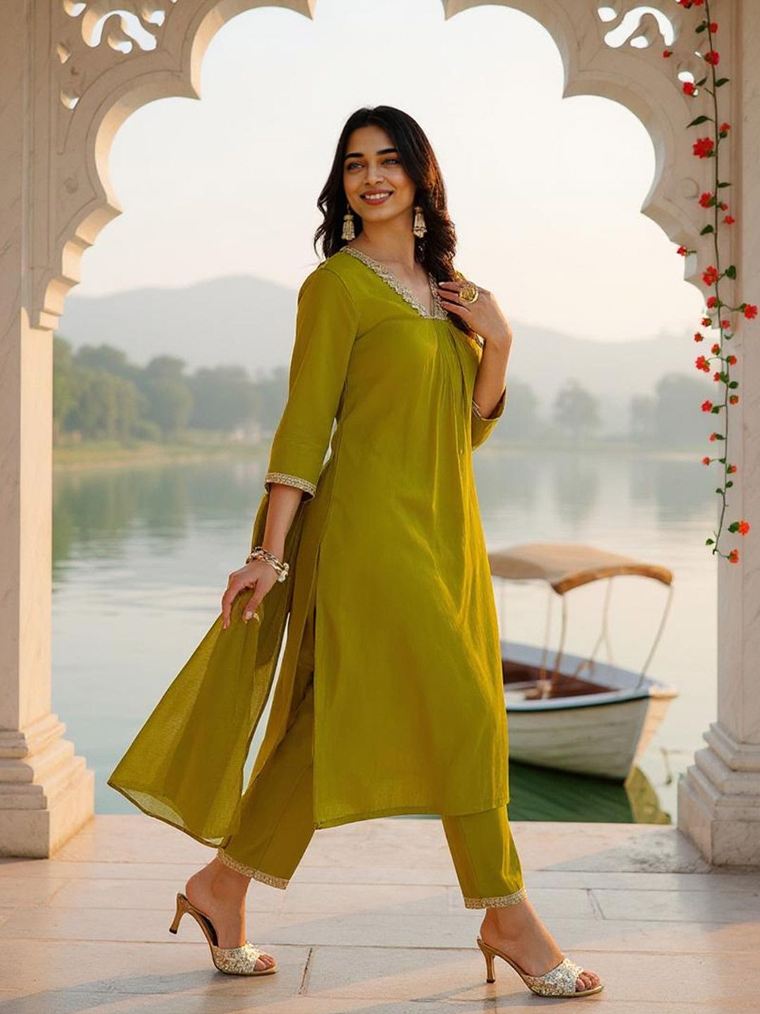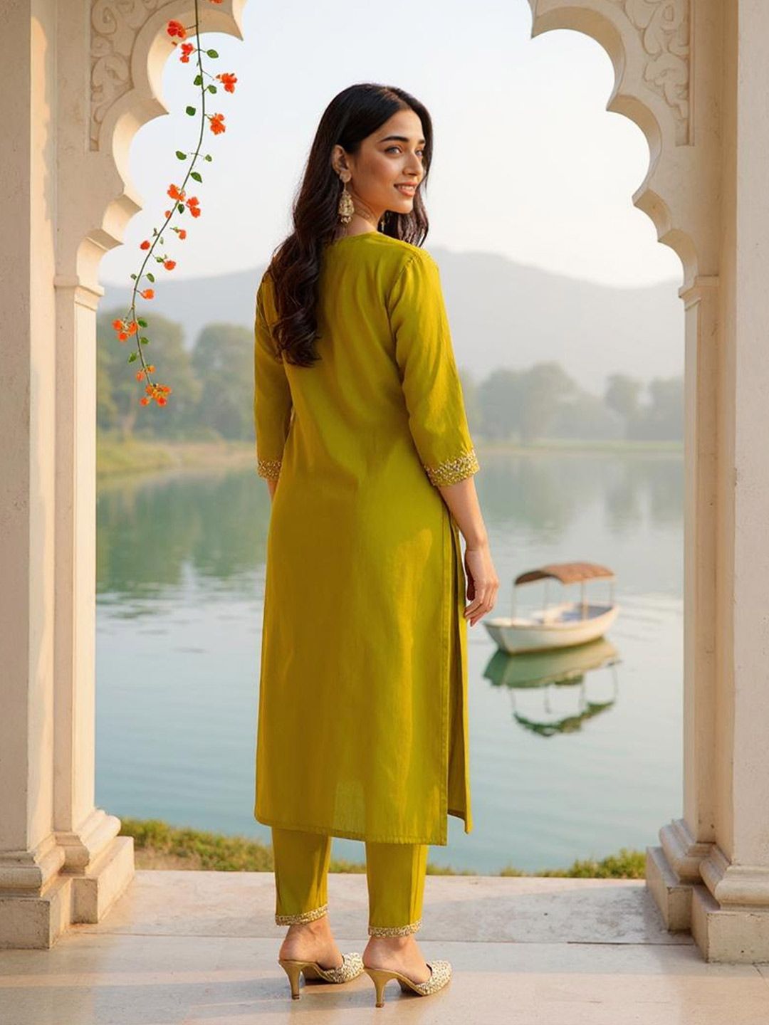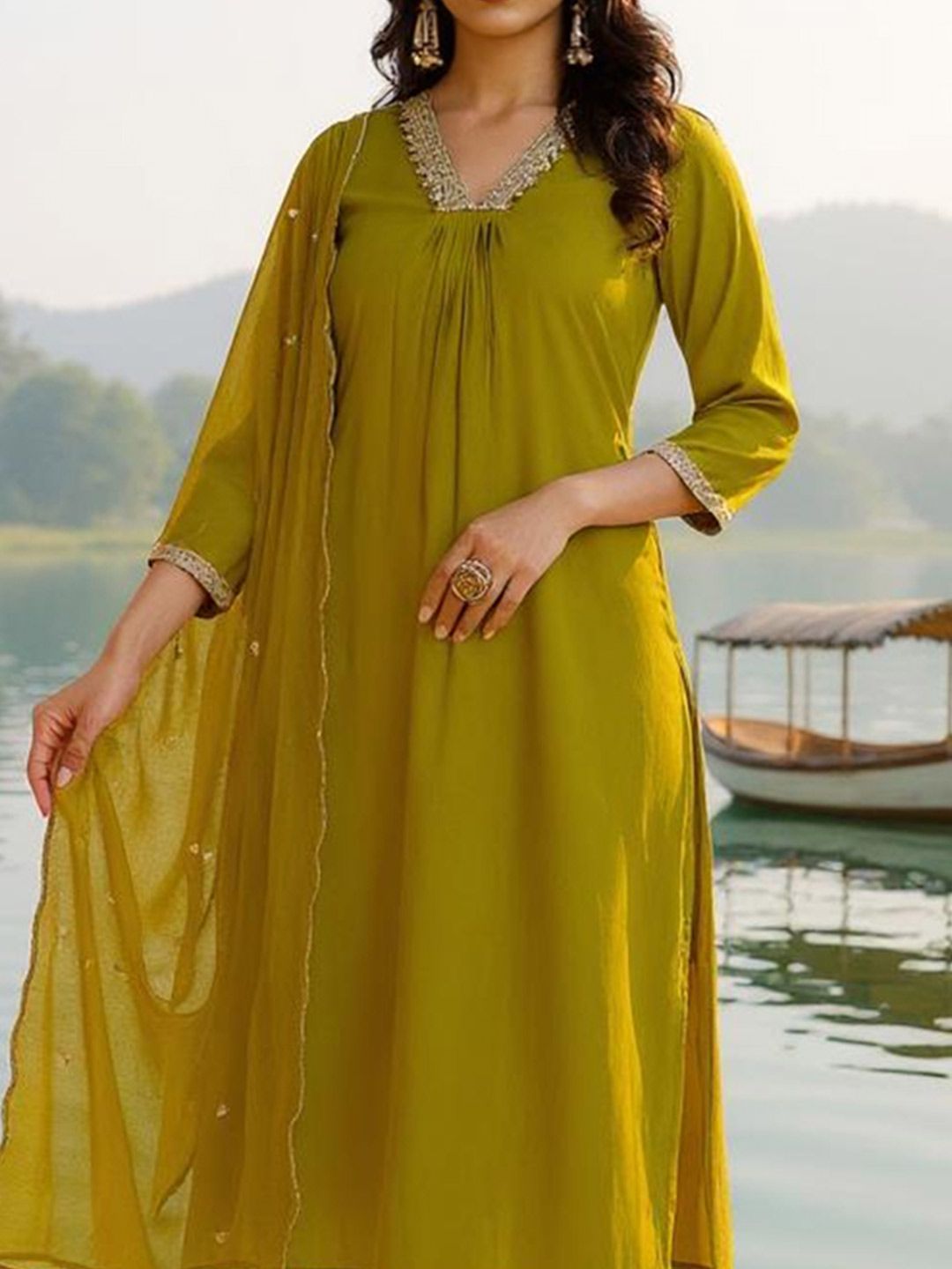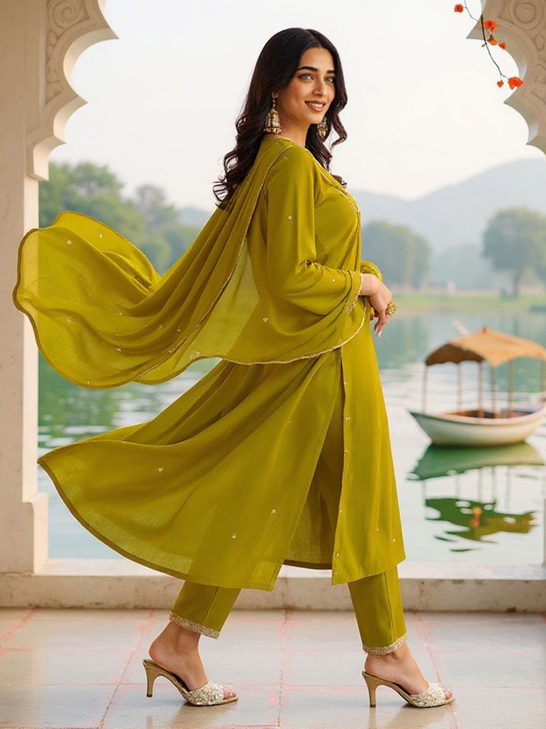 SZN Women Sequinned Detail Pleated Kurta With Trousers & Dupatta