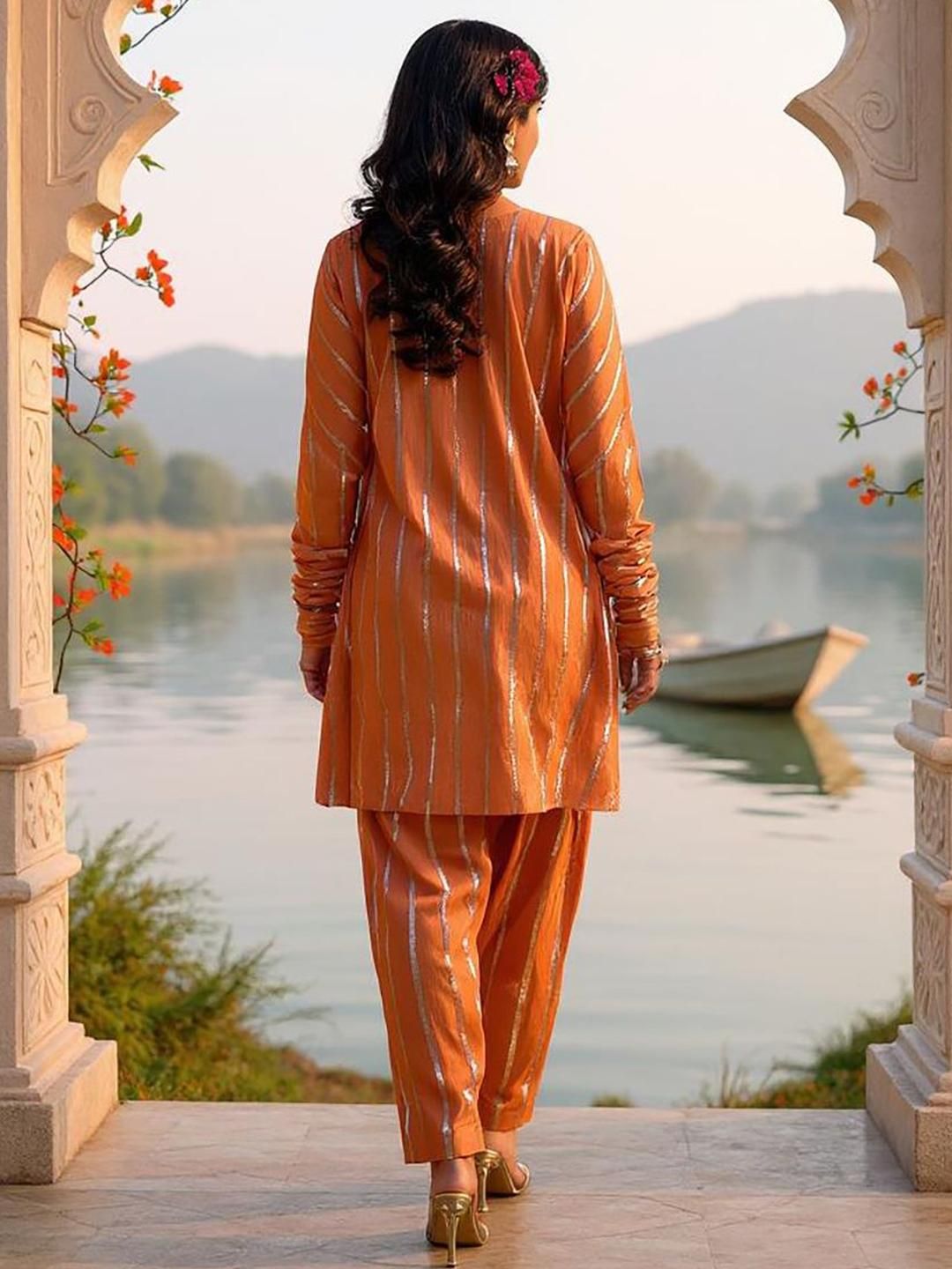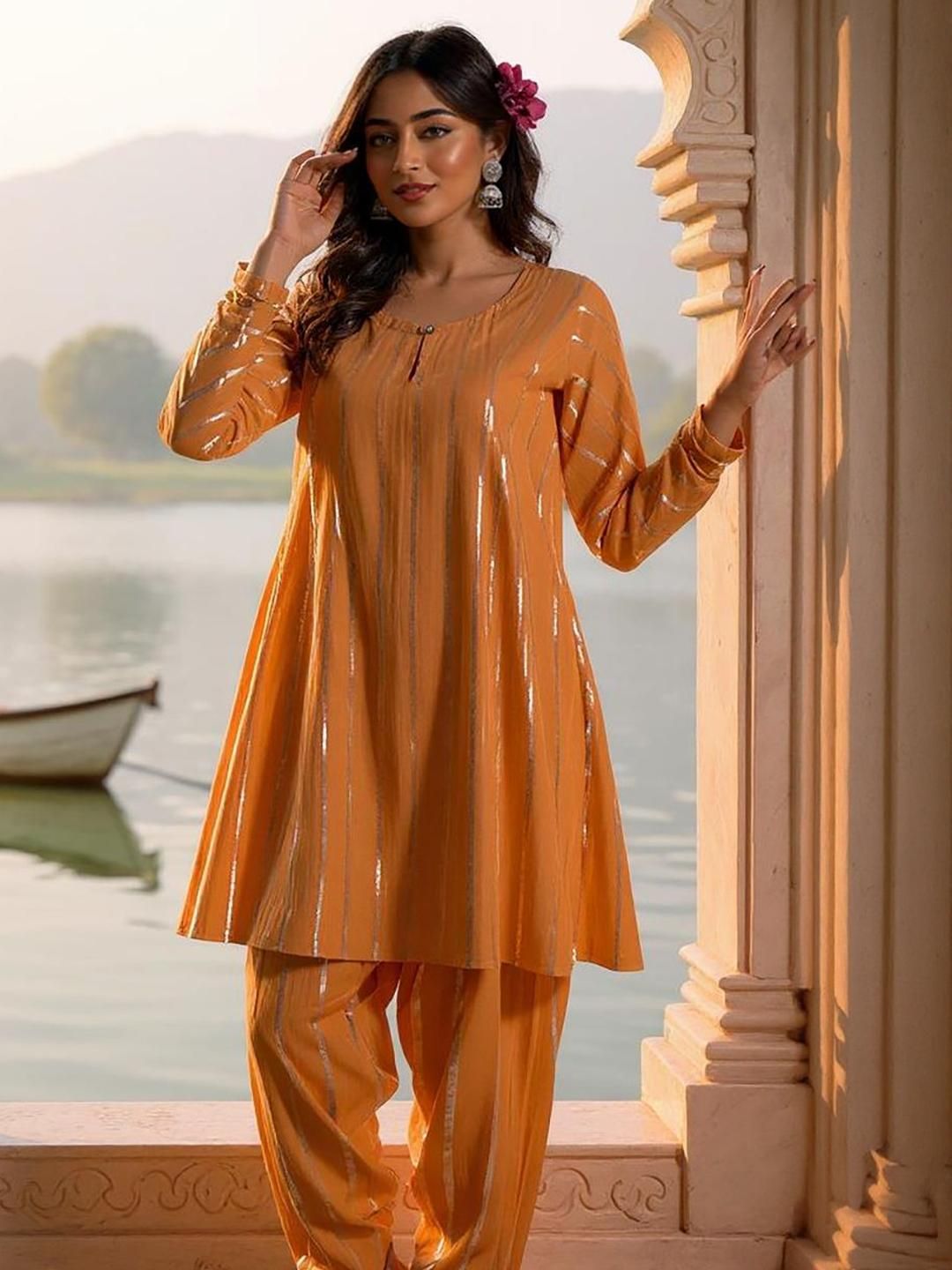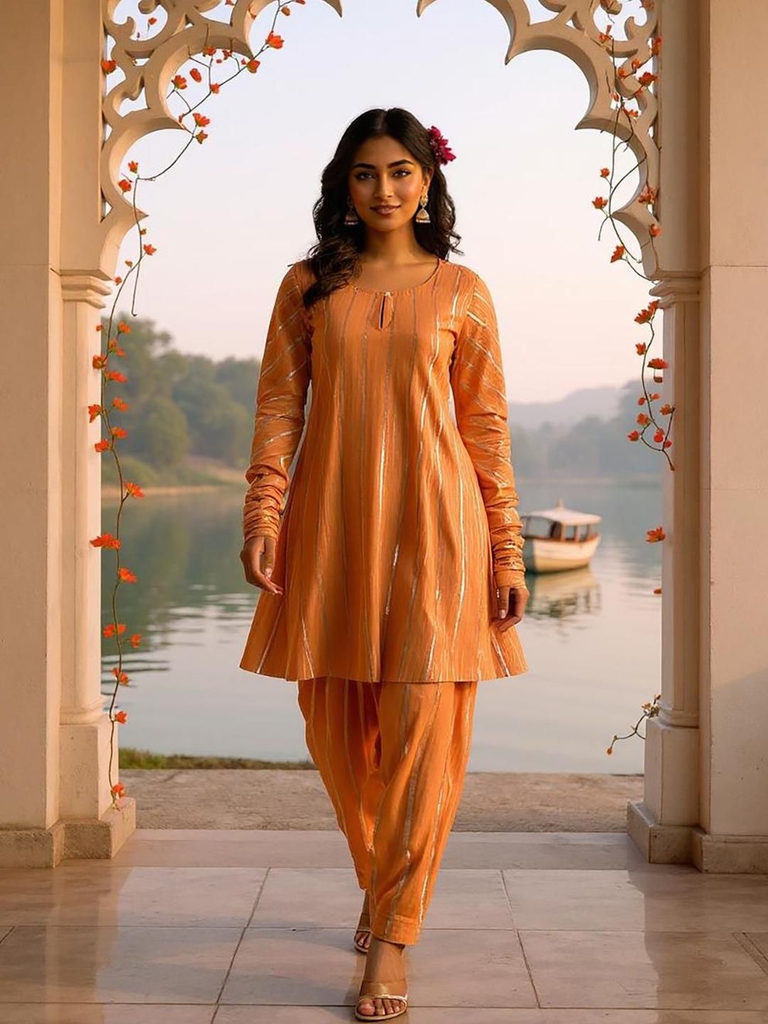 SZN Women Striped Cotton A-Line Kurti with Patiala