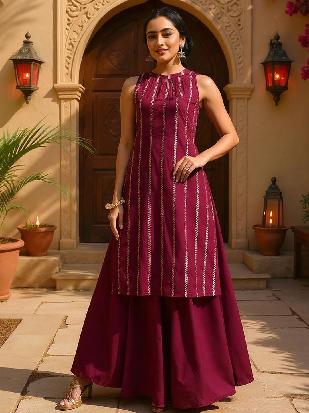SZN Women Striped Kurta with Skirt