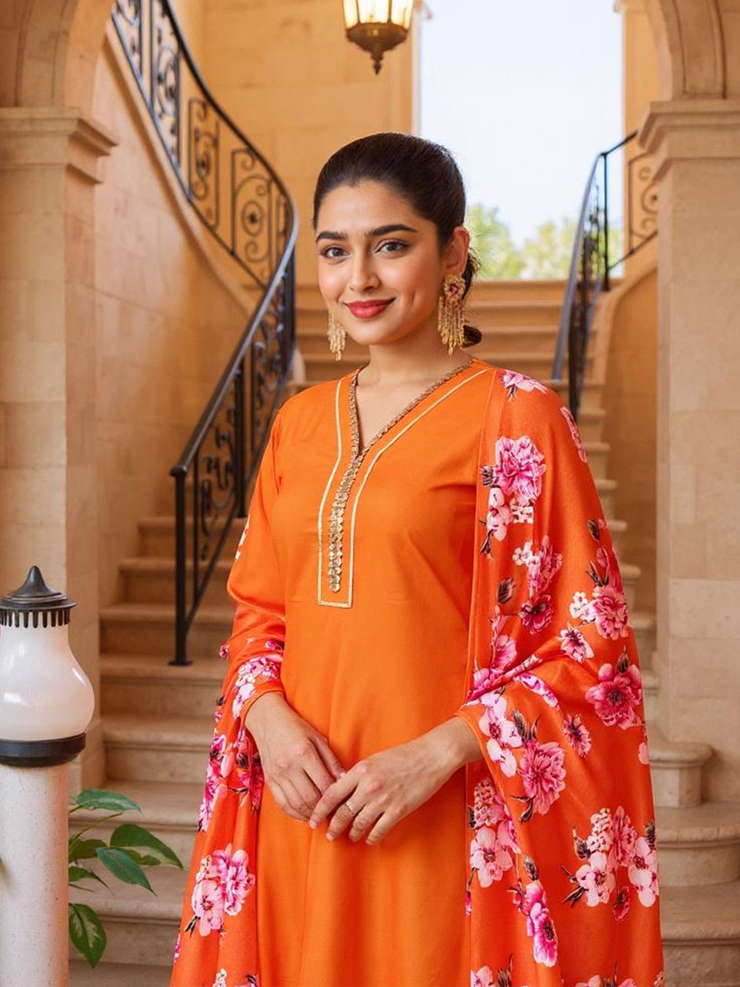 Buy this stylish SZN Women V-Neck Pure Silk Gotta Patti Kurta with Trousers & With Dupatta at Marincart Nepal. This product offers great quality and value. Perfect for those looking for the latest trends in fashion. Get yours now at unbeatable prices.