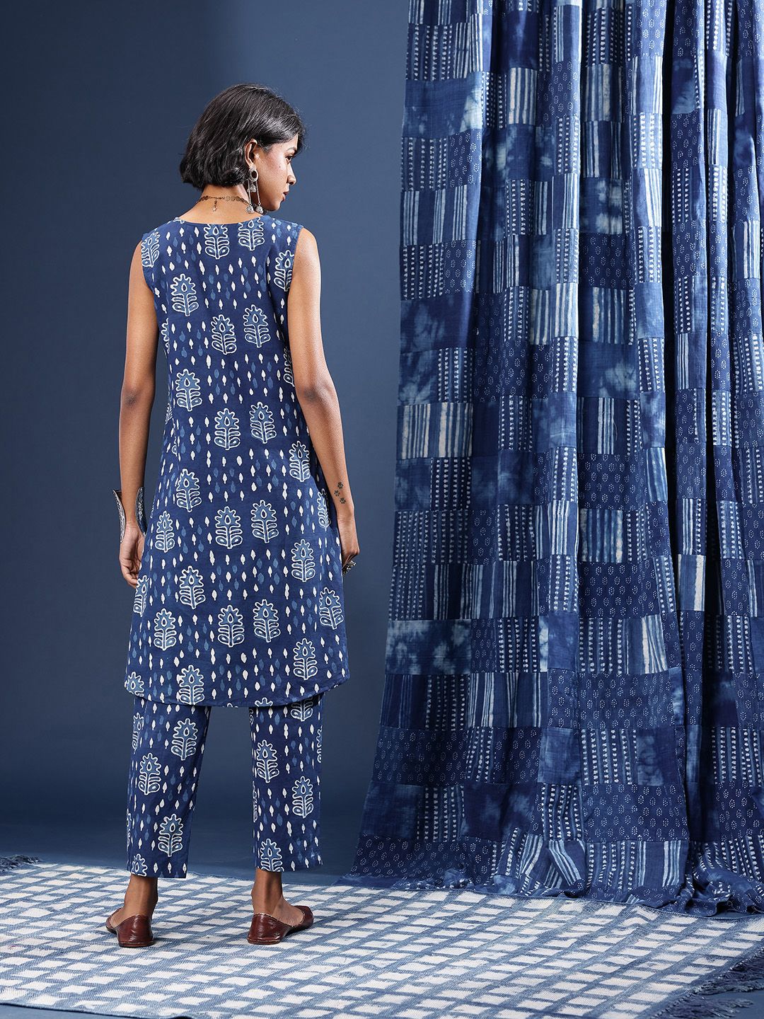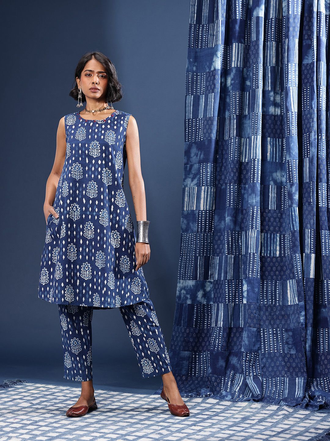 Taavi Dabu Handblock Printed Pure Cotton Kurta with Trousers