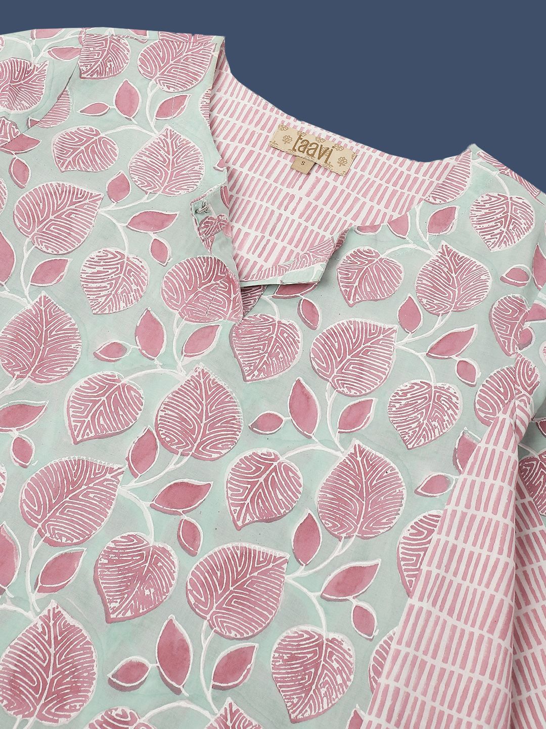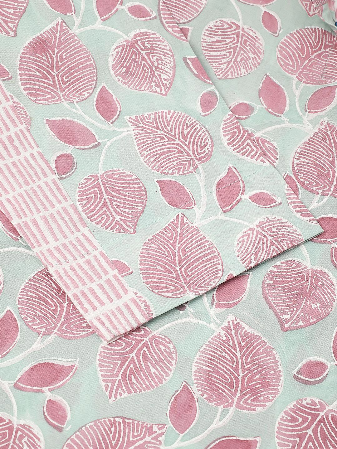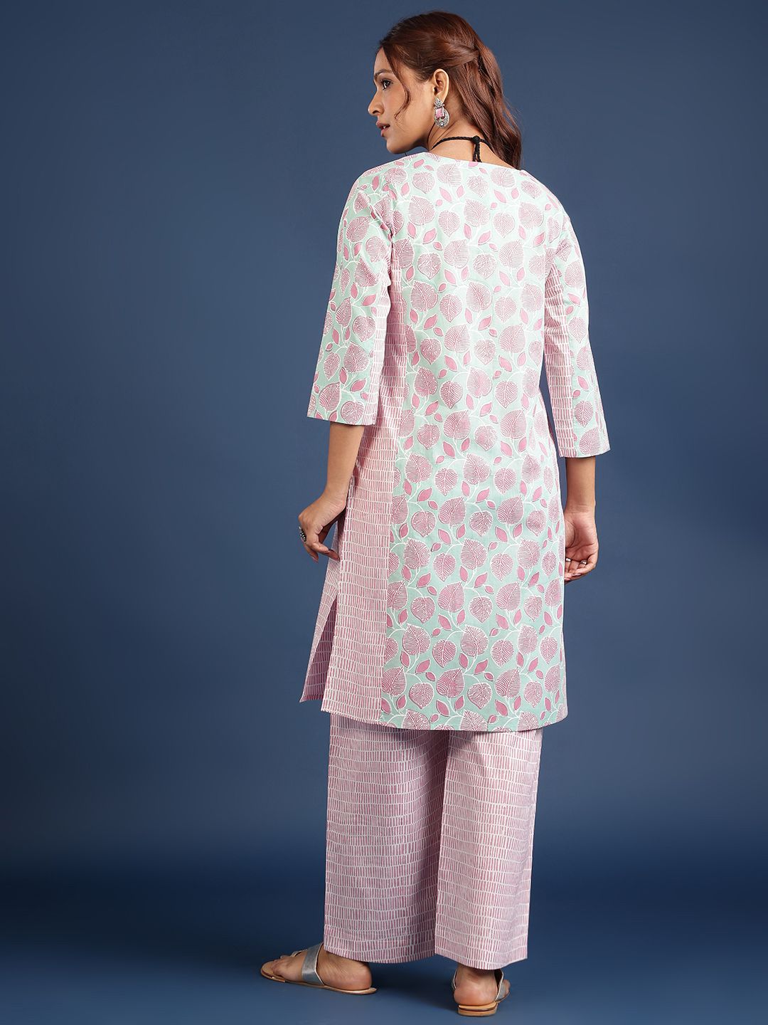 Taavi Women Floral Hand Block Print Cotton Kurta with Trousers