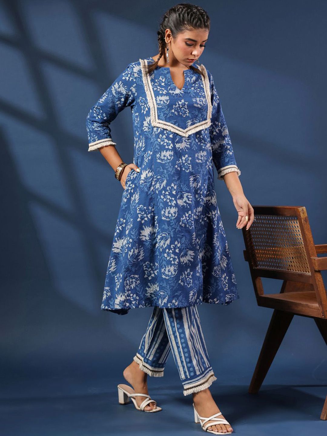 Taavi Women Hand Block Print Cotton Kurta with Palazzo