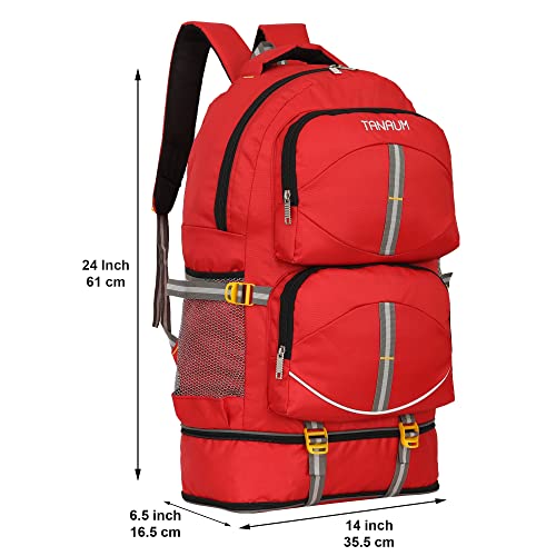 TANAUM rucksack bags 50 litres travel bag for unisex tourist bag travel backpack for hiking trekking Bag for outdoor camping thames bag with 1 Year Warranty (RED)