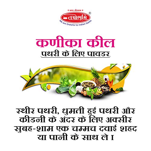 The Products is very Natural, Herbal & Ayurvedic comes from the house of Tapobhumi. Tapobhumi is a brand that makes the Natural, Ayurvedic and Herbal ingredients based products. It helps to remove stones(Pathree) Take 1 spoon powder with water or pure honey 2 times in a day. Usefull for all kind of Pathree(Stones) Ideal For Men and Women SLS & Paraben free