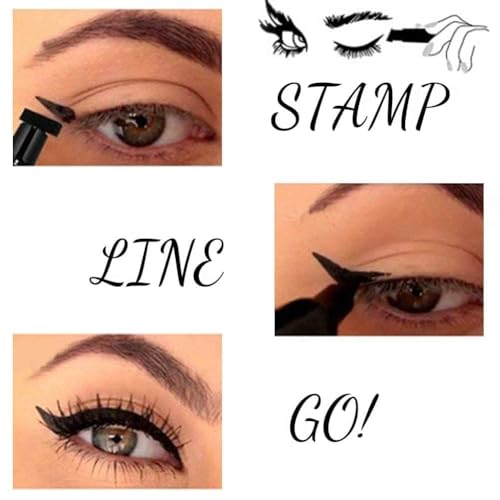 Perfect Eyeliner - A dual-purpose pen that provides perfect cat eyes for anyone, creating deep eyes and creating a perfectly clear natural eye makeup. DOUBLE-HEADED DESIGN-Stamp and line?wing stamp and liquid eyeliner,One end is wing stamp for stamping and the other end is liquid eyeliner for thin delicate lines.The combination of the two makes you easy to get a more dramatic makeup. EASY TO USE-Whether it's for beginners or people who use eyeliners regularly, this stamp makes you easy to have beautiful eyeliners. You only need to stamp and fill it to have a perfectly consistent wing shape. SUITABLE FOR ALL MAKEUP-professionally designed stamps for any different eye makeup, to meet all your needs, to help you achieve different eye makeup in different occasions. COLOR STAYS ALL DAY-The liquid dries quickly, waterproof and smudge-proof?and Lasting effect. It does not need to be retouched repeatedly. But if you have oily or combination skin, use an eye shadow primer before applying eyeliner