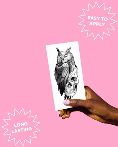 Tatmods Modern Men Round Hand Band With Owl Skull Black Waterproof Temporary Tattoo For Girl Boys Pack of 2