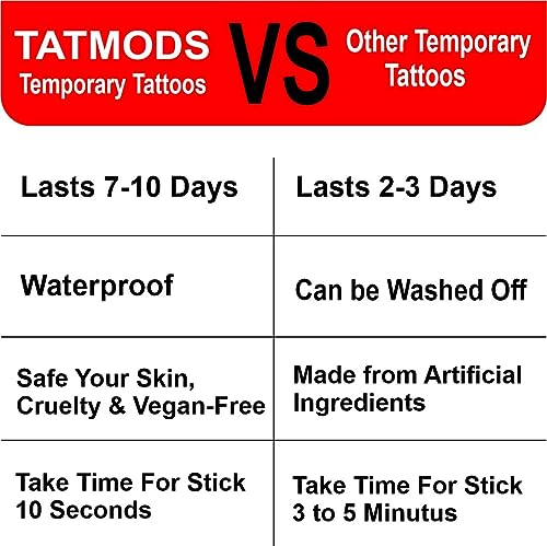 1PC - 3D High Quality Temporary Tattoo Sticker. Size – 2x4 Inch Waterproof Body Tattoos, once applied these awesome tattoos will not wash off. Show them off at the beach or pool party. Long lasting temporary tattoos. It can be applied anywhere like neck, wrist, arm, hands, nuckles, legs, thighs, calves etc... Not To Be Used Below Age 5
